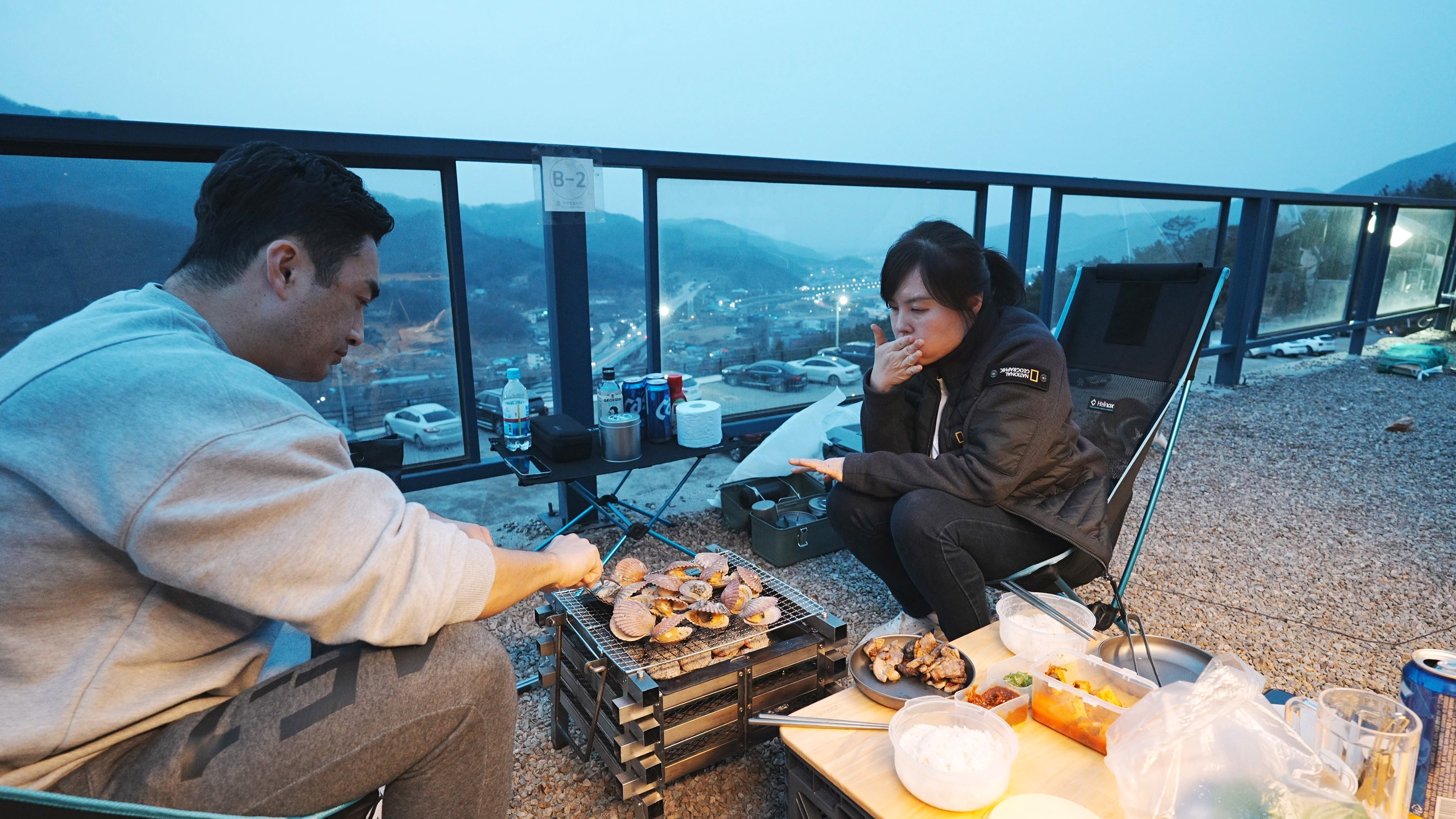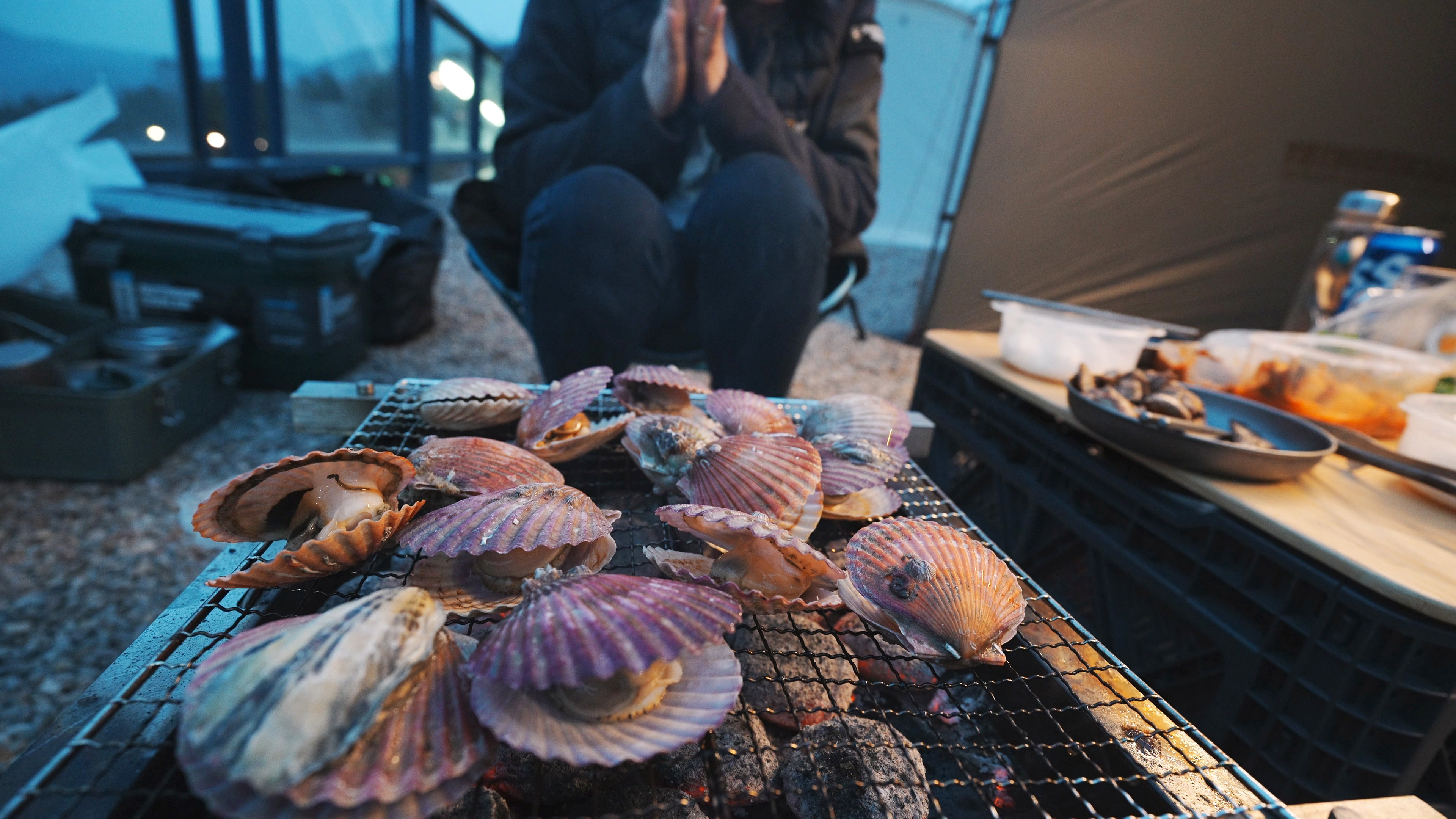 그리고 야심차게 준비한 조개구이. 많은 캠퍼들이 캠핑장에서 해산물 구이를 해 먹는 것을 봐왔던 터라, 숯불요리 준비하는 김에 가리비를 준비했는데, 기가 막혔다.