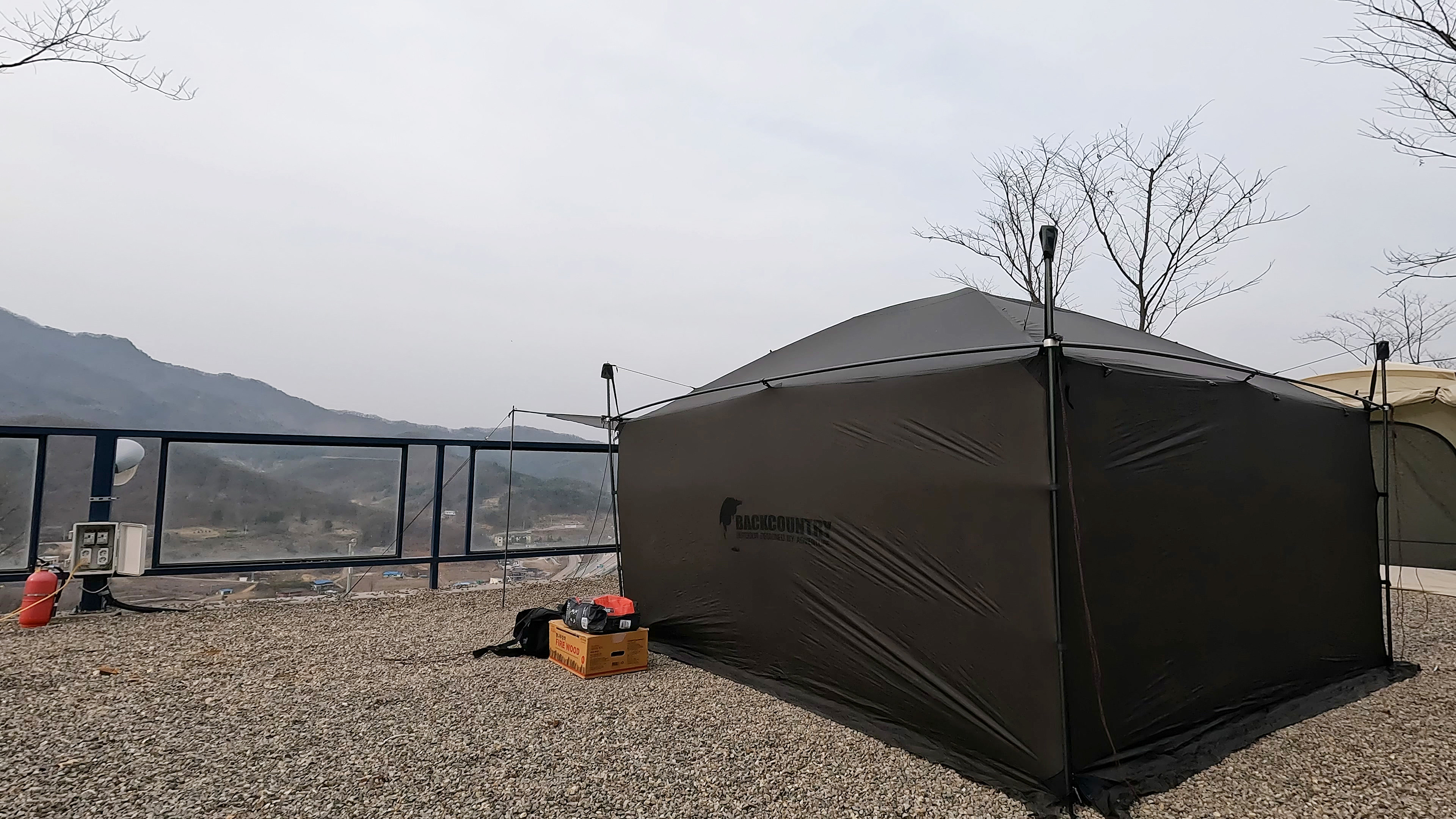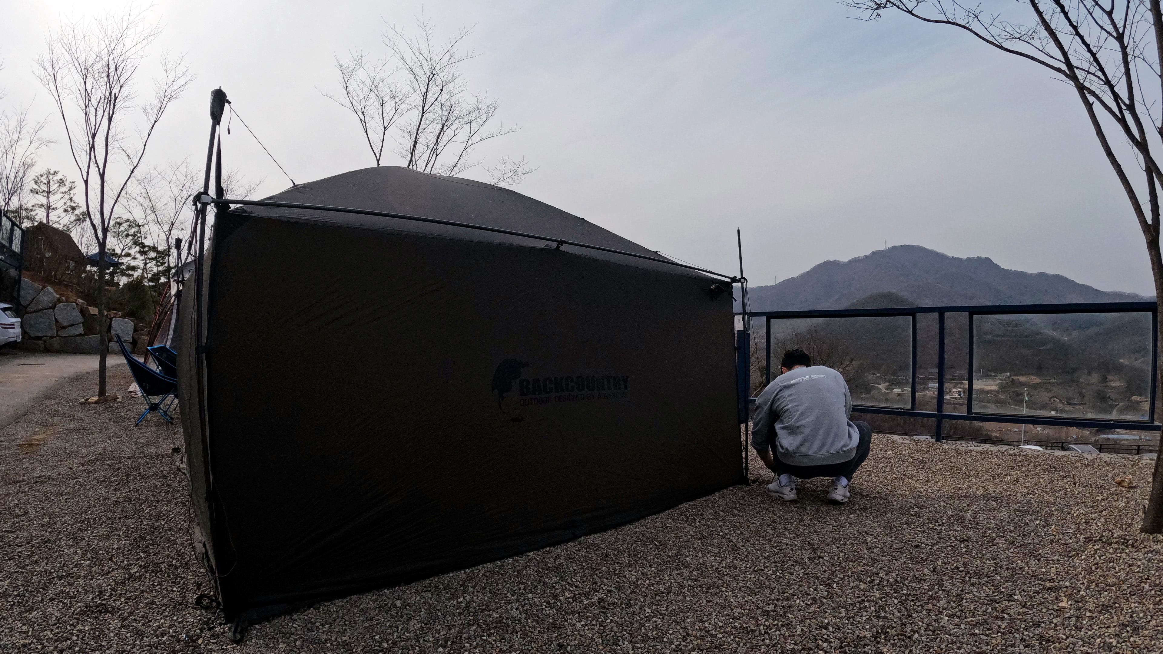 다음날 비가 온다는 소식이 있어서, 저녁에 철수를 하기 위해서 간단히 백컨트리 280 쉘터를 설치했다