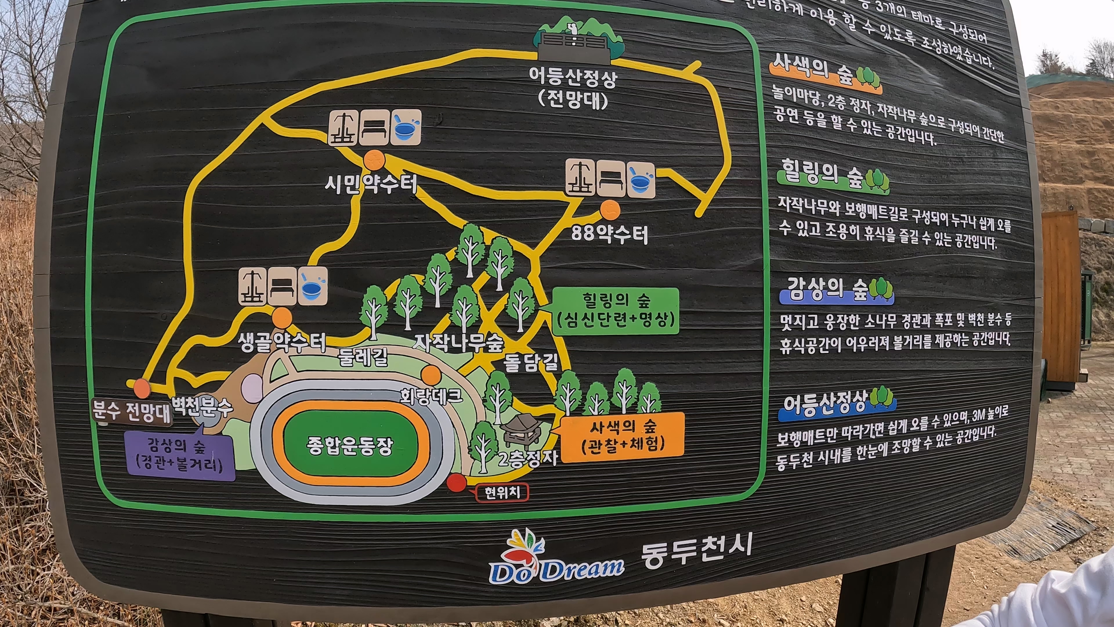 3월 11일. 동두천 파인힐 빌리지에 캠핑 예약이 되어 있어, 동두천 일대에 가볍게 산행할 곳을 검색해서 찾은 곳이 동두천 어등산. 높이 279미터의 낮은 산으로 동두천 종합운동장에서 가볍게 올라갈 수 있는 산이다.