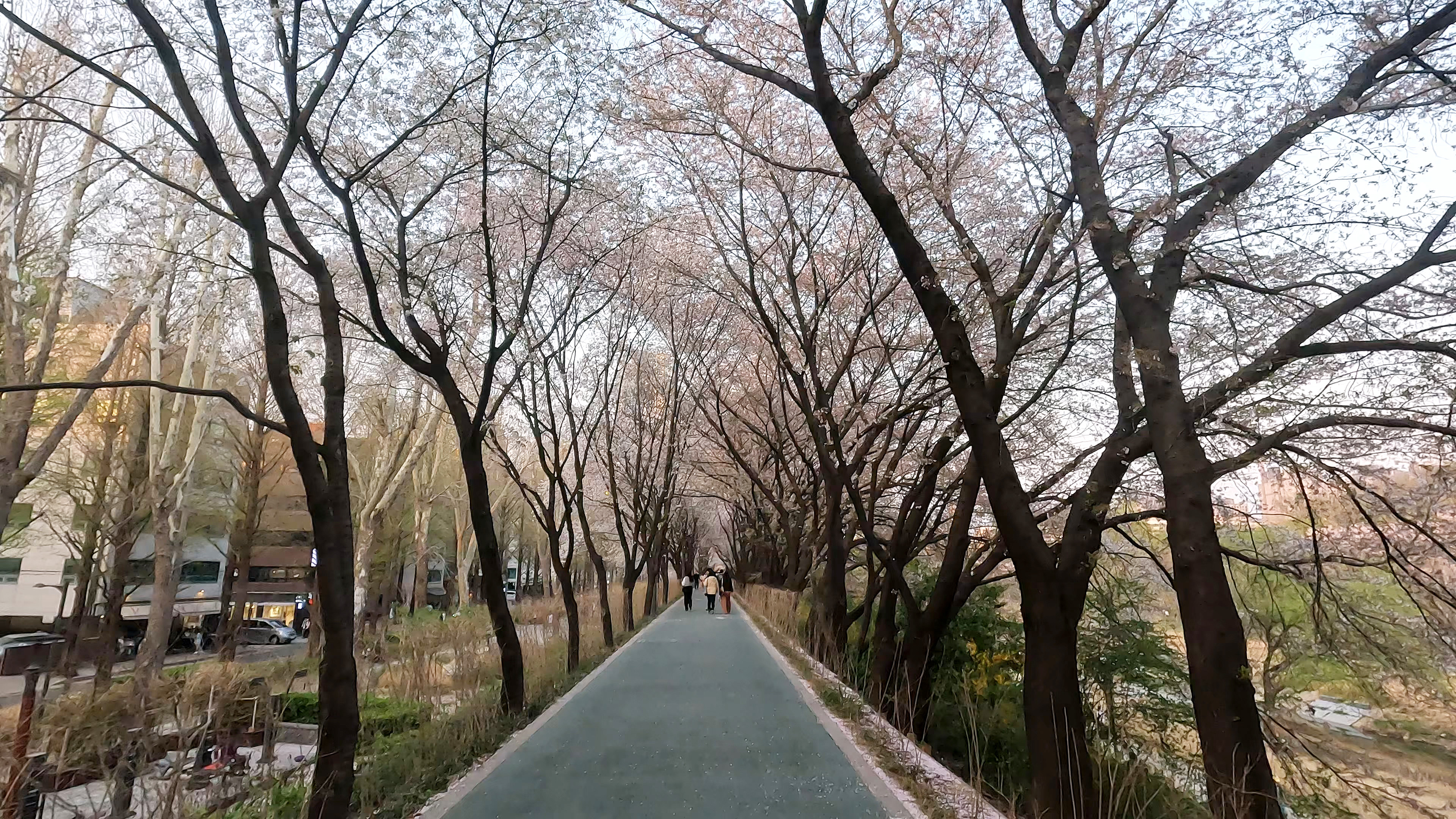 이미 벚꽃잎은 바람에 날려 떨어지고 있었으나, 아직 남아있는 벚꽃나무들이 제법 보인다.