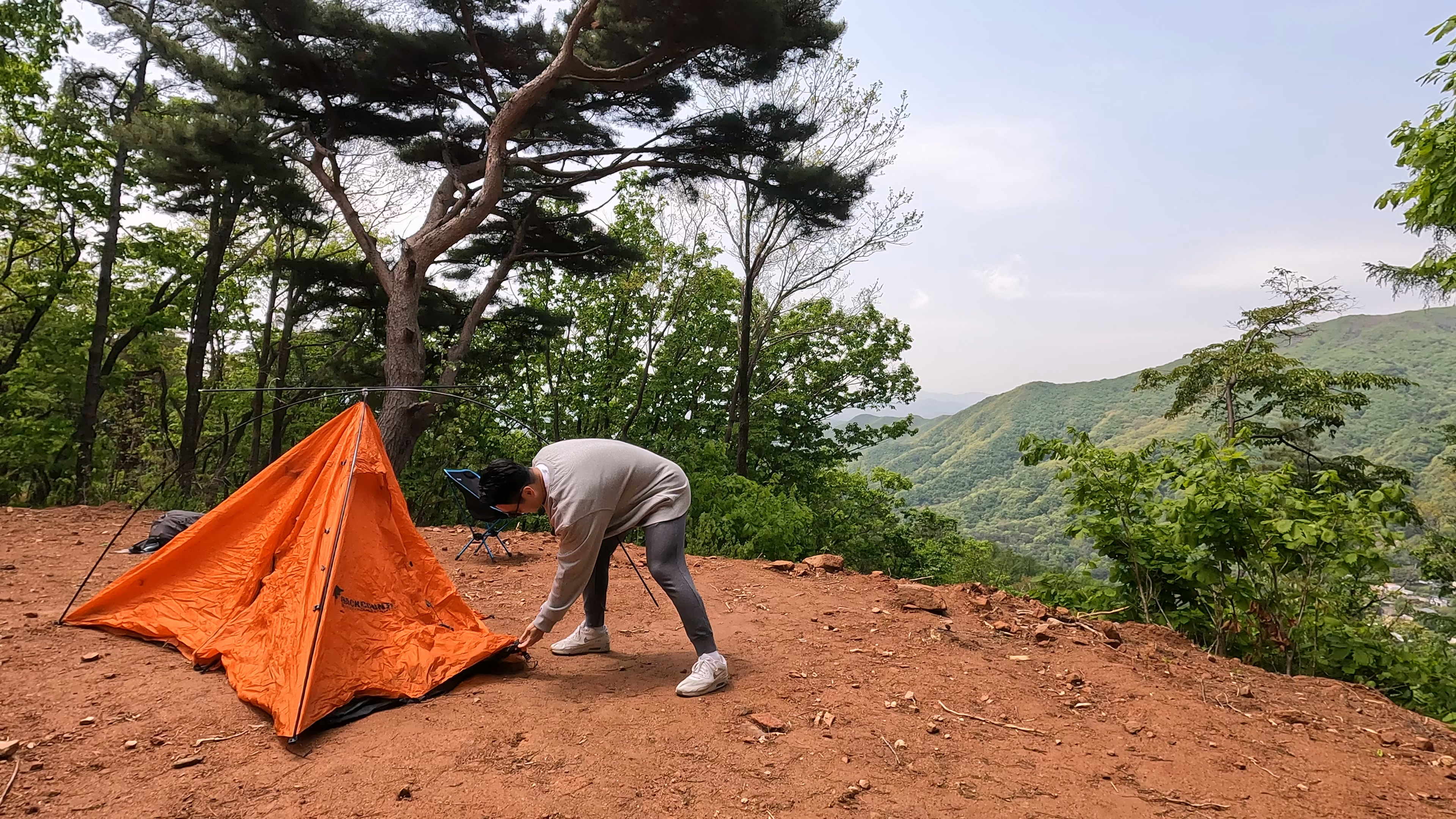 자리가 비어 있어, 바로 텐트 설치.
