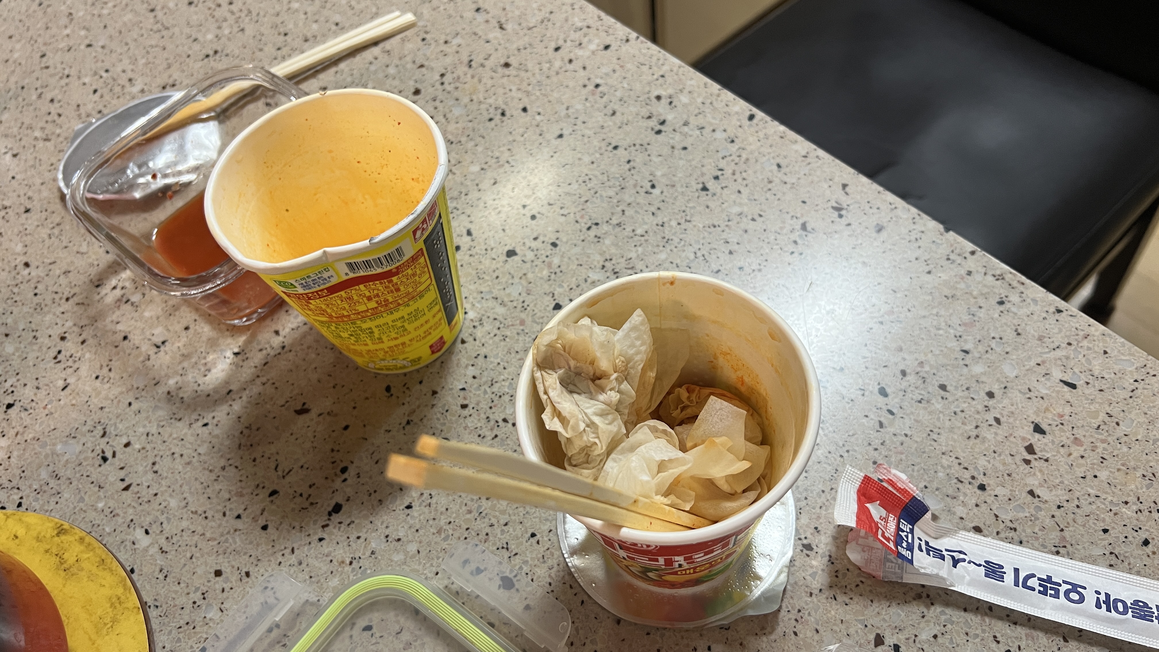 식탁밑에 떨어진 진라면 한 덩어리와 여기저기 튄 라면 국물을 깔끔하게 다 정리하고선, '괜찮아~?' . '화상 치료법 찾아보니 바세린 바르고 거즈로 덮으래~!' 라고 태연하게, 그리고 젠틀하게 대처했다.