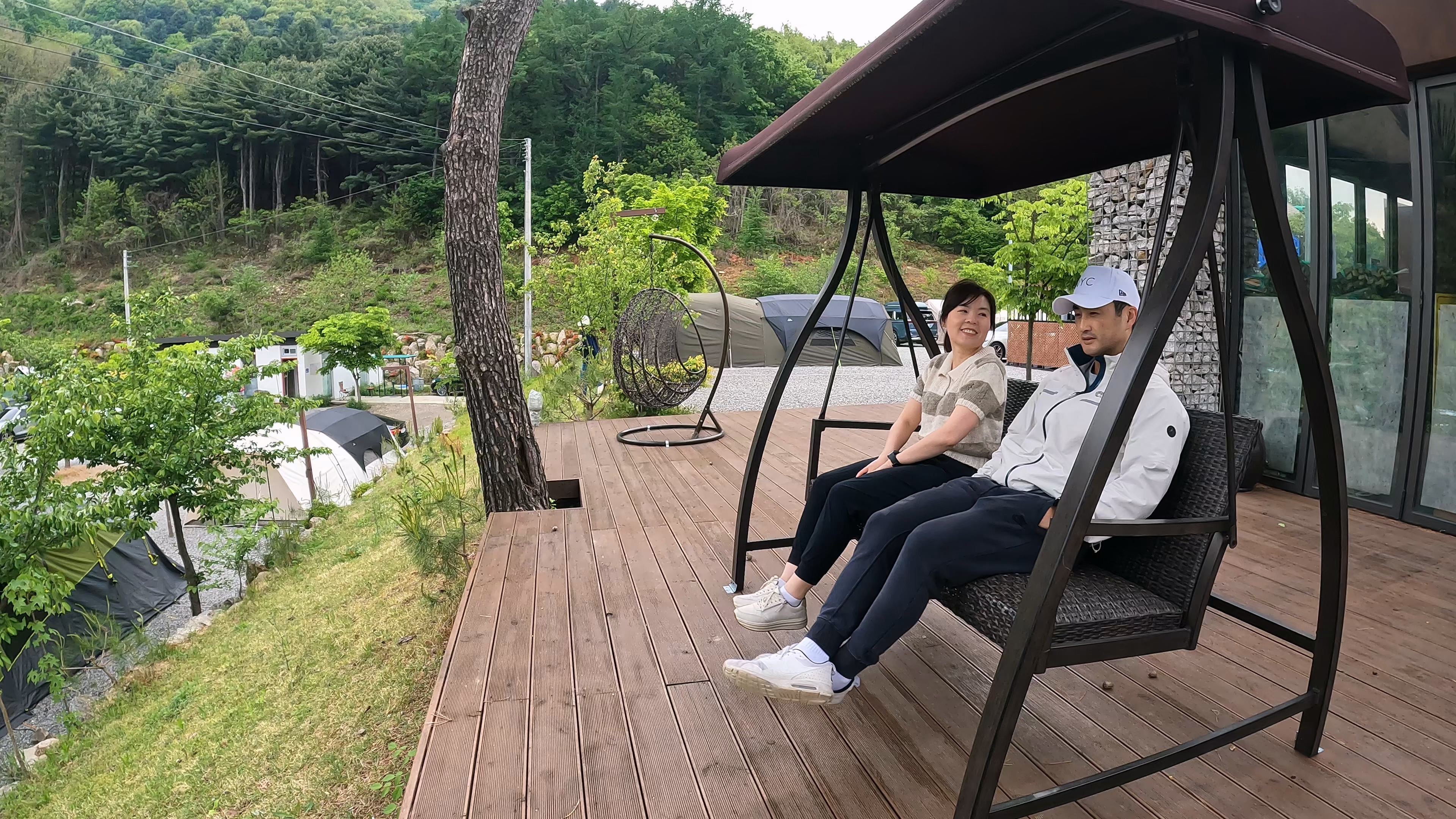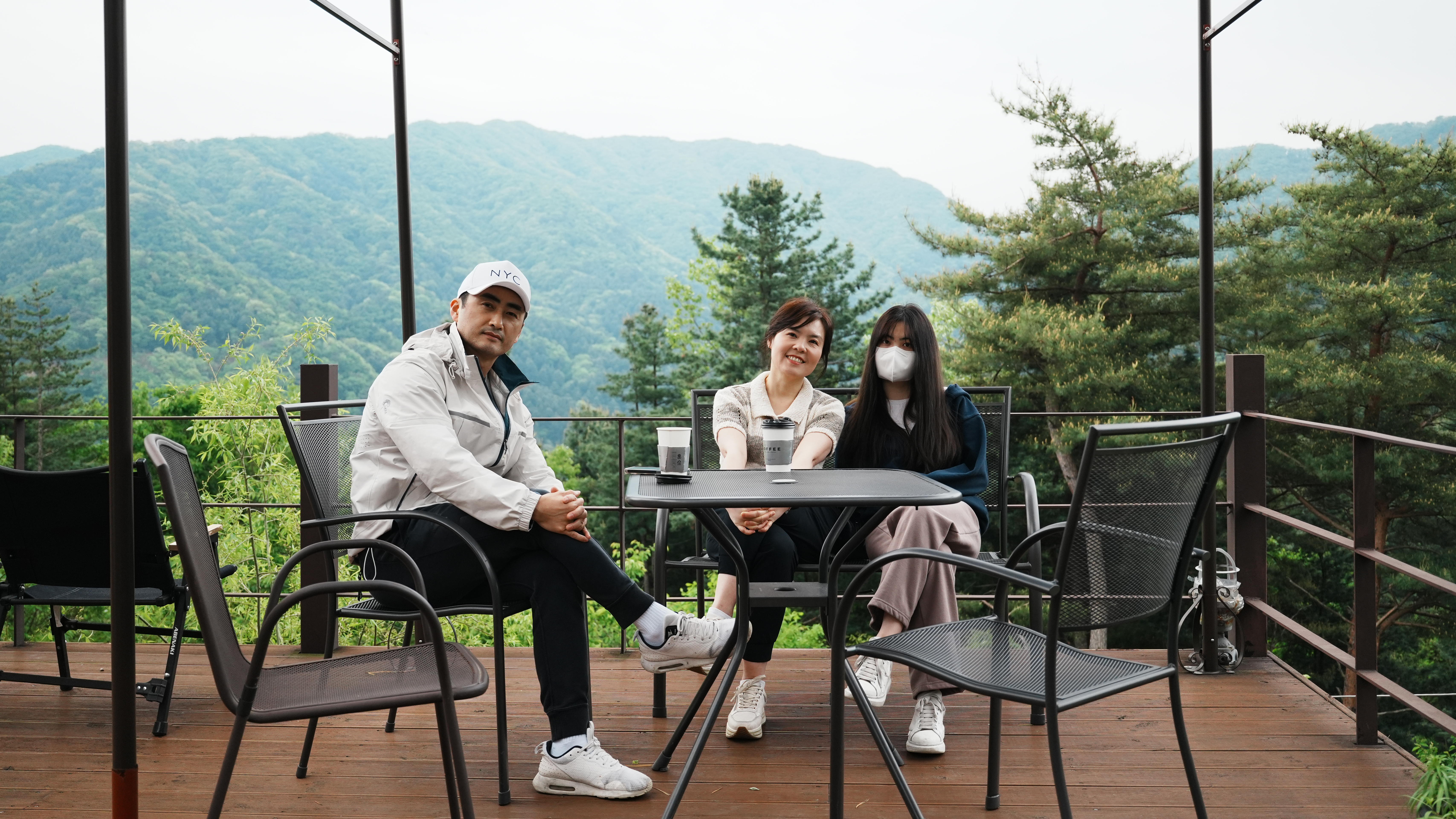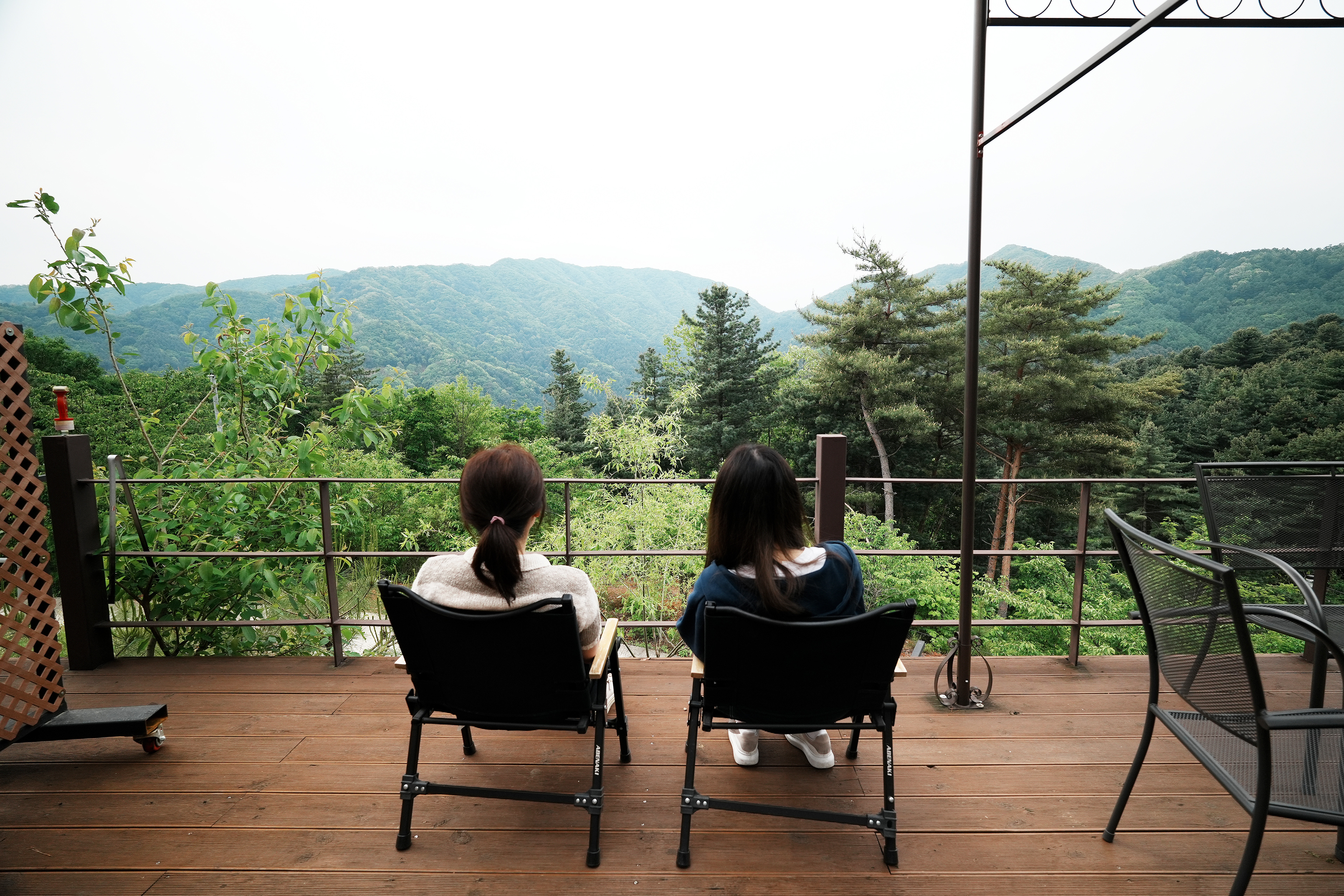 매점 앞의 전망 좋은 곳에서 와이프랑 둘이서 아침 맑은 공기 마시며 시간을 보내고