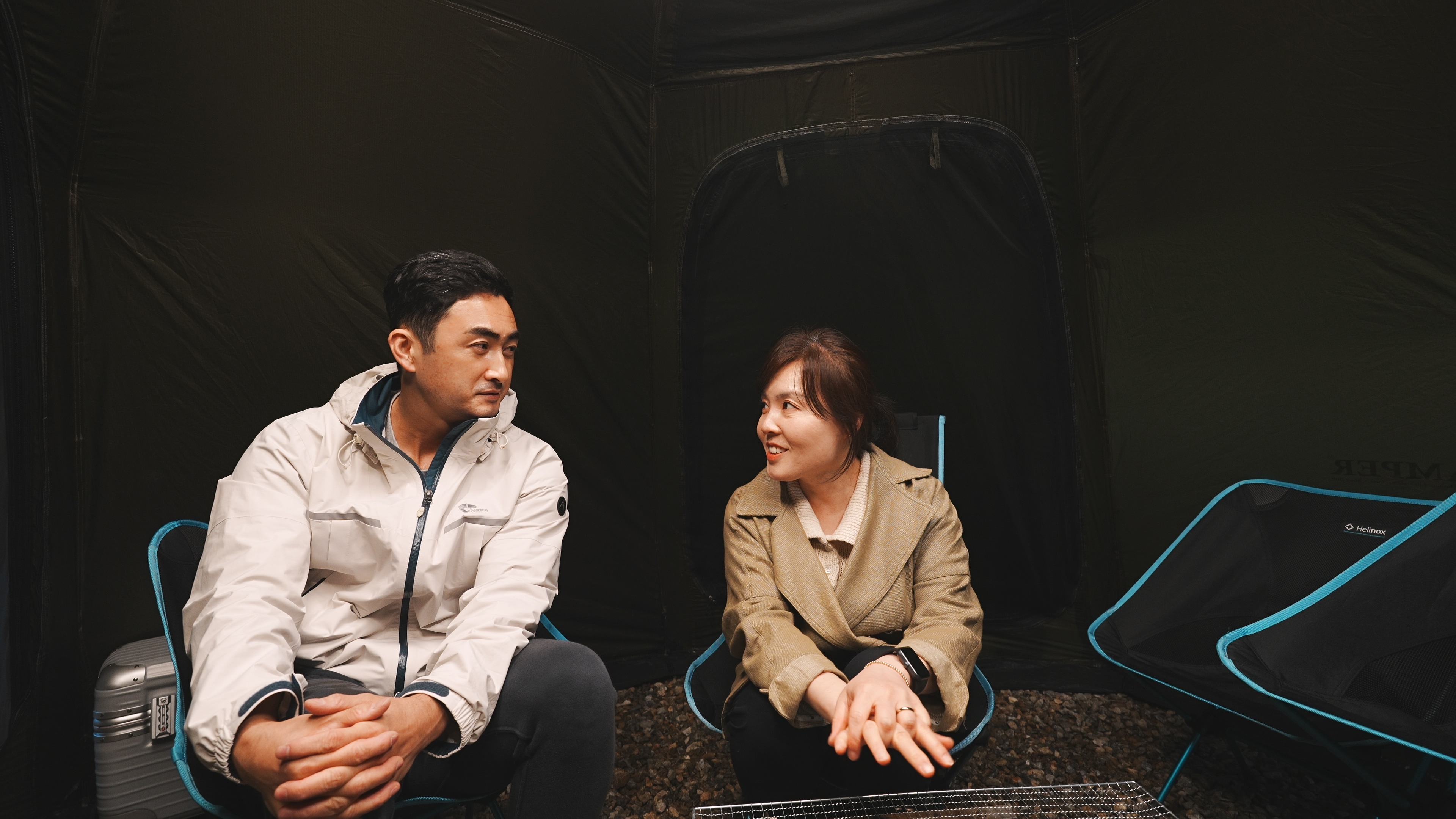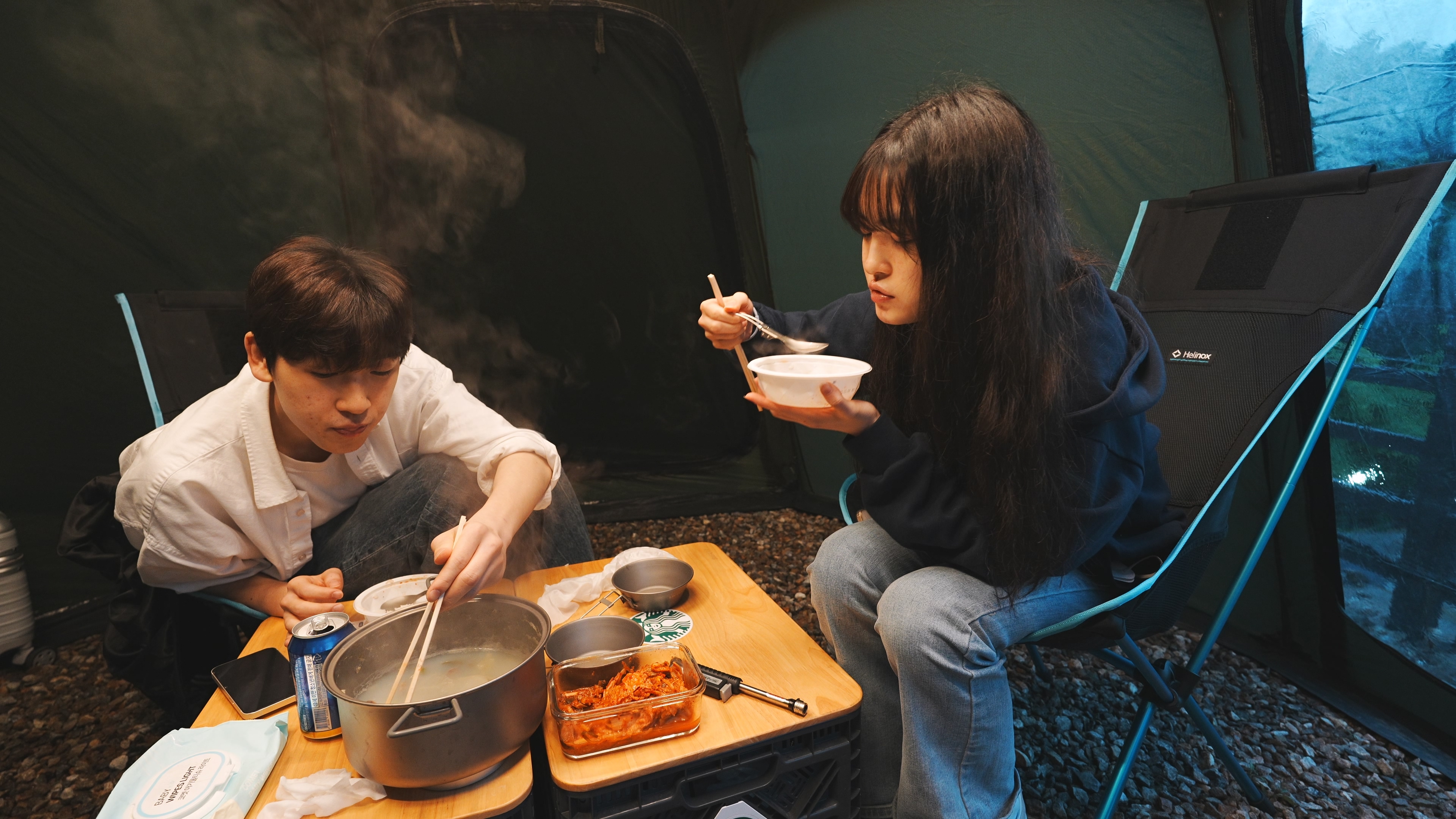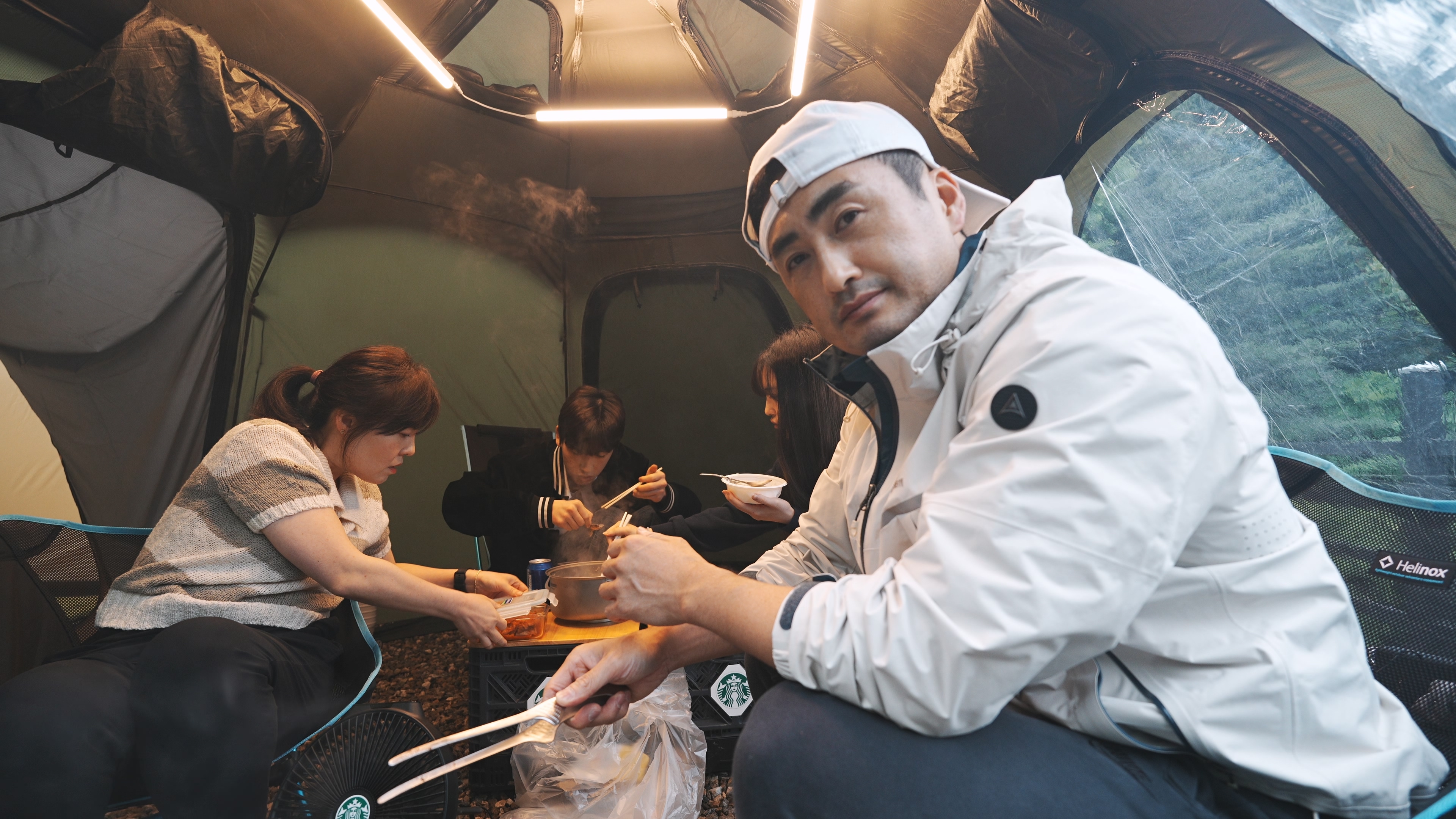 아이들은 조식 텐트에 넣어두고
