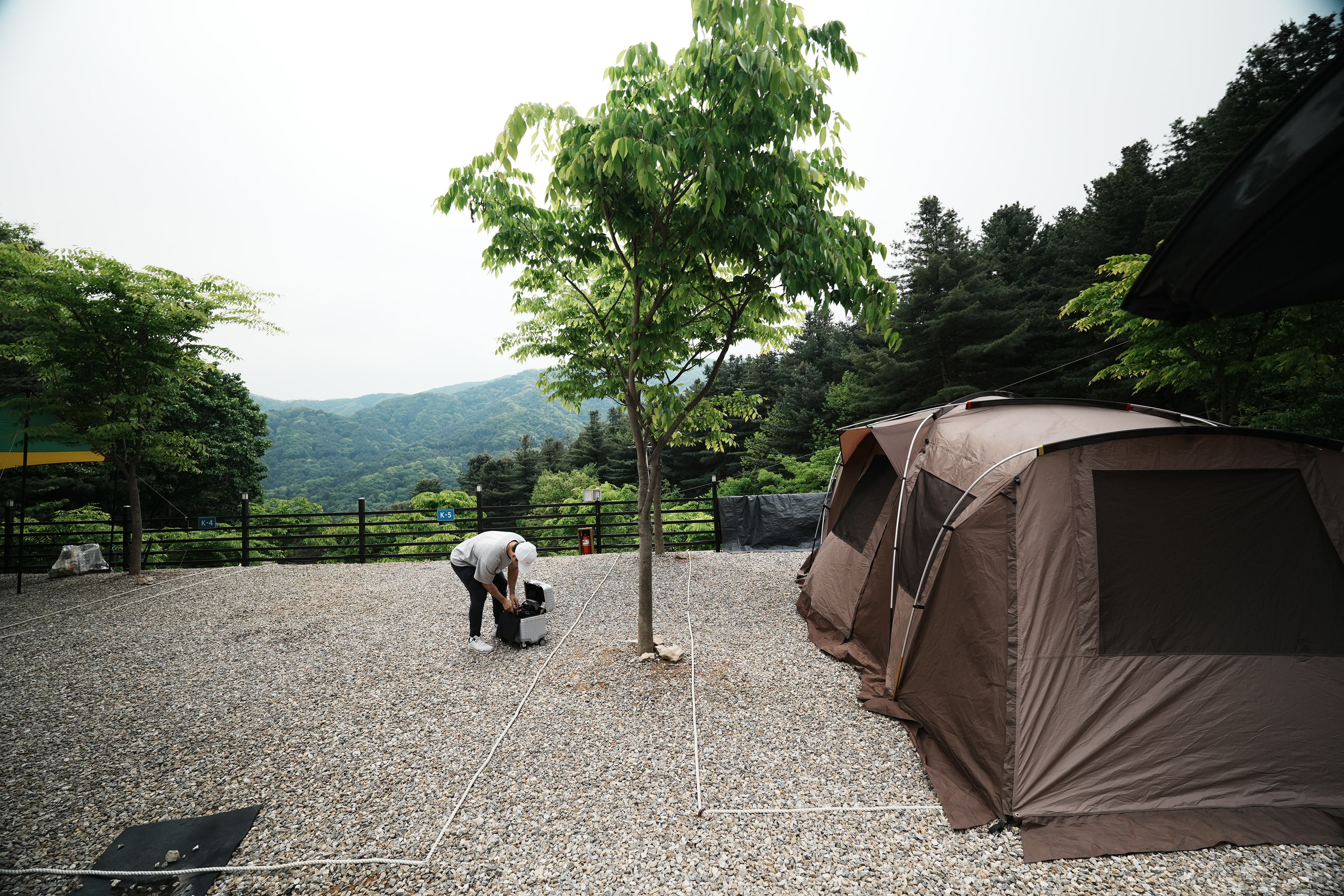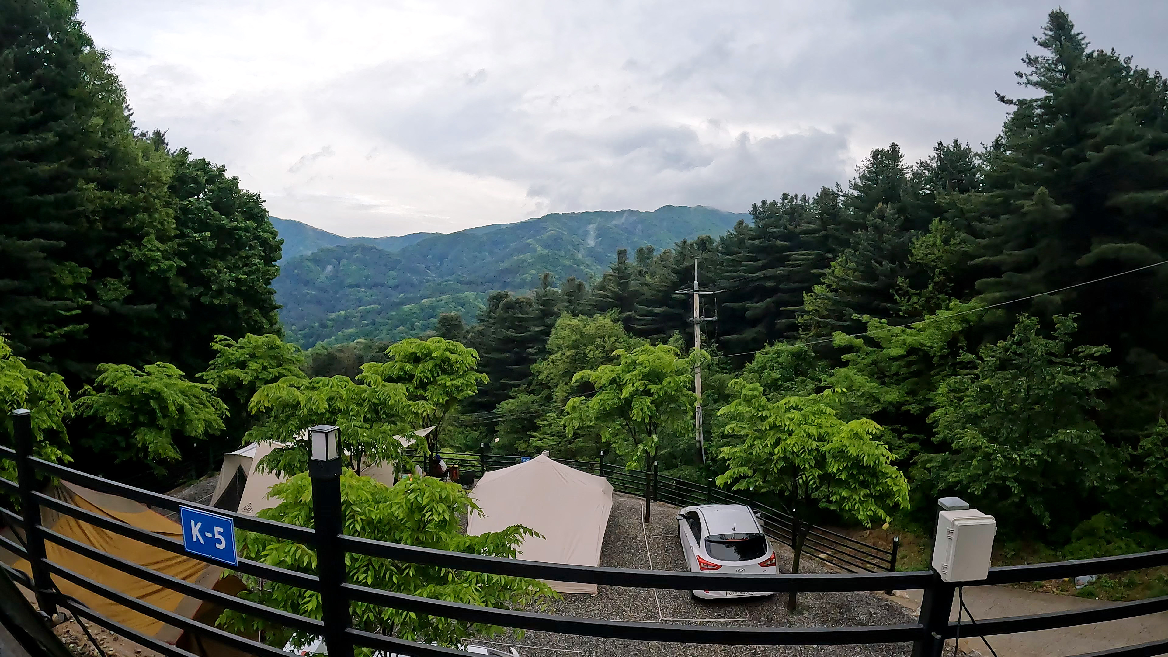 캠핑장 도착. 가평 블루문캠핑장의 K-5 사이트이다. 엄청나게 많은 사이트가 있는데 그 중에서 K구역이 뷰가 좋을 것 같아 예약한 자리인데, 기대한 것 만큼의 멋진 뷰는 아니었다.