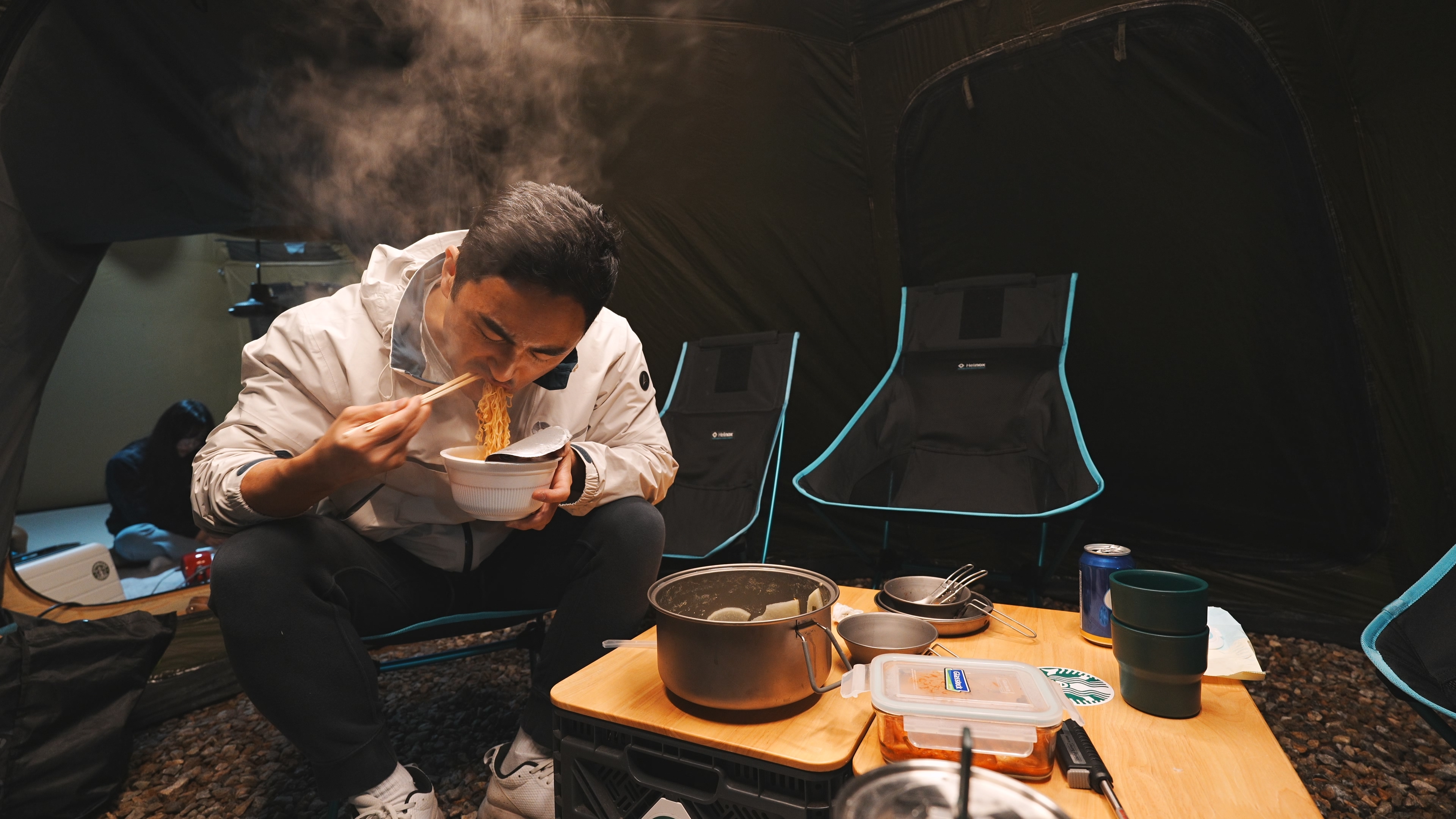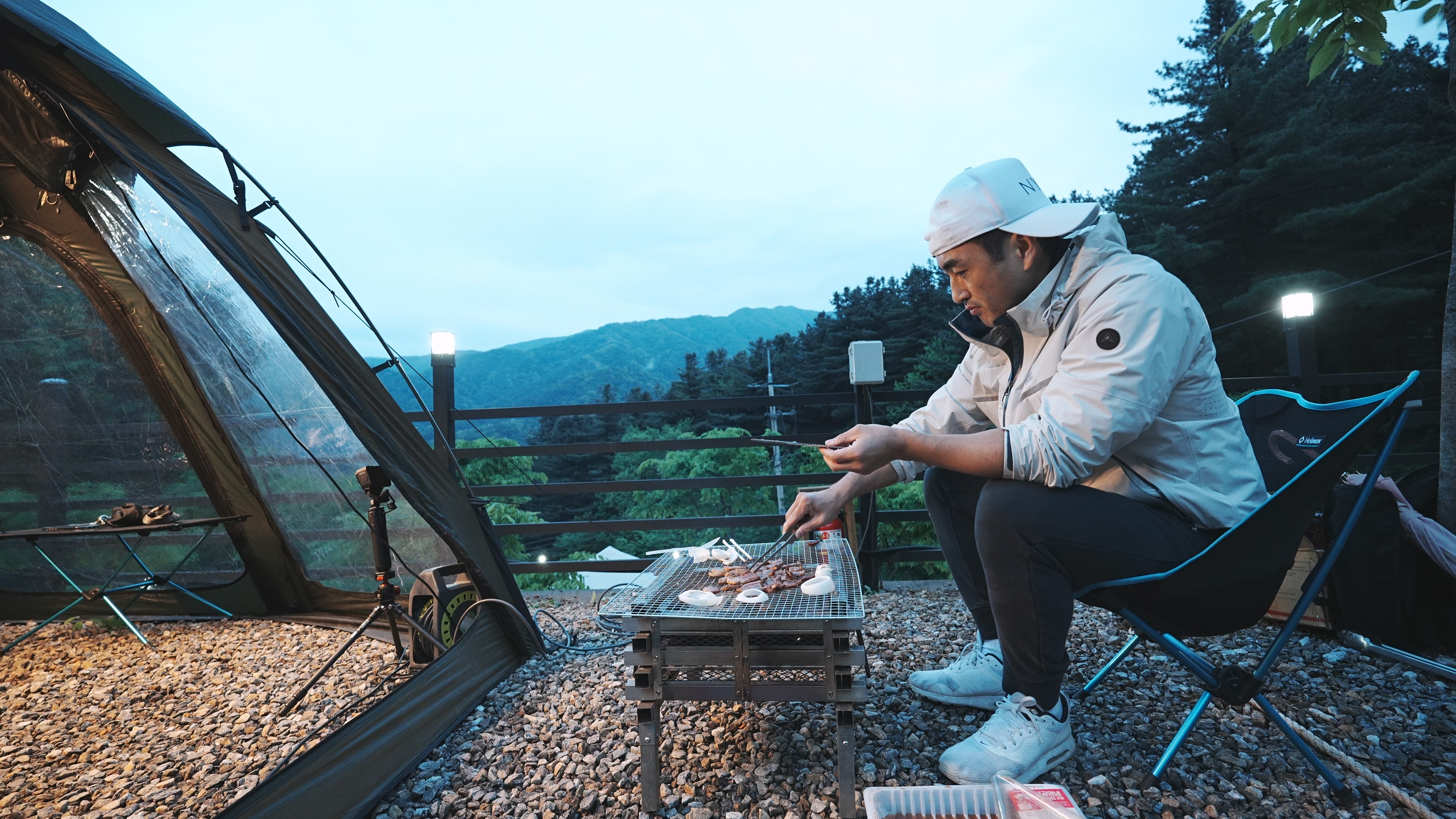 아이들은 조식 텐트에 넣어두고
