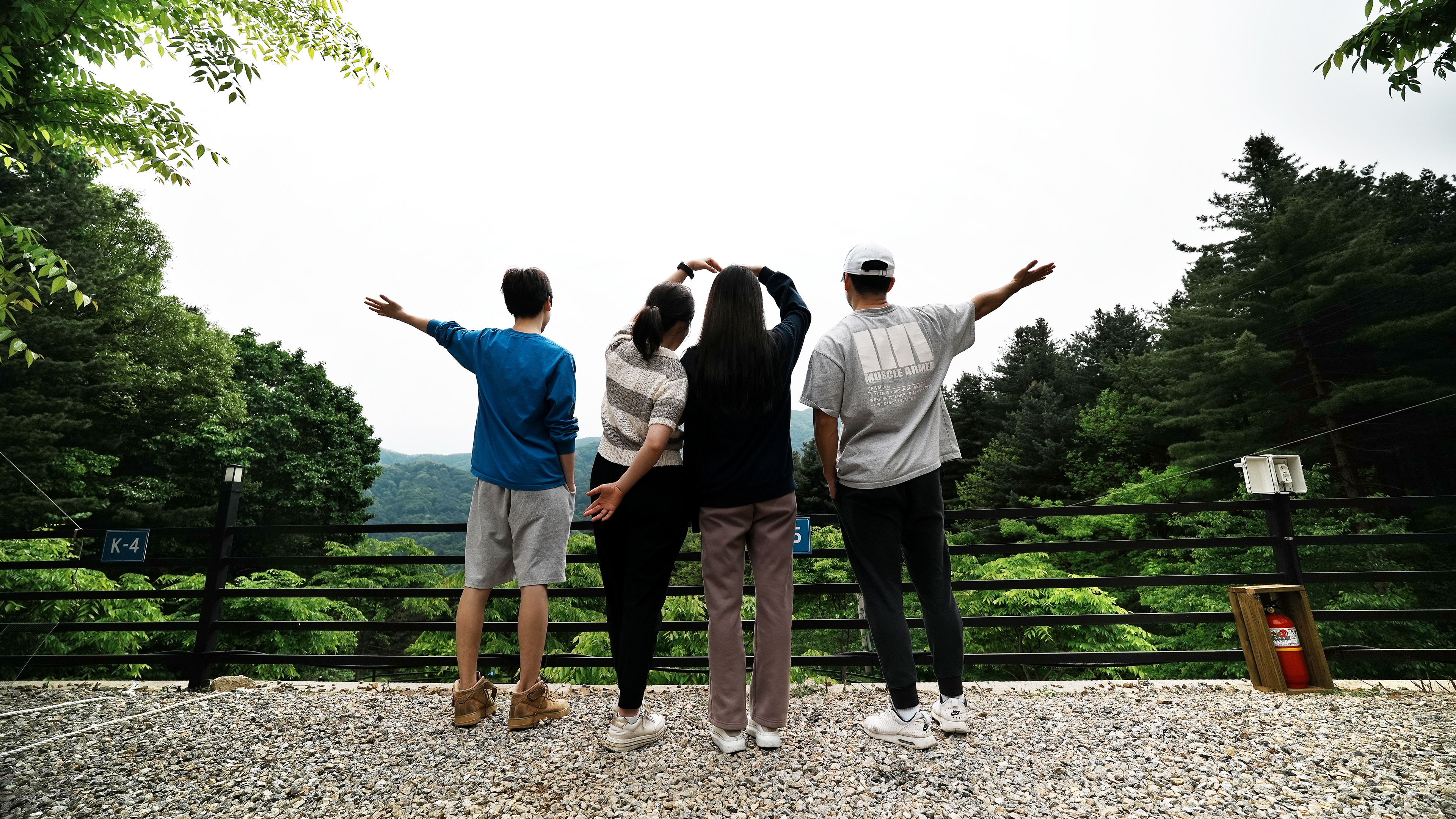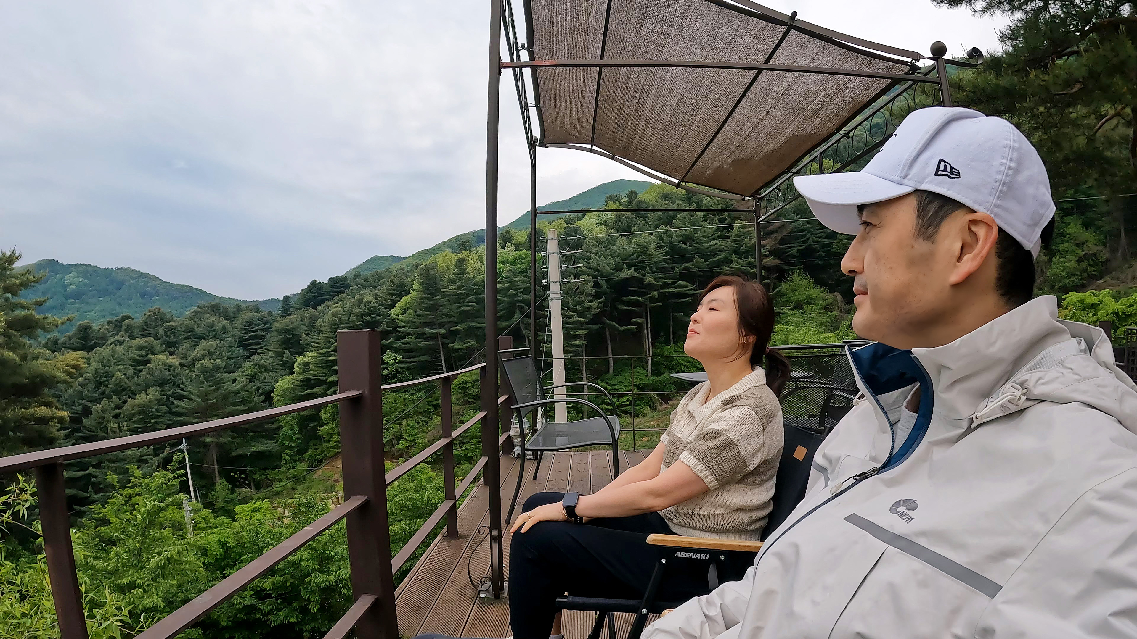 매점 앞의 전망 좋은 곳에서 와이프랑 둘이서 아침 맑은 공기 마시며 시간을 보내고