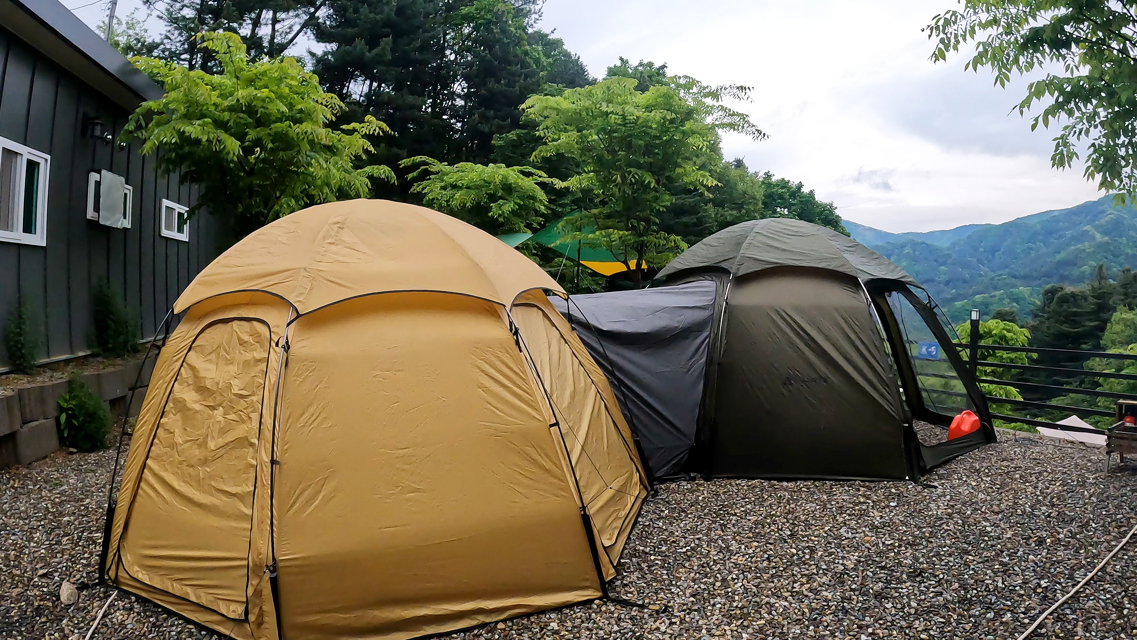 캠핑장 도착. 가평 블루문캠핑장의 K-5 사이트이다. 엄청나게 많은 사이트가 있는데 그 중에서 K구역이 뷰가 좋을 것 같아 예약한 자리인데, 기대한 것 만큼의 멋진 뷰는 아니었다.