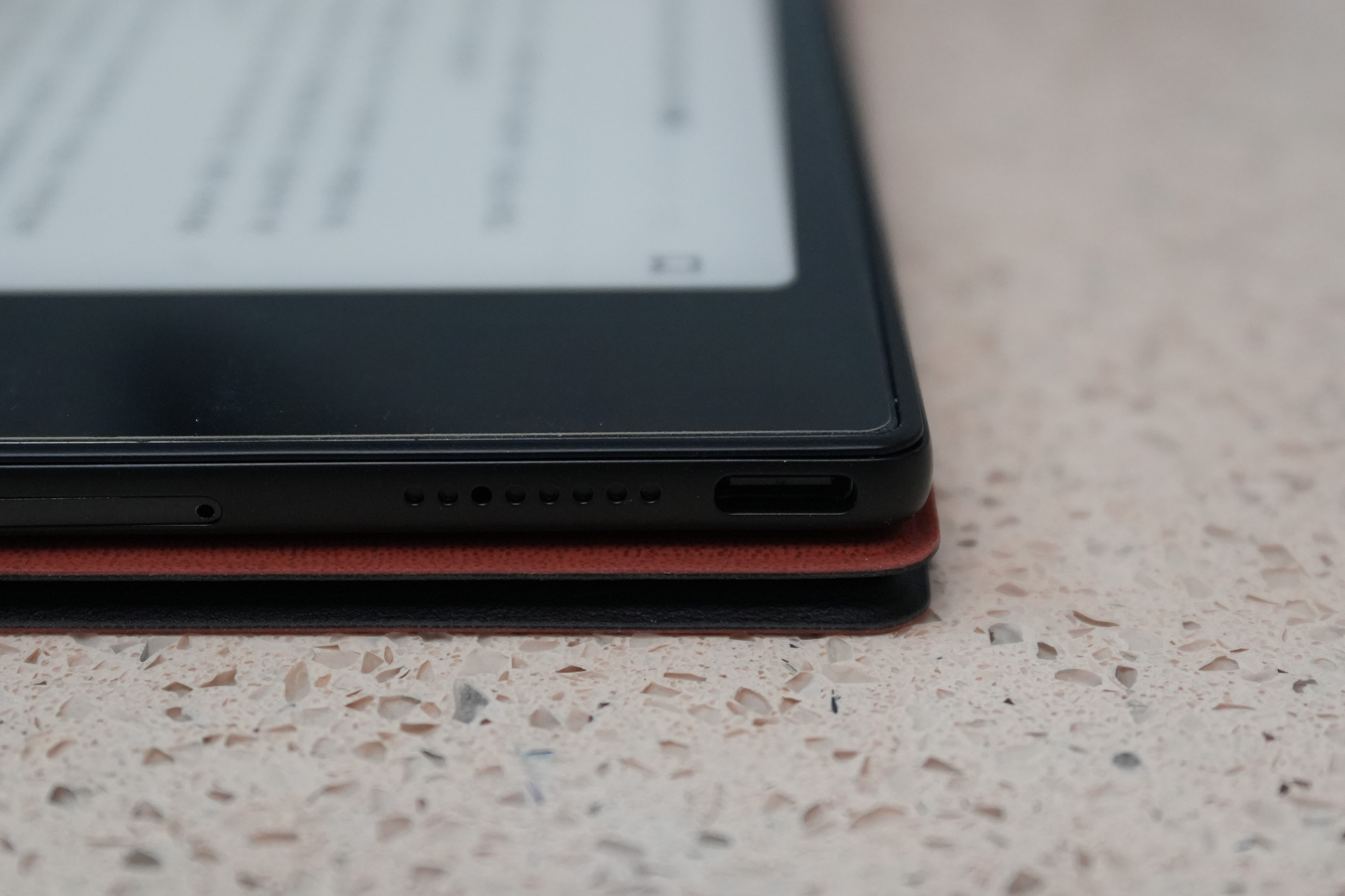 상단에 위치한 충전잭과 스피커. 그리고 MicroSD 카드 단자.
