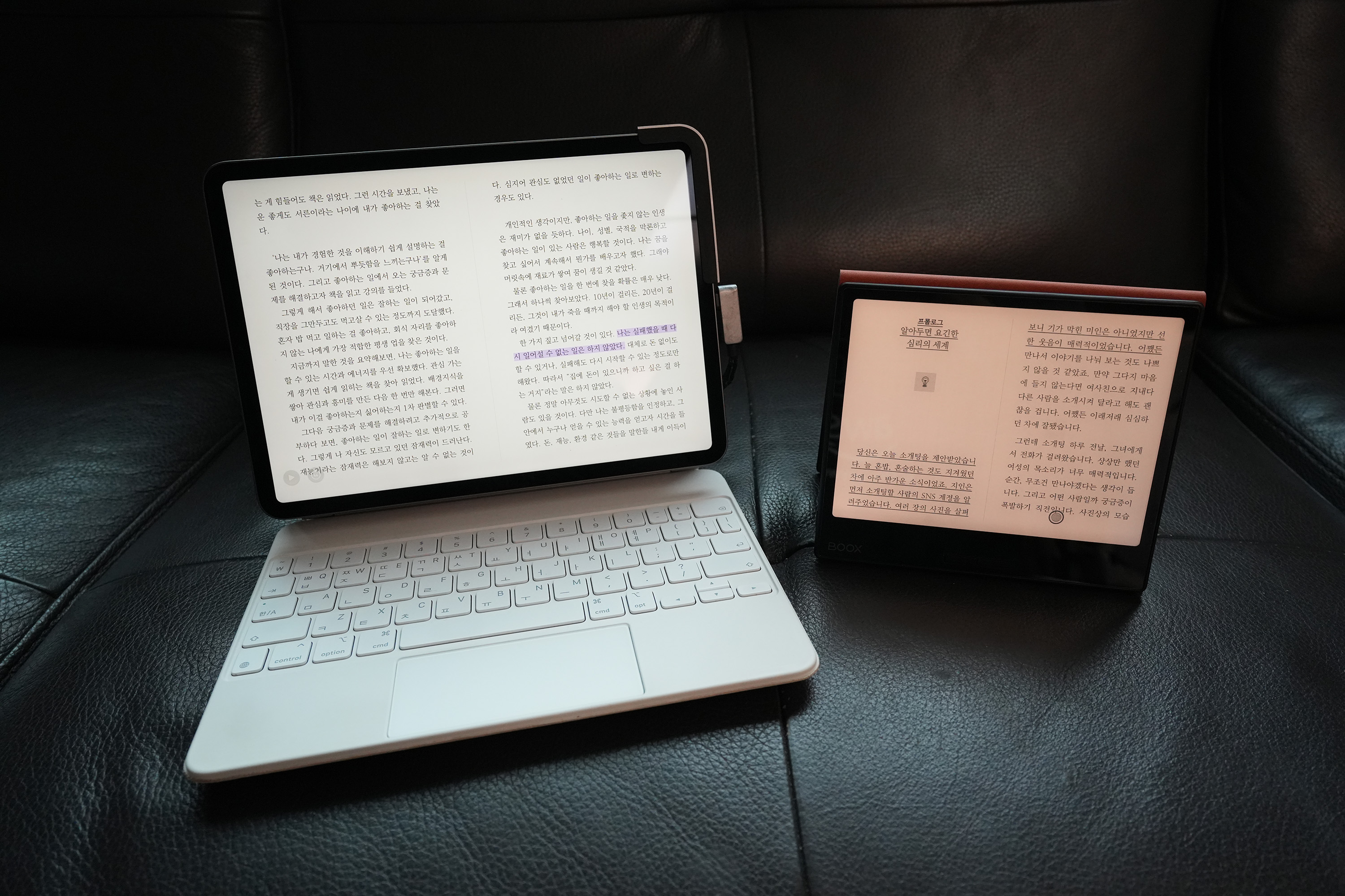 아이패드로 밀리의서재 앱을 통해 책을 읽다 보면 좀 보다가 유튜브앱이나 사파리로 이동하게 되는데, 이 리더기는 그럴일은 없어 보인다.