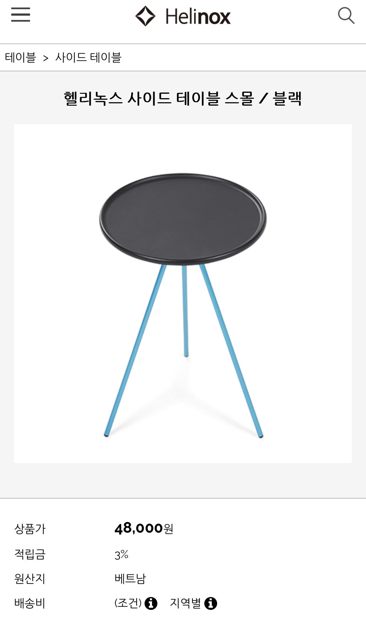 헬리녹스에서는 사이드테이블 Small 사이즈로 48,000원에 판매가 되고 있는 제품인데, 스타벅스용으로 제작한 제품이다.