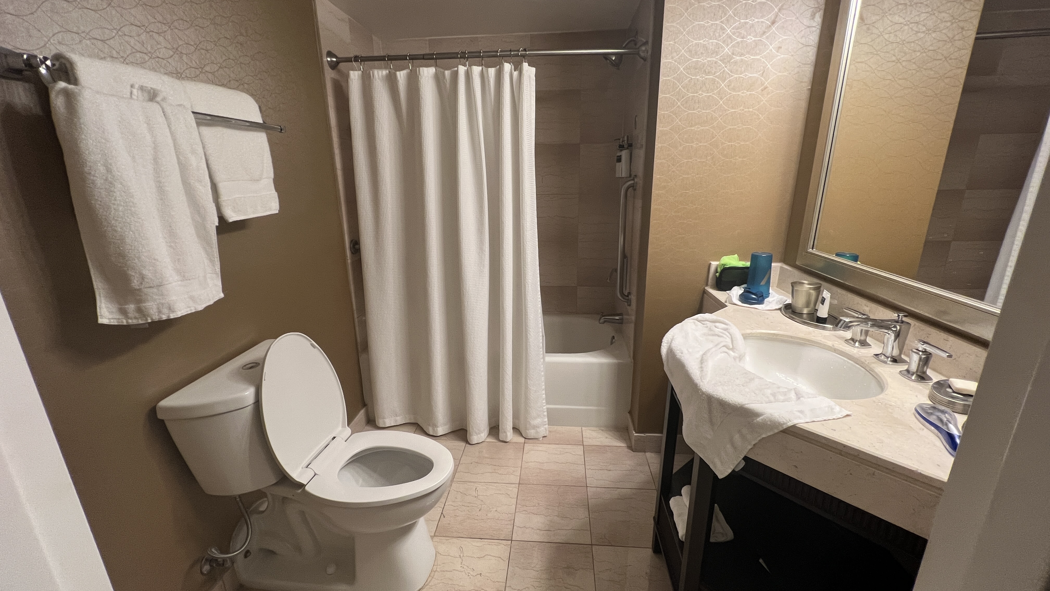아. 그리고 세면대 물이 쫄쫄쫄 약하게 나오는 점도 단점. 비데를 기대하는건 미국에서 과욕인듯 하고. 드라이기는 비치되어 있었으나 성능이 좋지 않았다.