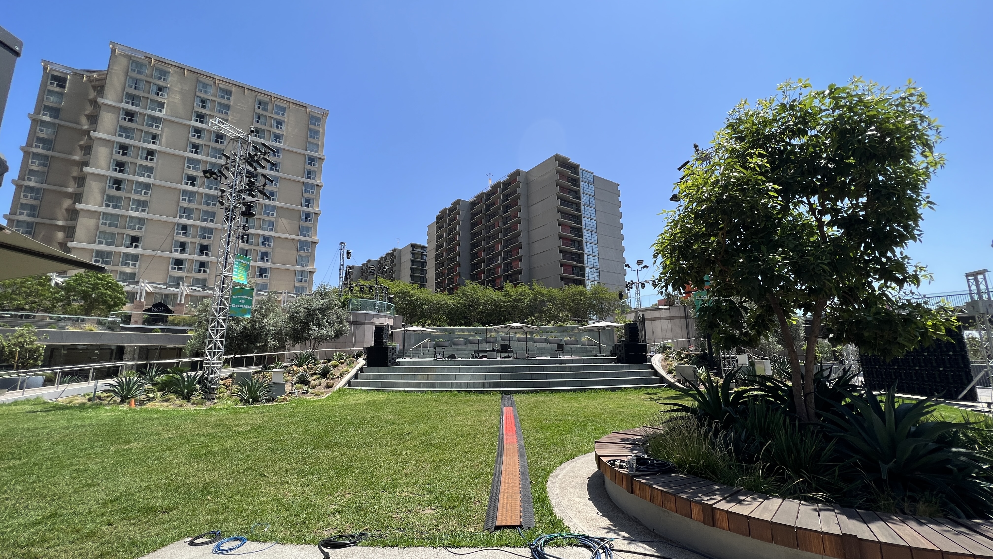 플라자에서 바라본 무대와 호텔