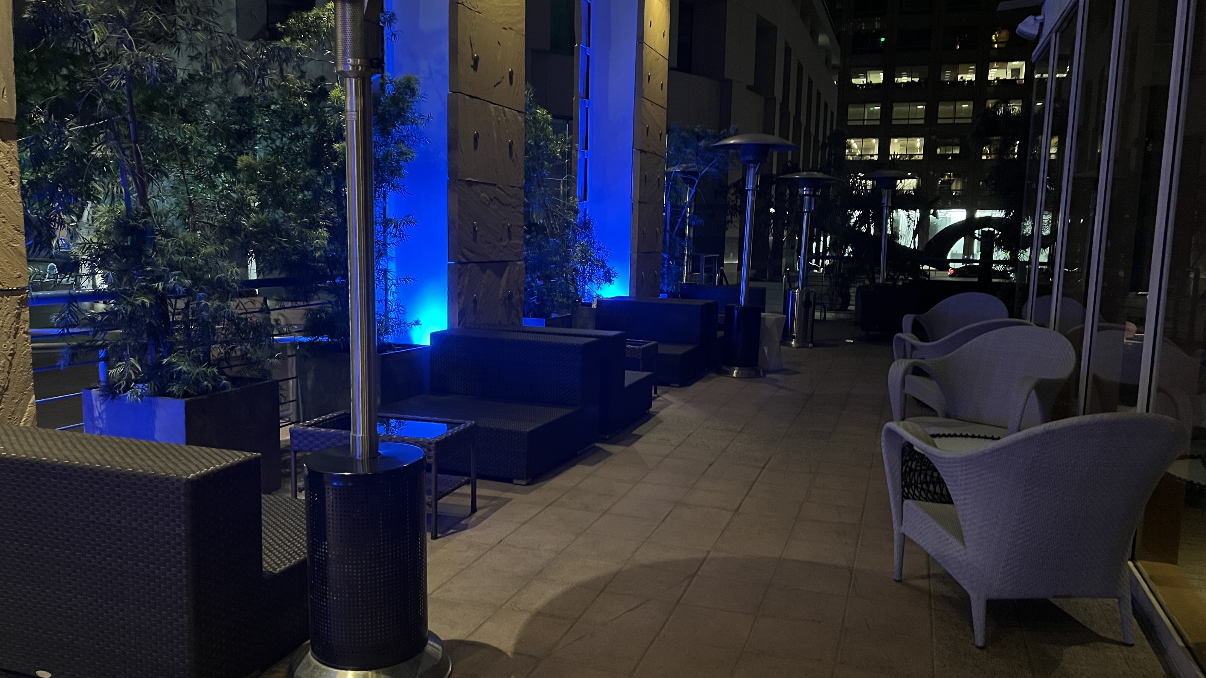 호텔 3층에는 바와 레스토랑, 카페가 있는데 이용할때 위 사진에서 처럼 야외 넓직한 자리에서 바깥 바람 쐬면서 식사&술을 즐길수 있다