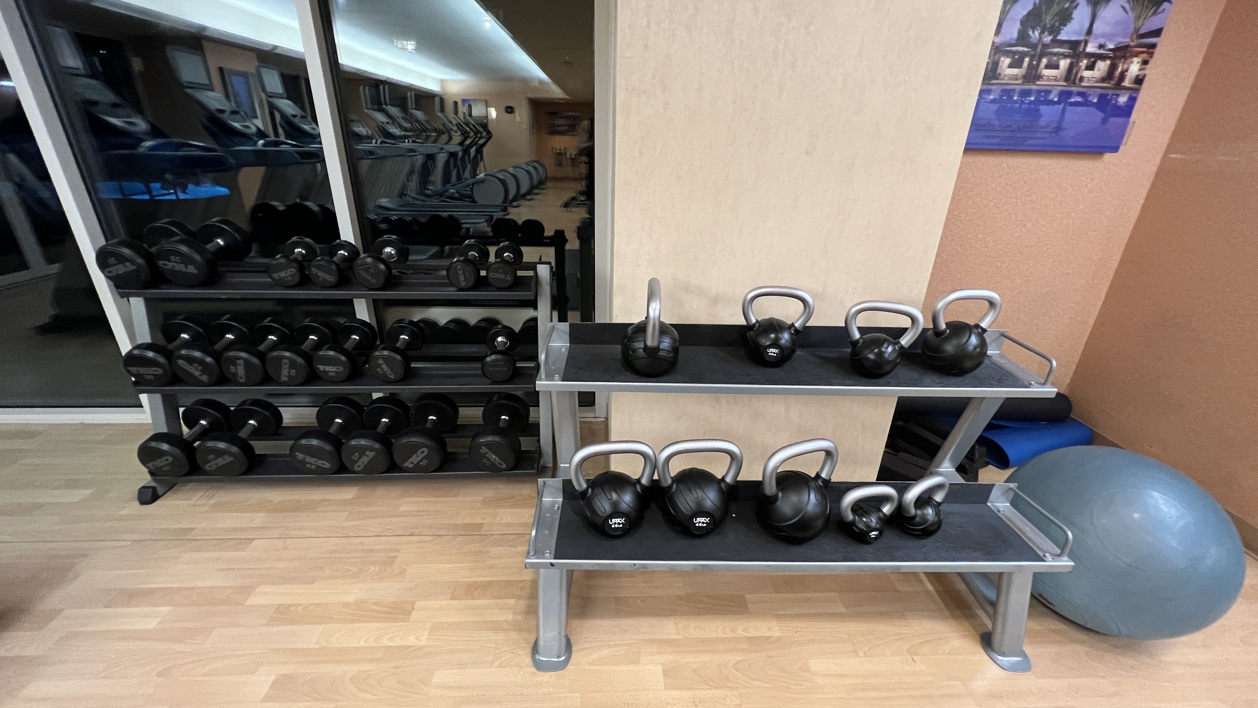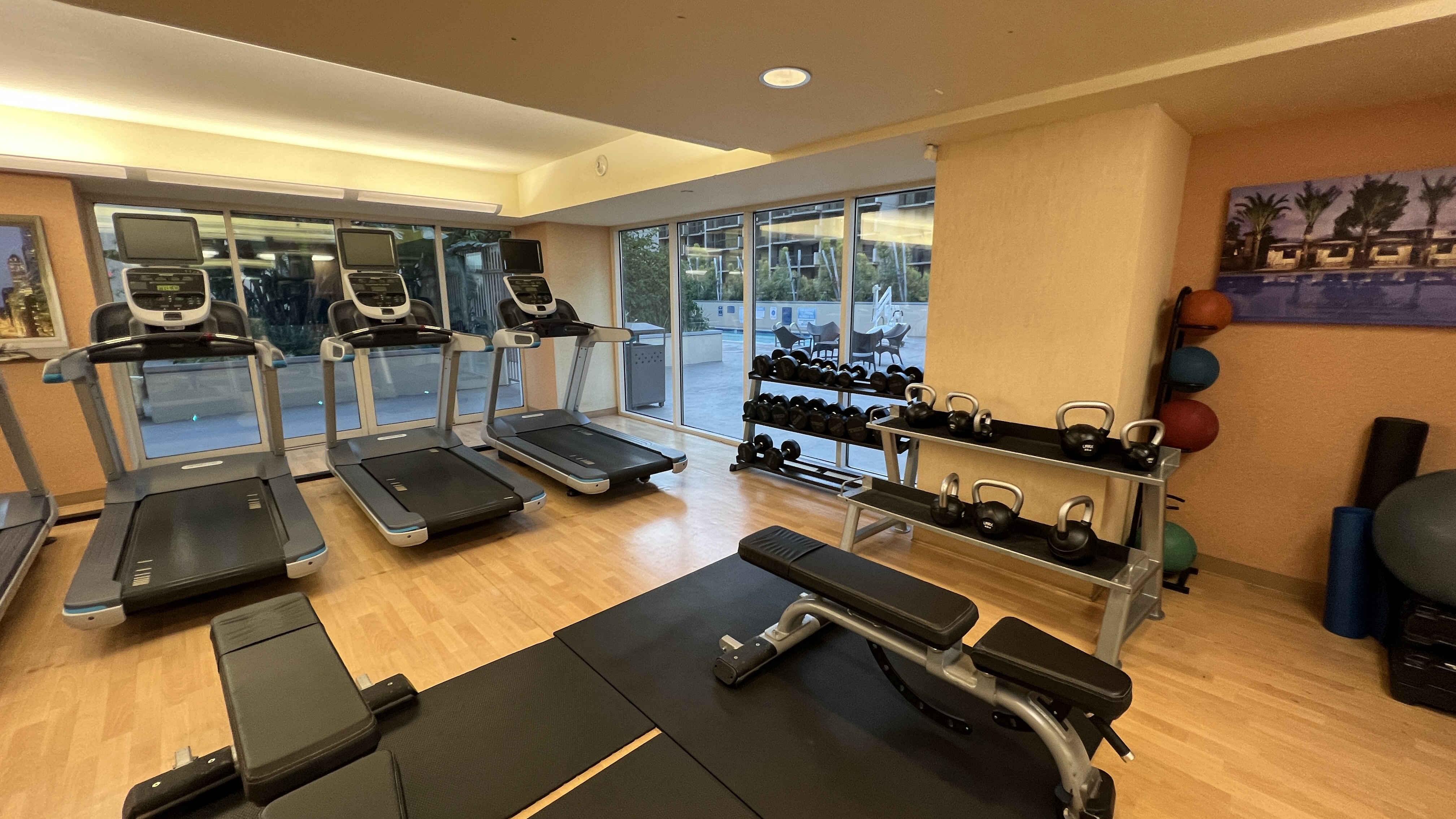 그리고 호텔 4층에 있는 Fitness Center. 24시간 열려 있다고 하고 덤벨은 아쉽게도 50lbs 까지만 있었다.