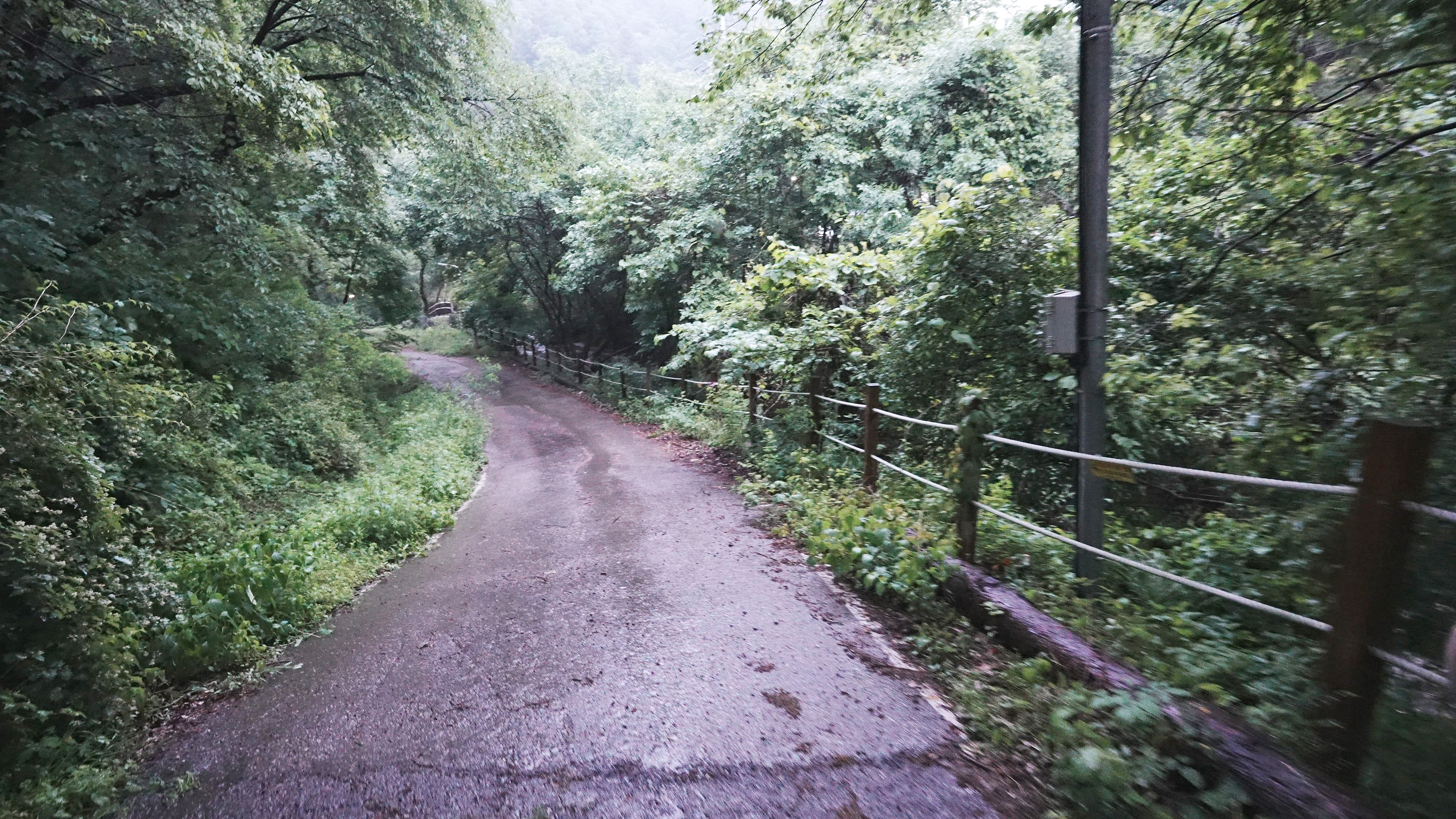 사진 오른쪽에 보이는 건물이, 개수대/화장실. 비만 오지 않았으면 2야영장 까지 걸어 올라가려 했으나, 비가 계속 내리는 관계로 포기.
