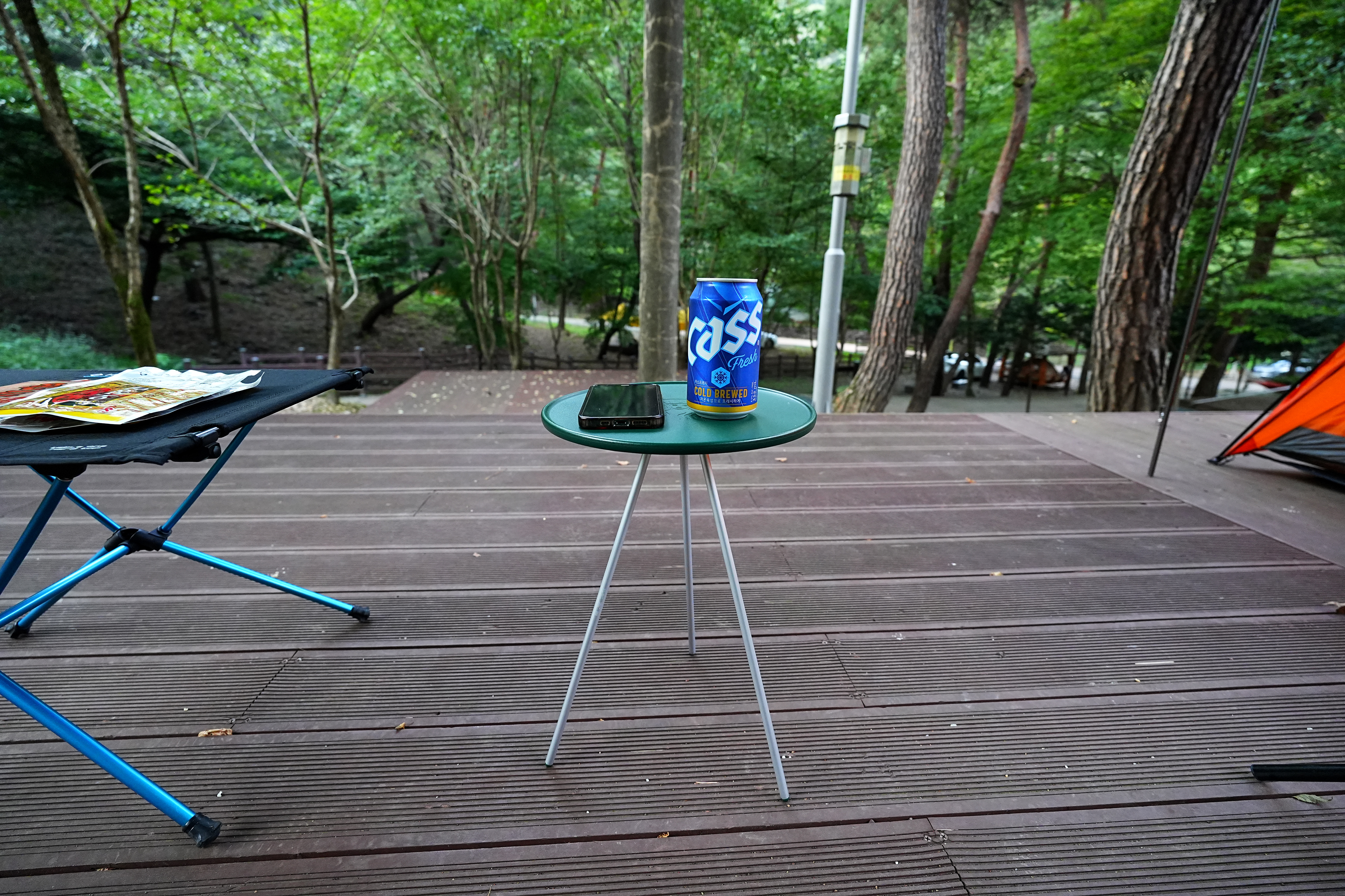 오늘 처음 등장한 사이드테이블. 스타벅스 프리퀀시로 받은 테이블인데, 휴대폰과 맥주 하나 올리기 딱 좋다.