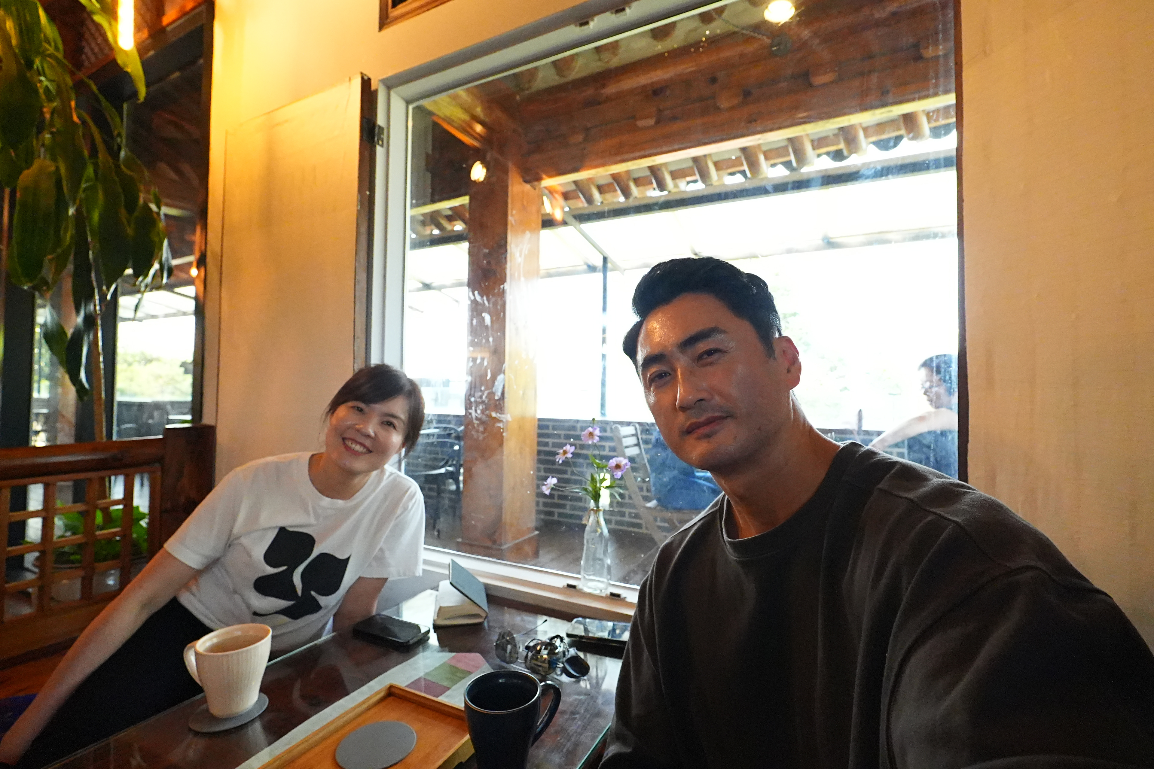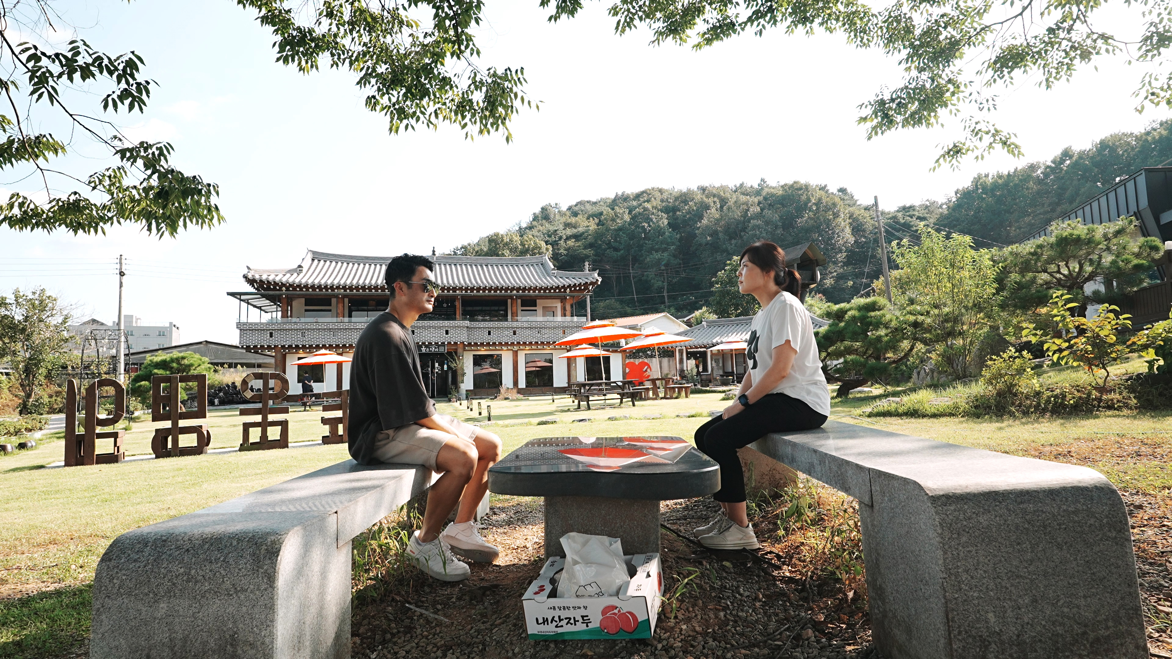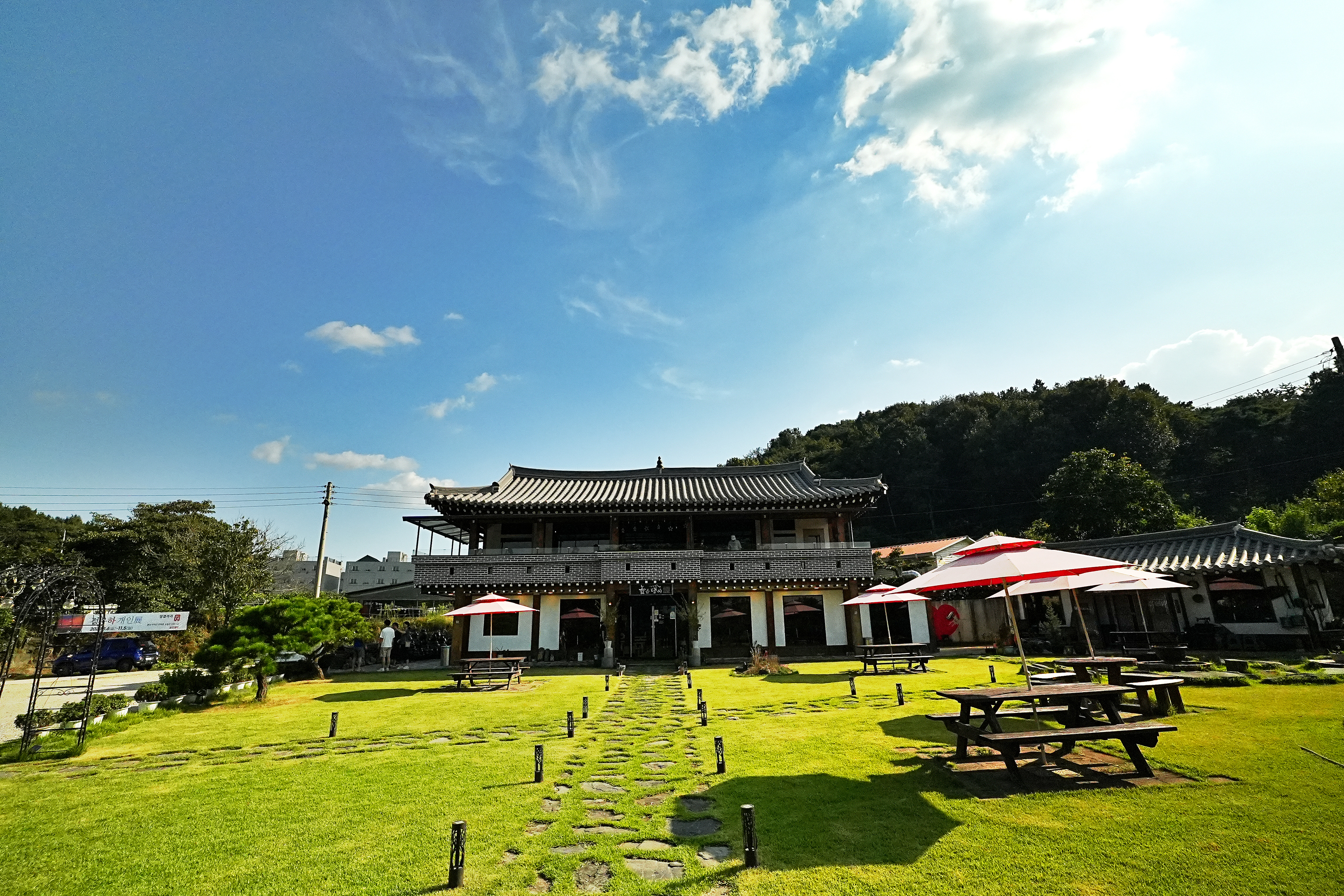 넓은 정원이 있는 한옥 느낌의 카페이다