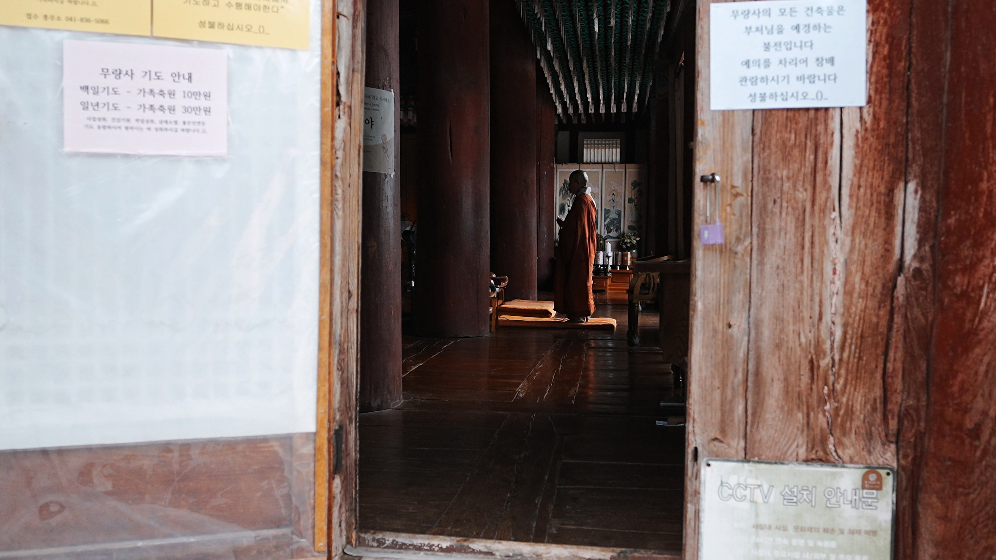 비어있는 법당에 들어가서 예불 3번을 올리고, 마음의 평온을 위해 불전함에 시주도 한다.