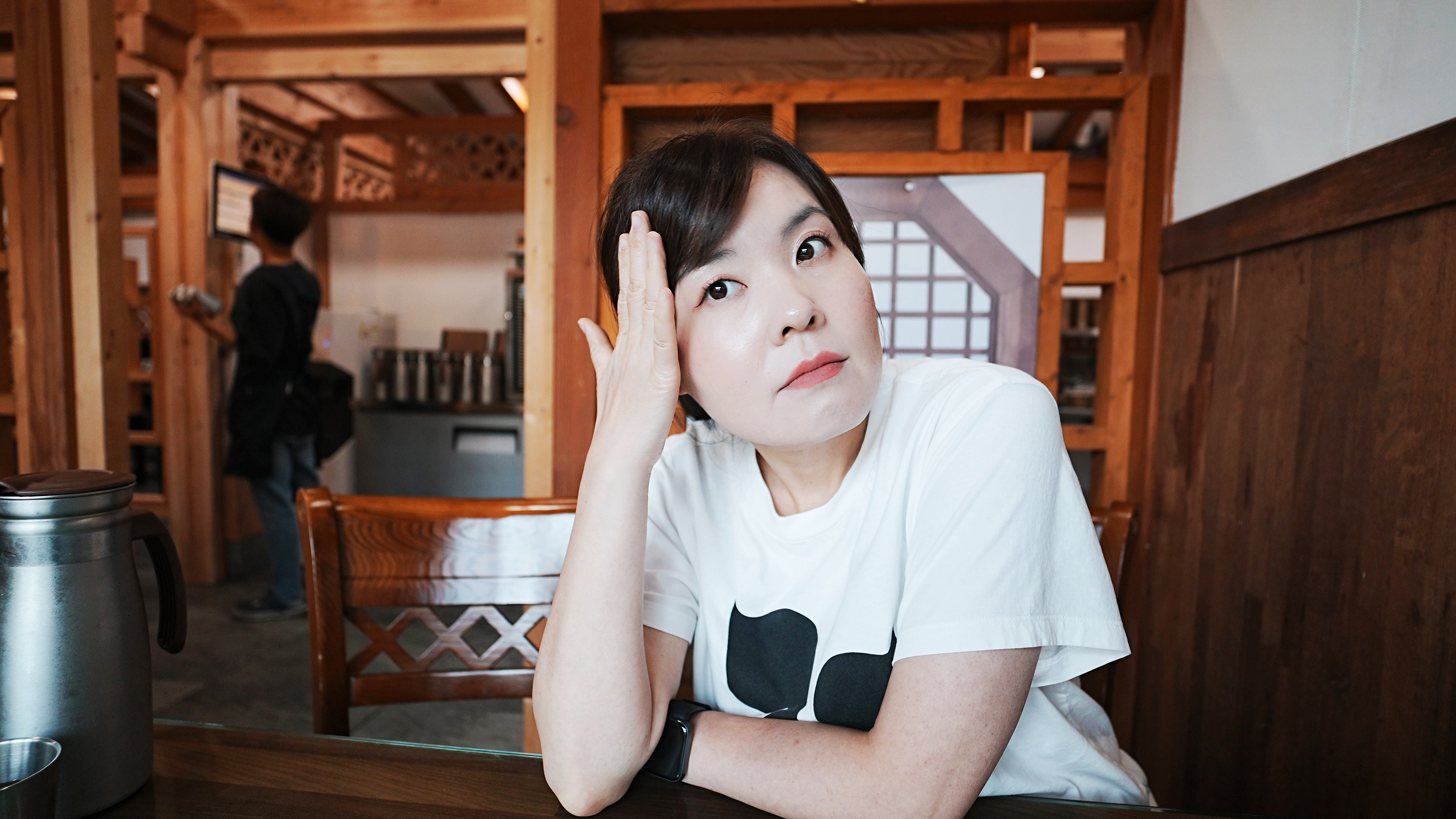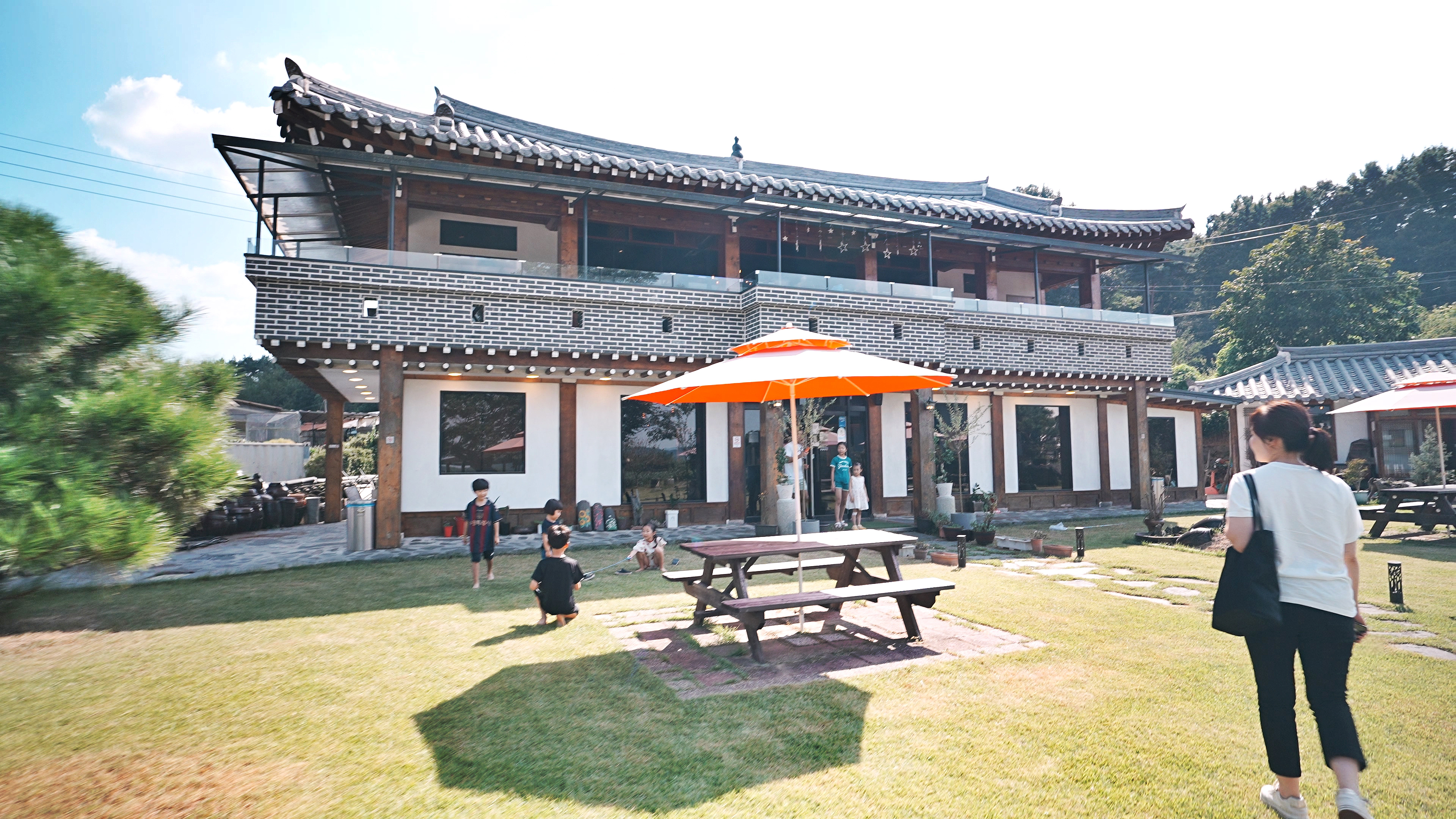 넓은 정원이 있는 한옥 느낌의 카페이다