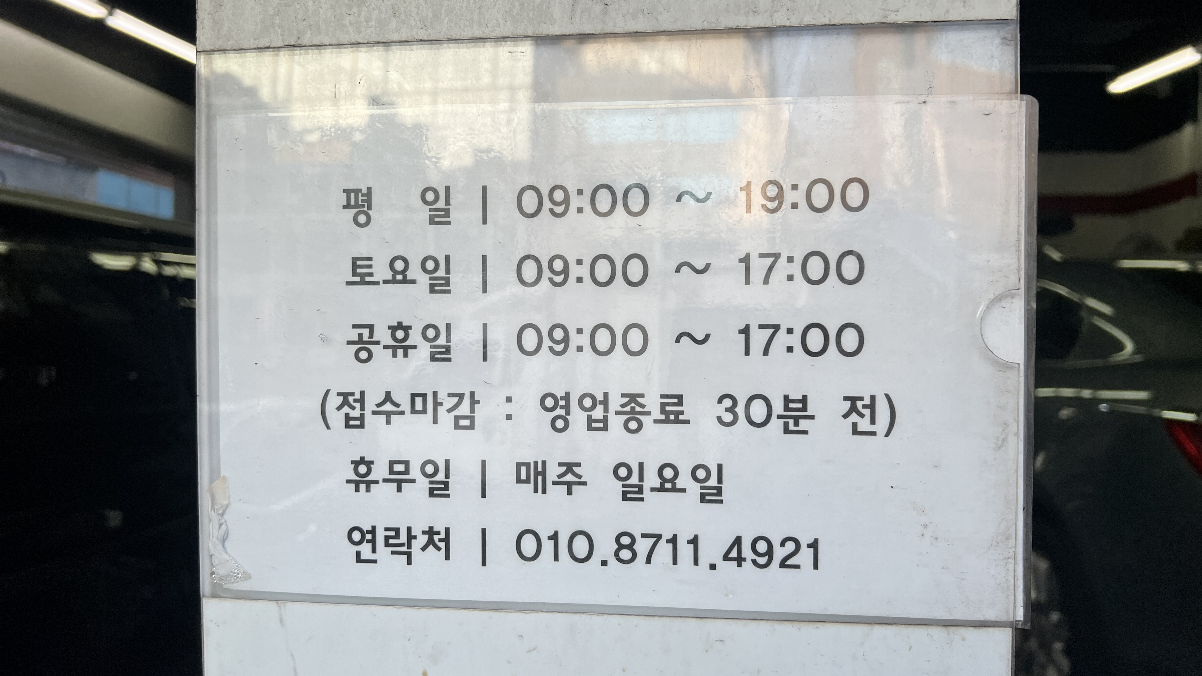 쿠폰을 써볼 요량으로 현장결제를 선택하고 가까운 스피드메이트 지점 (도곡점)으로 예약하고, 해당일자에 방문.