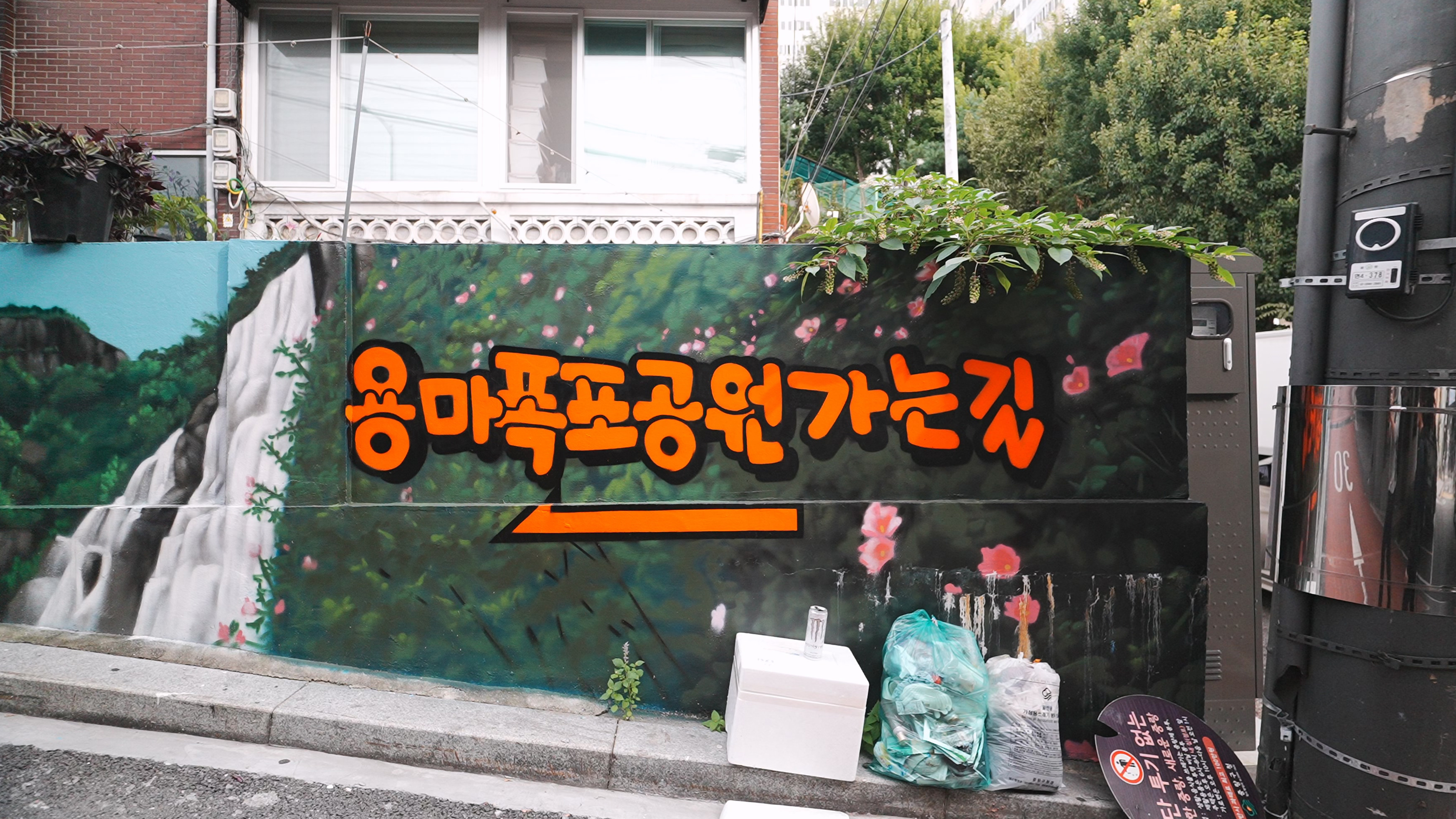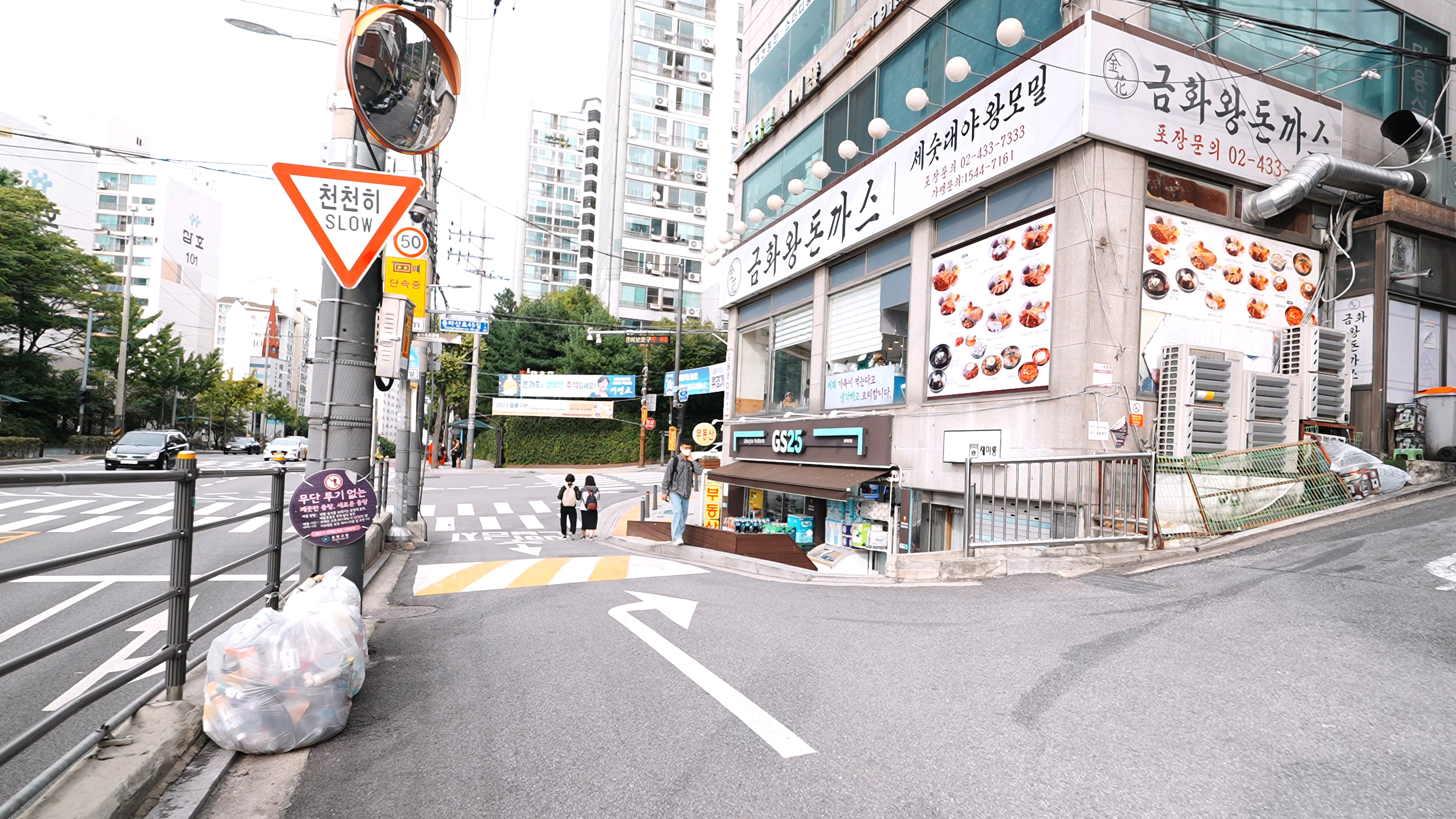 사진에 보이는 금화왕돈까스를 끼고 우측으로 꺽어지면 용마폭포공원으로 가는 길이 나온다.