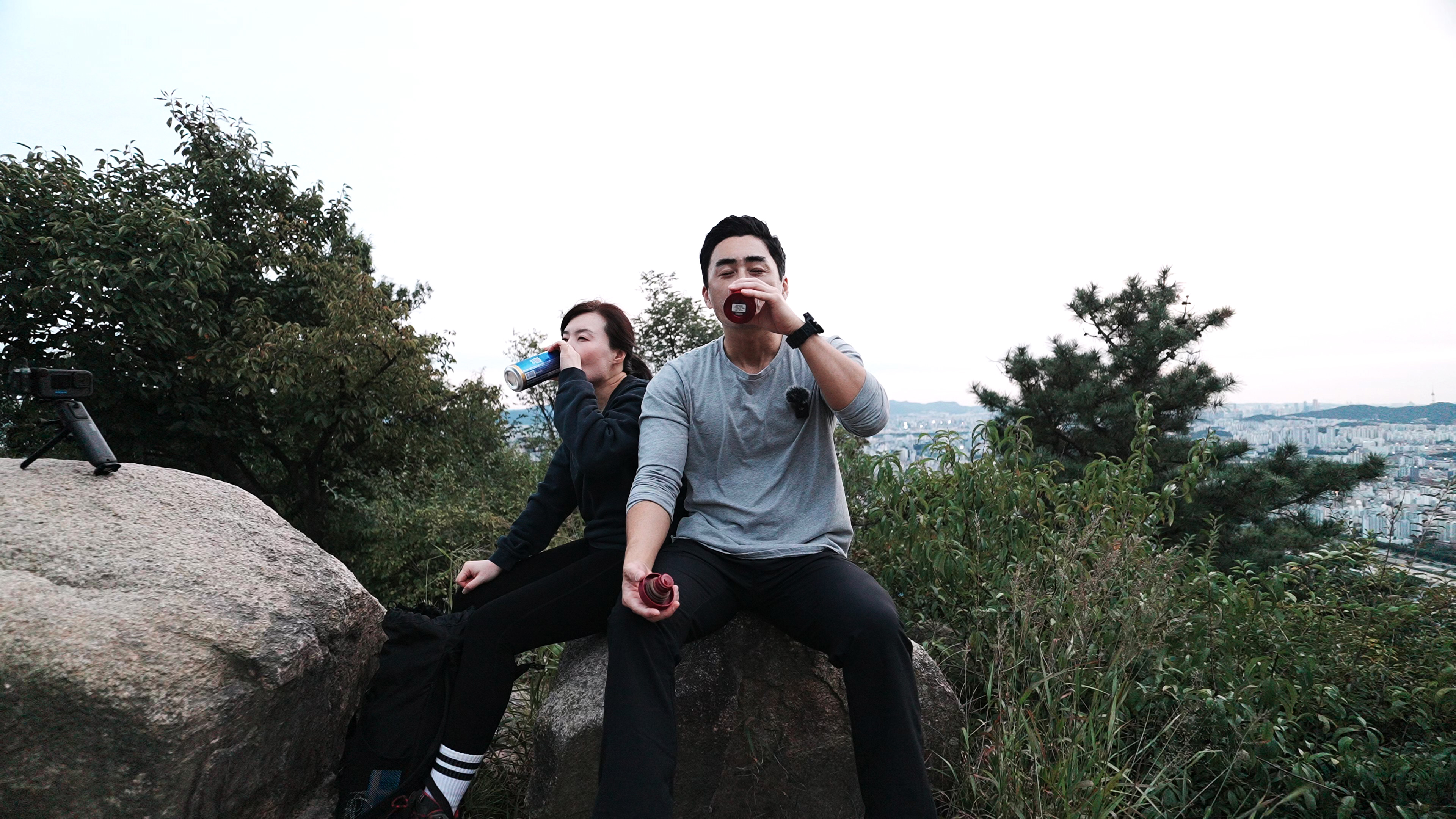 대충 돌바위에 걸터 앉아서 맥주와 커피 한잔