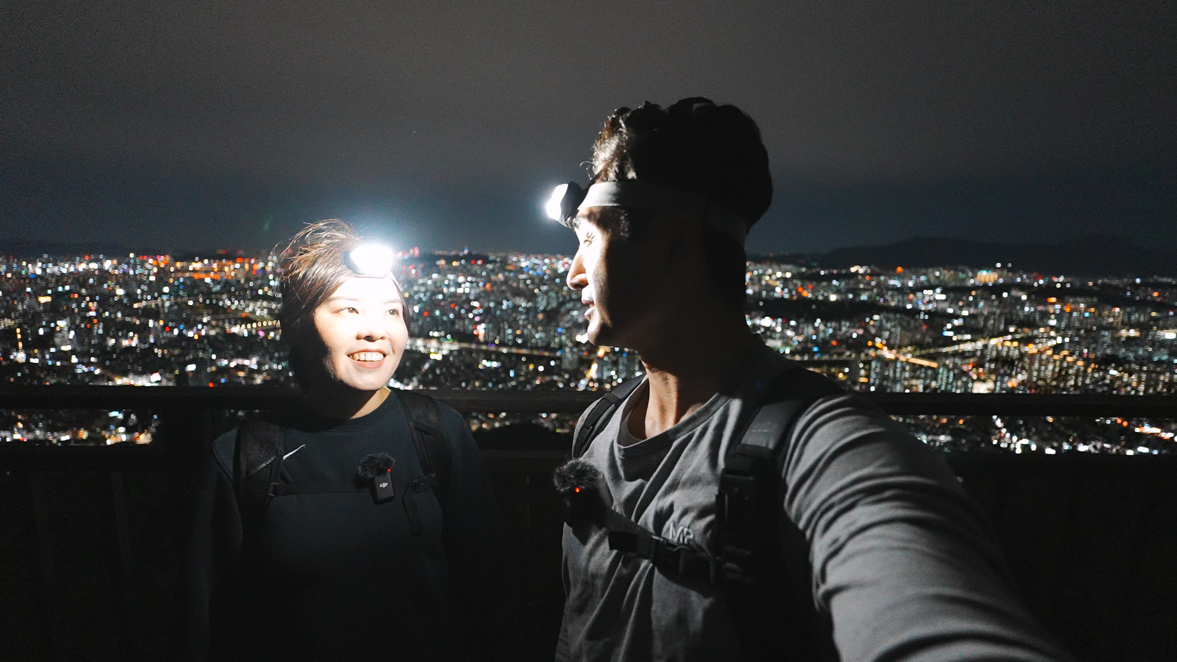 헤드랜턴 장착하고 하산 시작