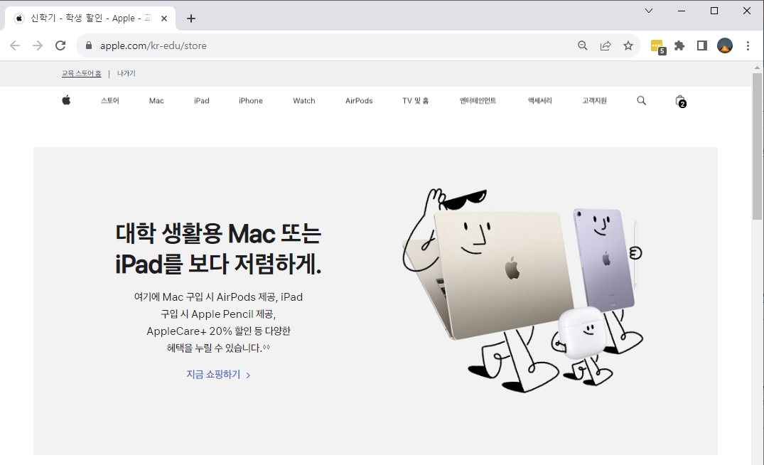 매년 이 맘때면 시행하는 Apple 공홈의 교육할인 제도. 공홈에 들어가니 24년도 1월 4일부터 시행이 되어 이미 프로모션이 올라 와 있다.