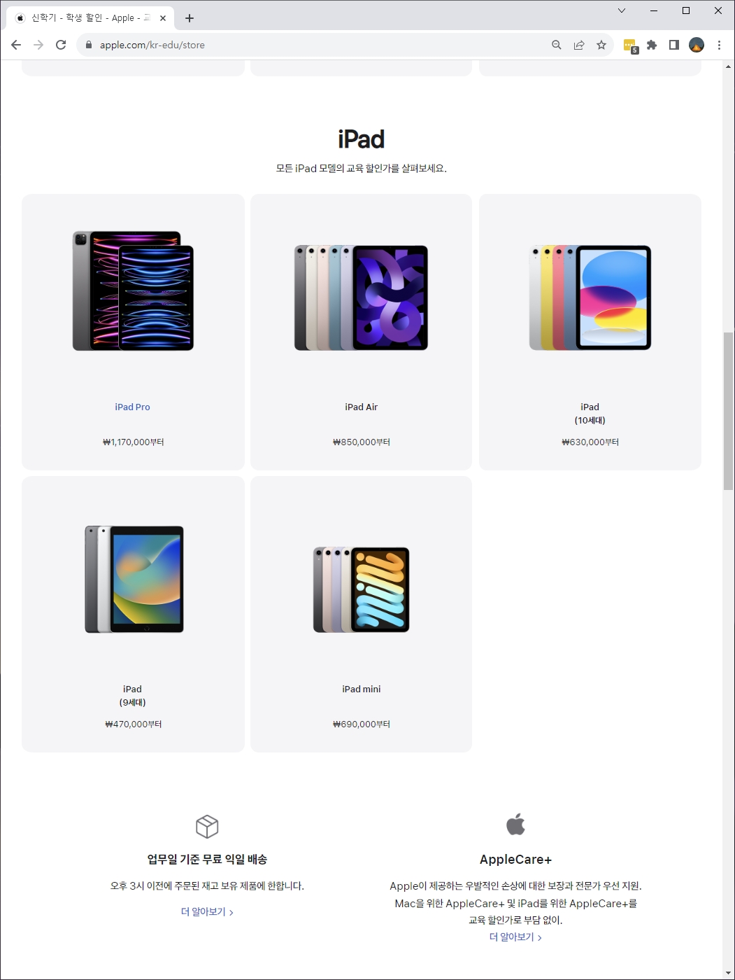 iPad 또한 이미 할인 적용된 상태로 표시된다.