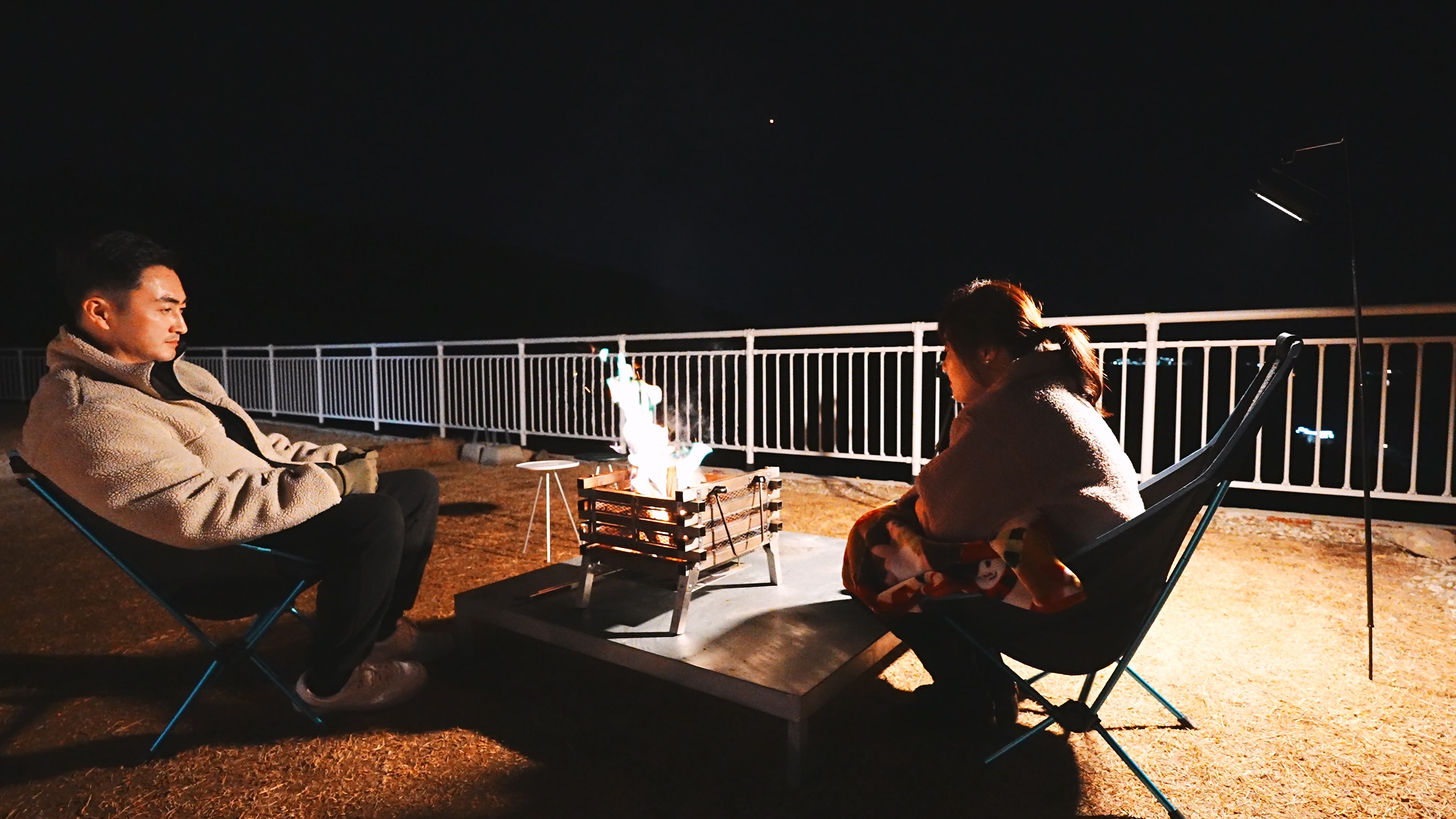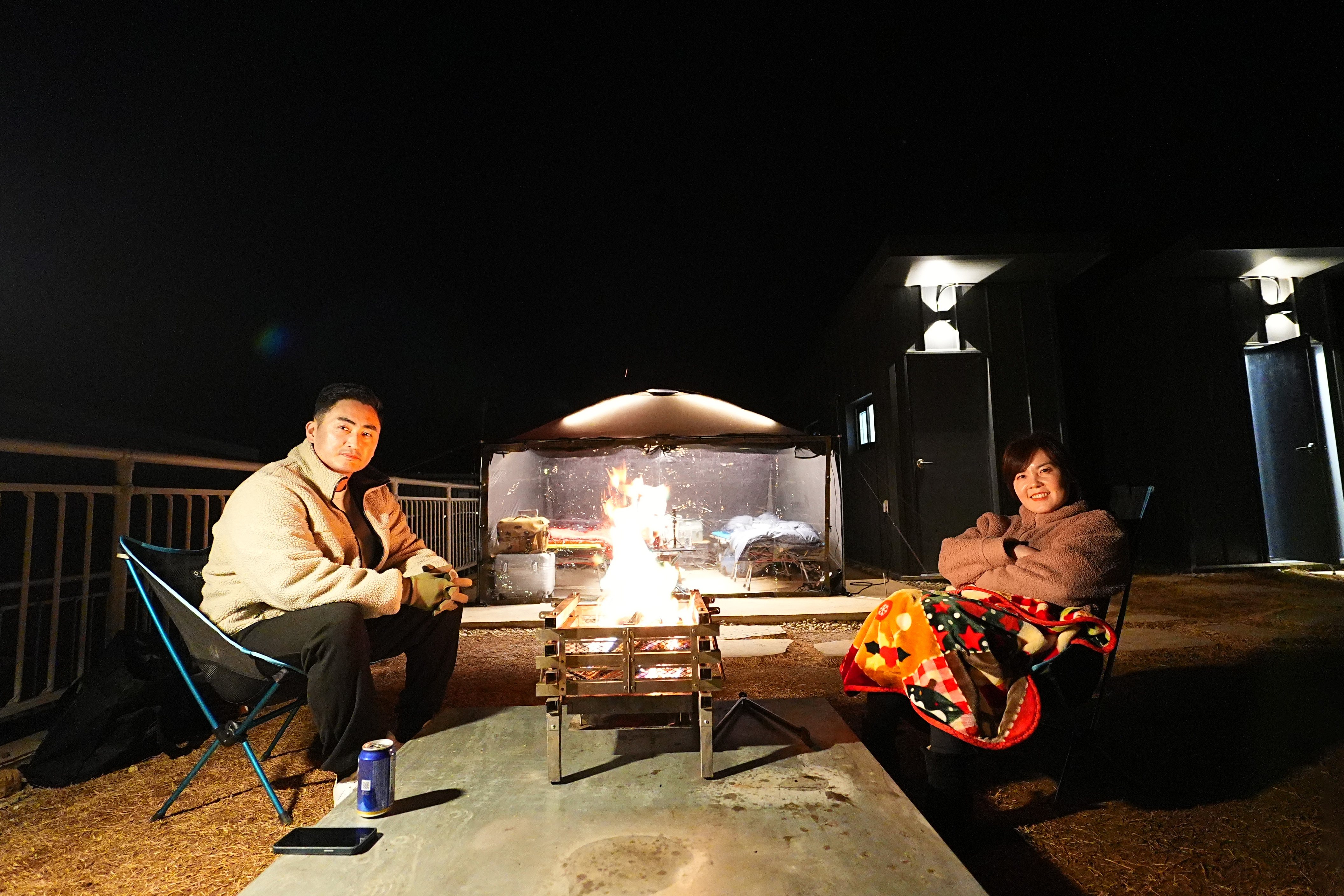 식사후 즐기는 불멍. 화로를 쓸수 있게 화로대 받침대가 사이트에 비치되어 있다.