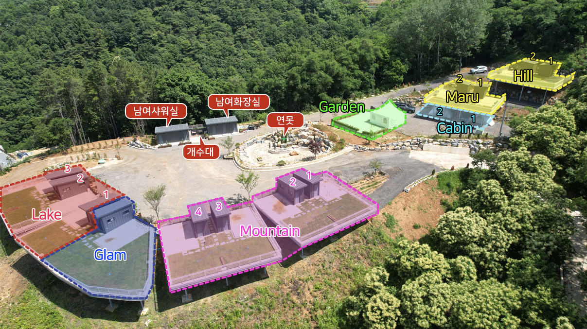 차량 4대가 있는 공간이 왼쪽부터 차례대로 Glam, Lake1, Lake2, Lake3 이다.