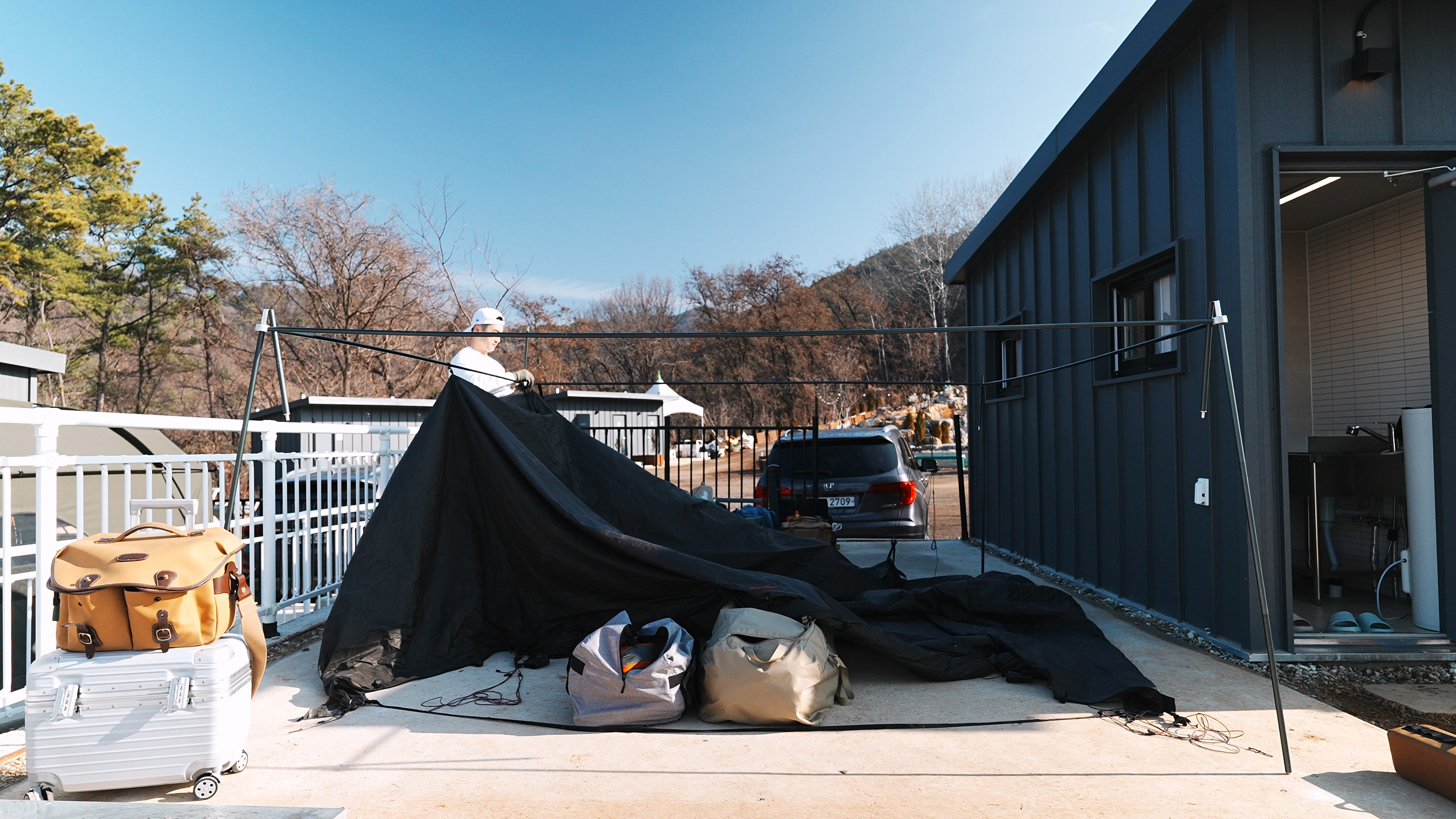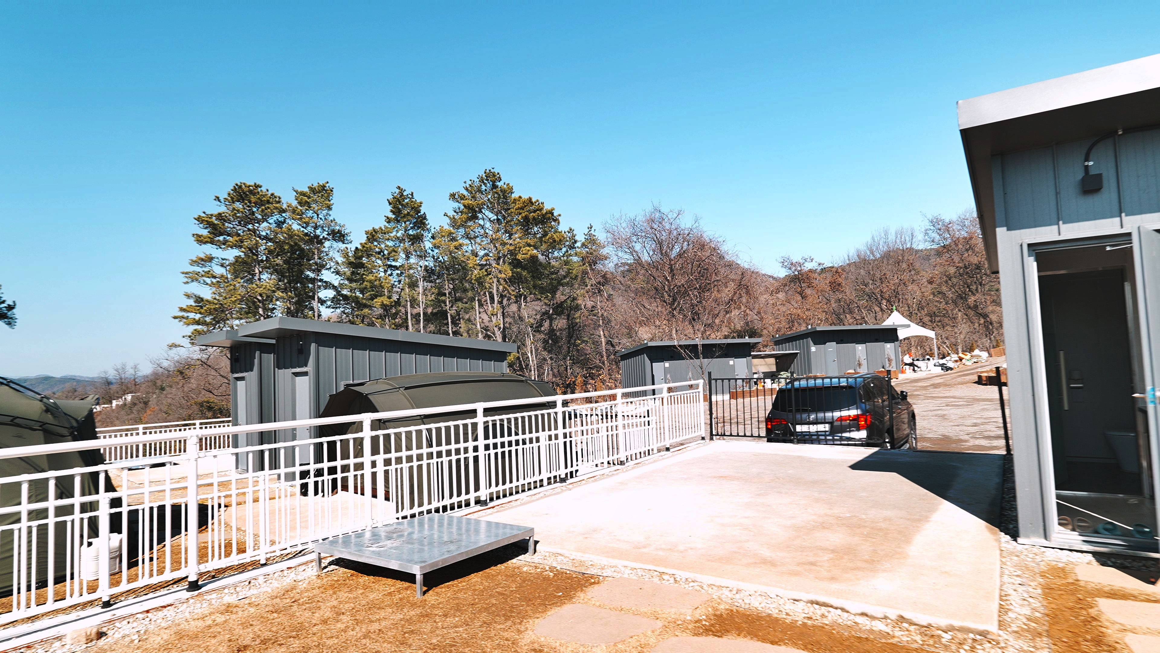 차는 사이트 바로 앞에 주차하고 들고 나를 필요 없이 사진에서 처럼 펜스가 뚤려있는 공간으로 옮기면 된다.