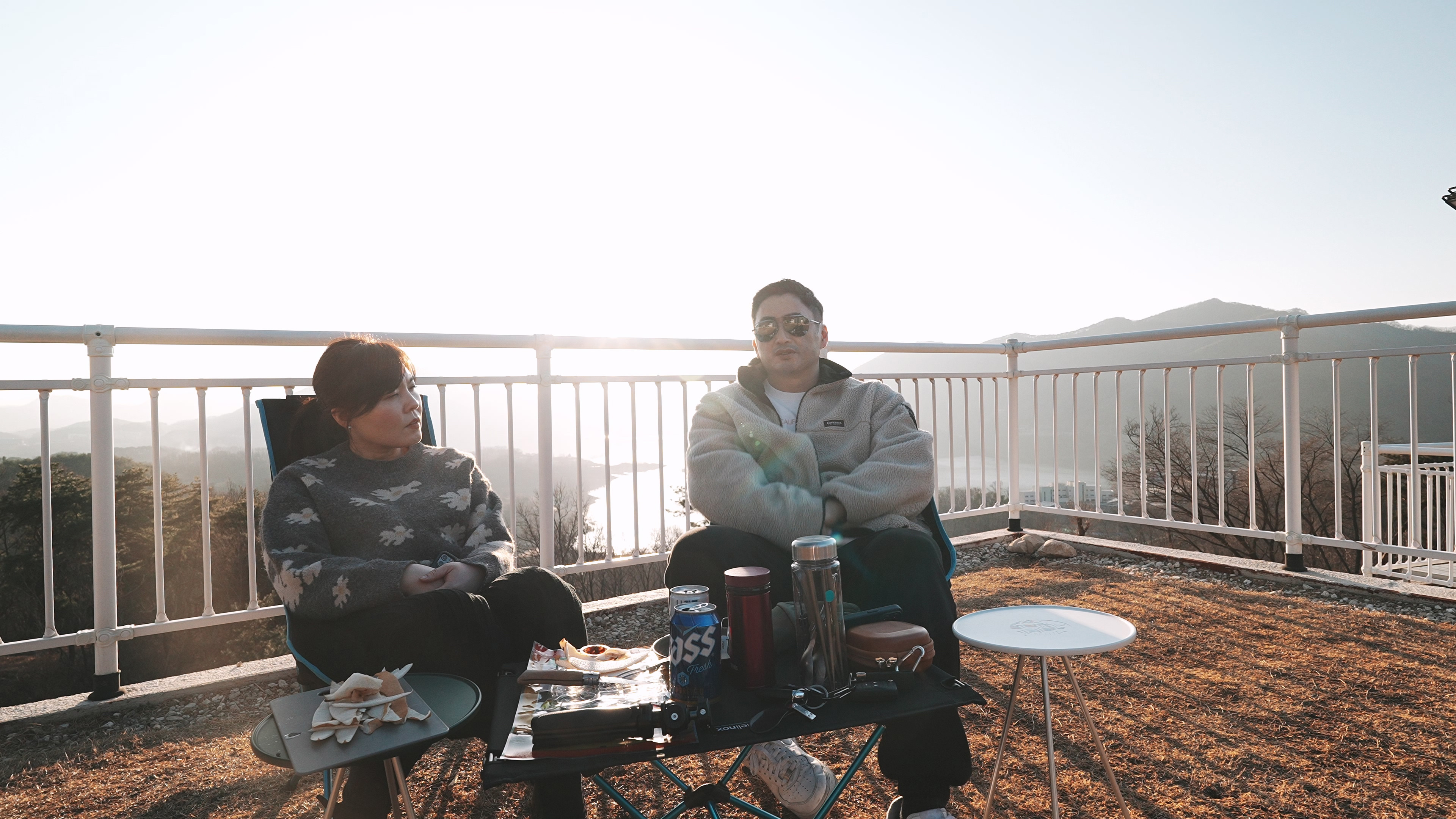 텐트에 결로가 생겨, 말리는 동안 좋은 경치와 함께 커피 한잔