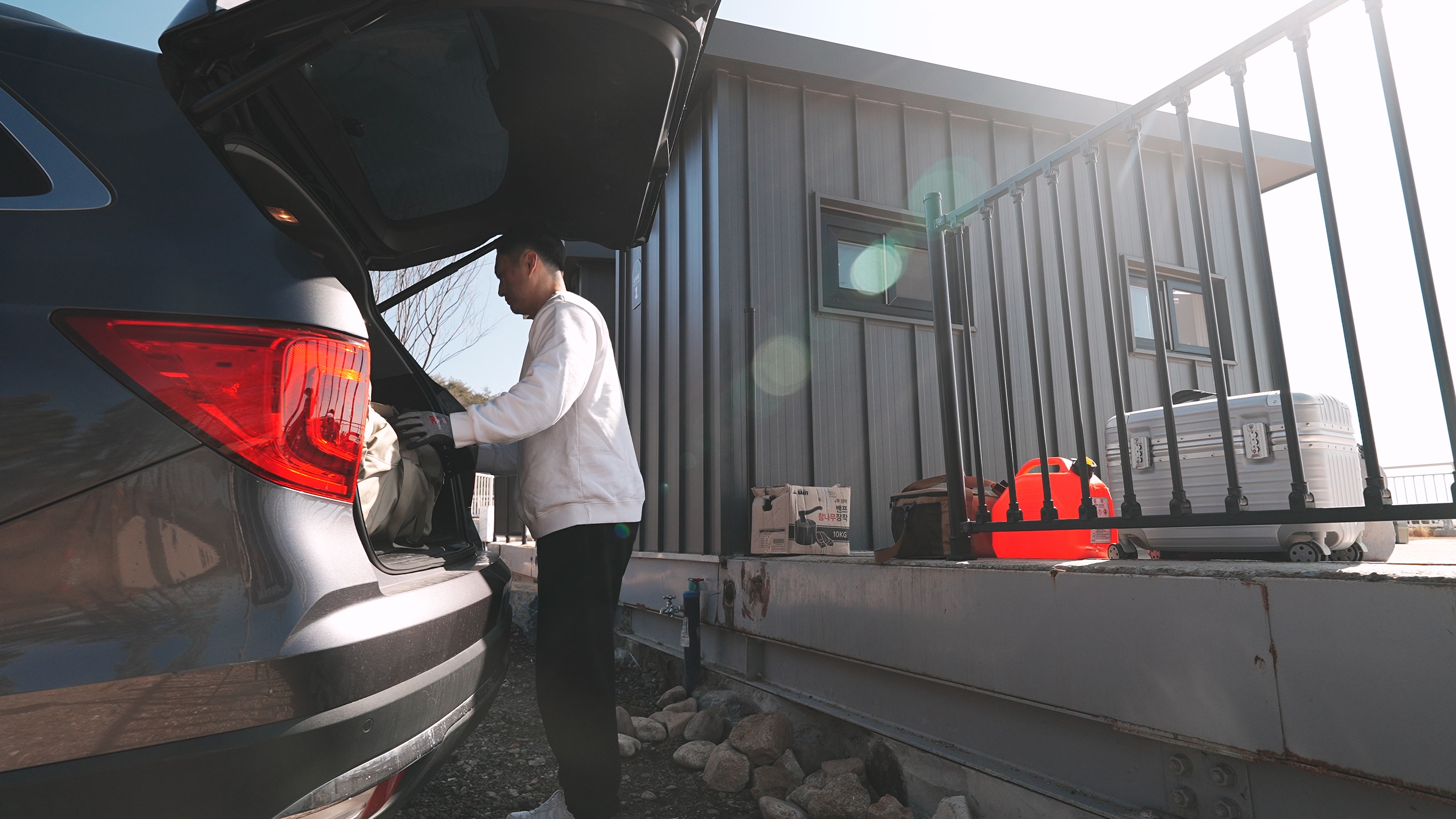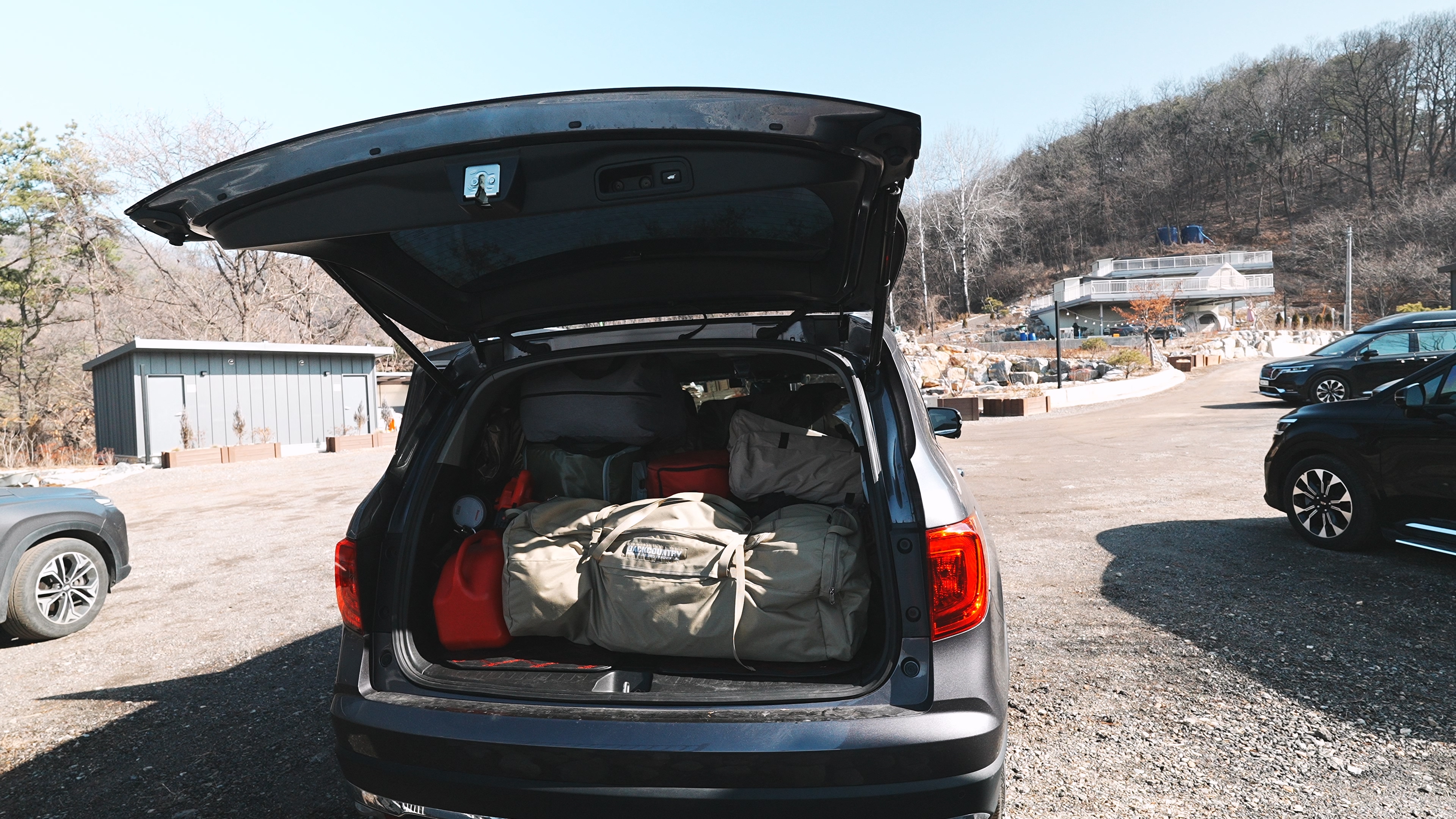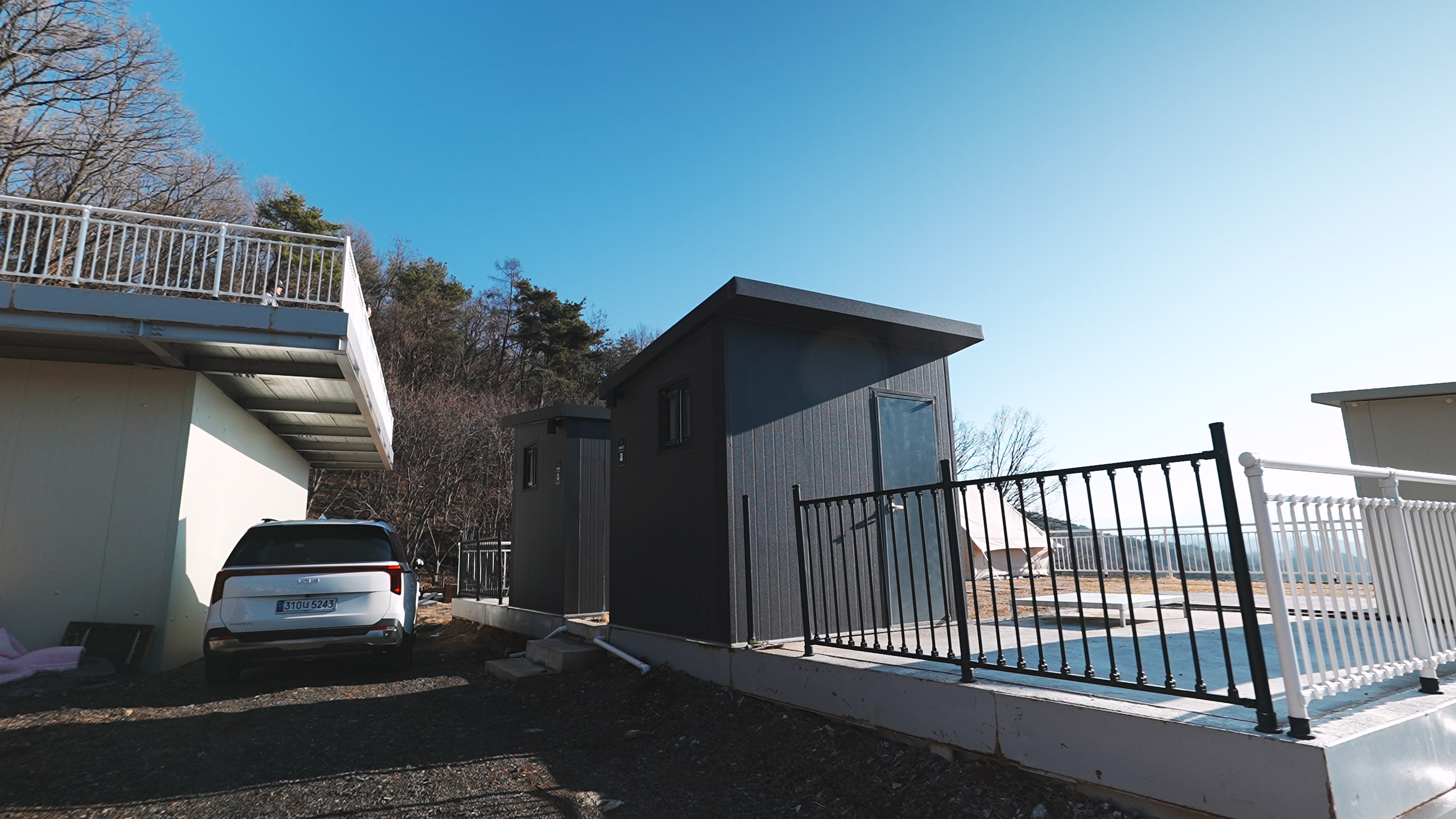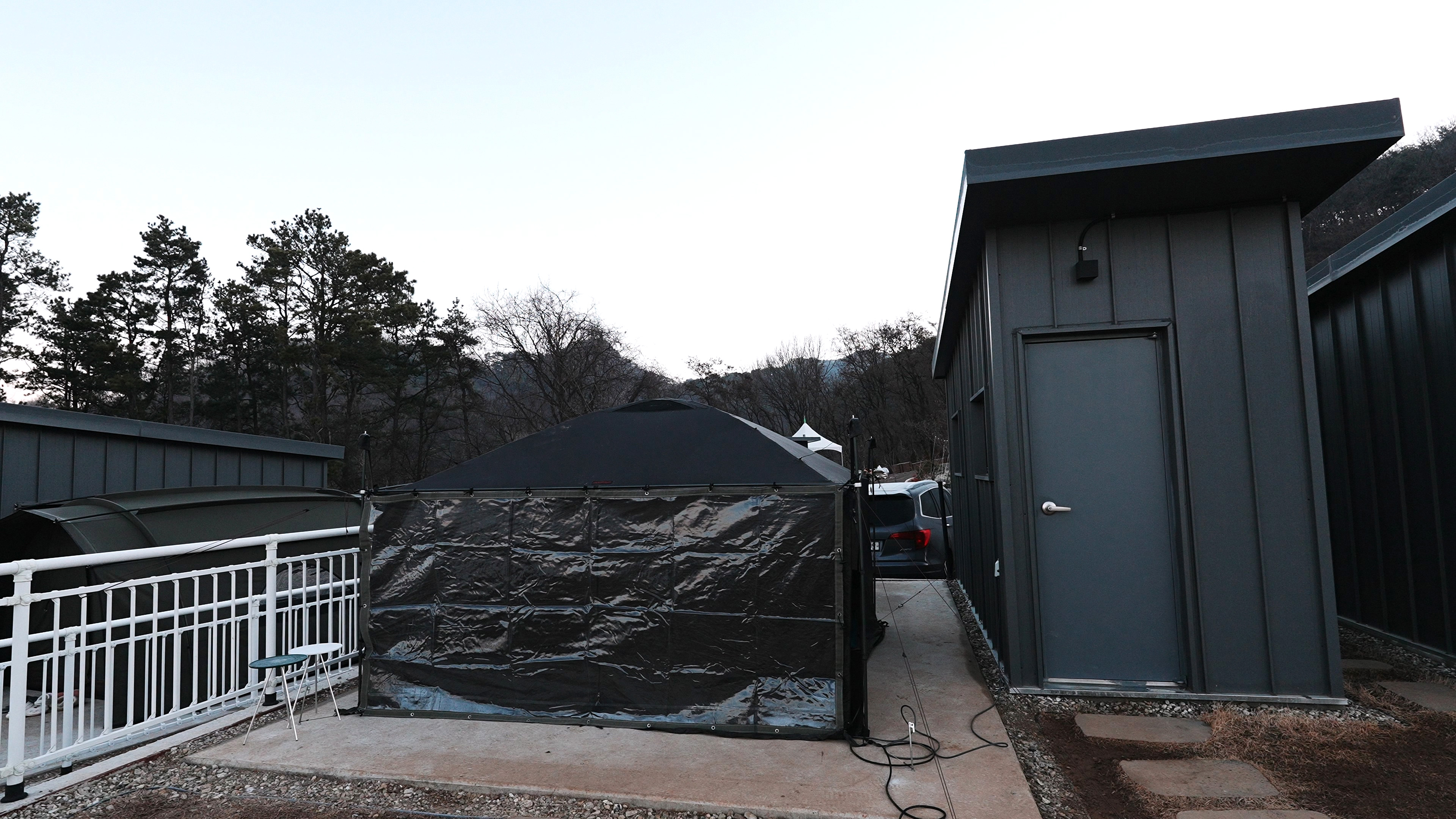 차는 사이트 바로 앞에 주차하고 들고 나를 필요 없이 사진에서 처럼 펜스가 뚤려있는 공간으로 옮기면 된다.