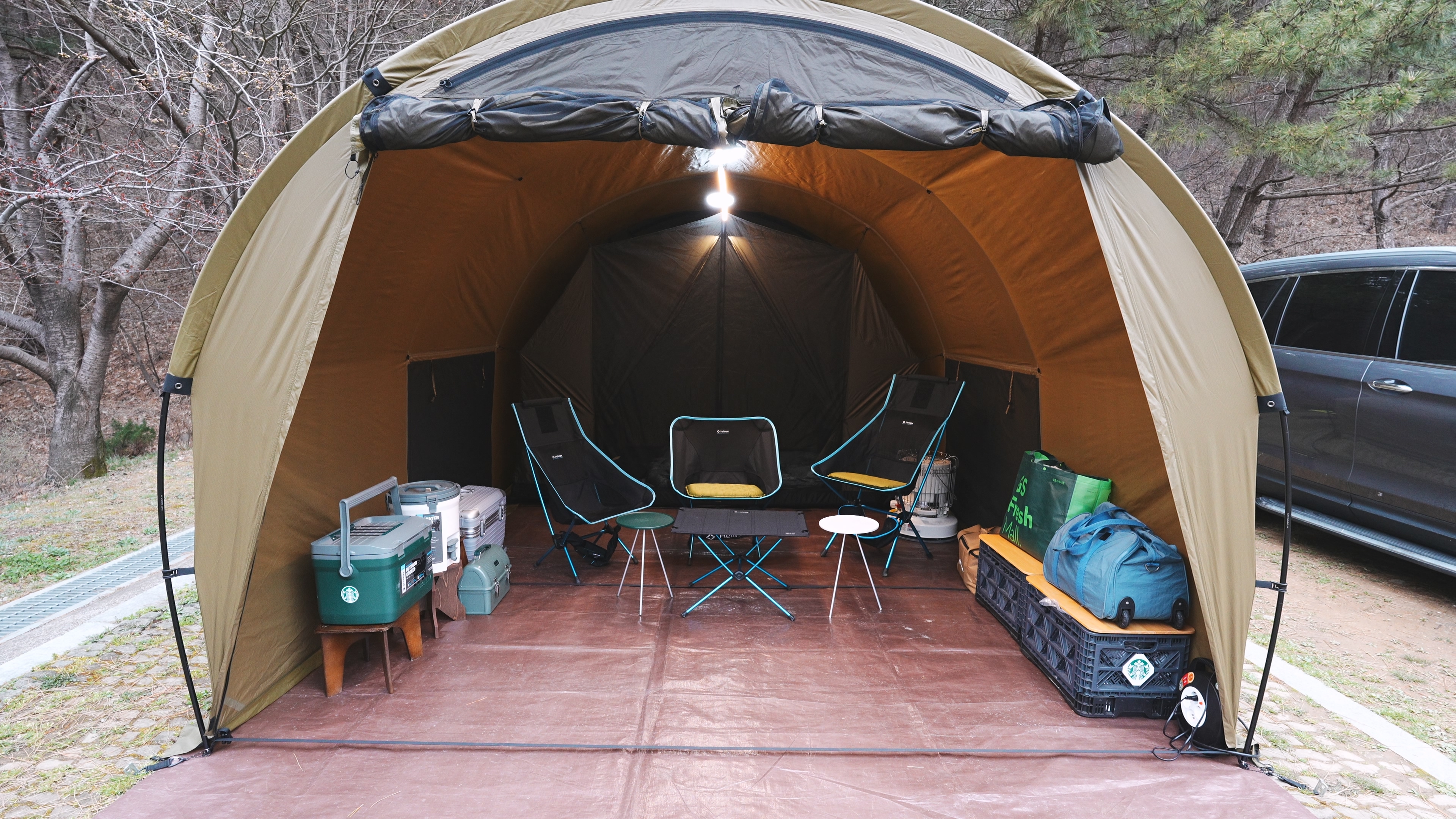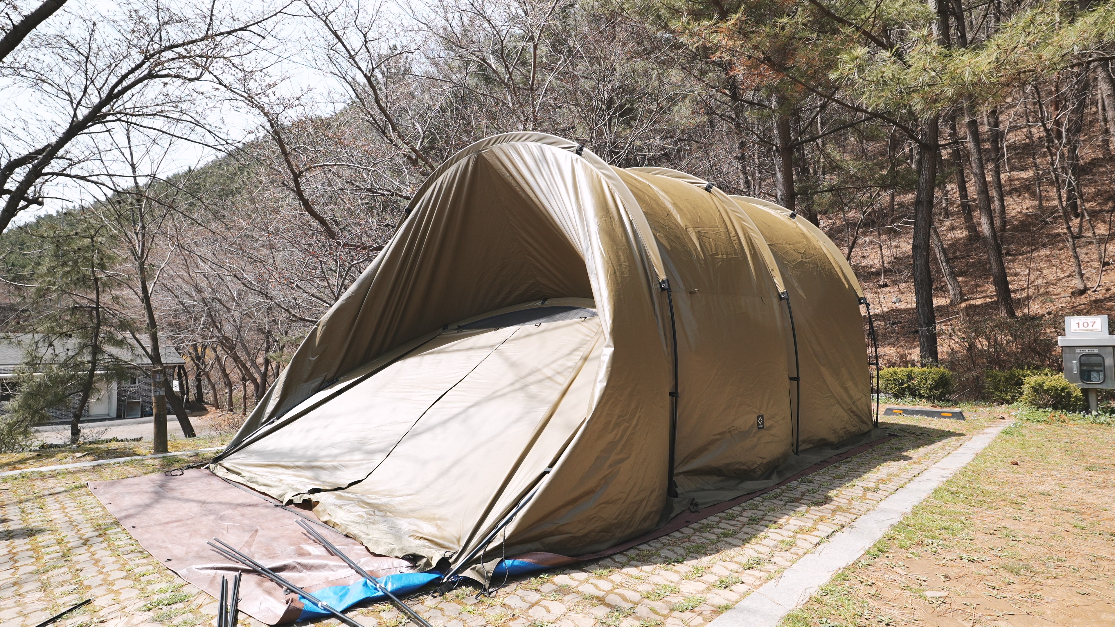 오늘 처음으로 개시하는 헬리녹스 터널 텐트. 거금 400만원을 들여서 장만하였다. 가지고 있는 텐트중에서 가장 큰 텐트이다.