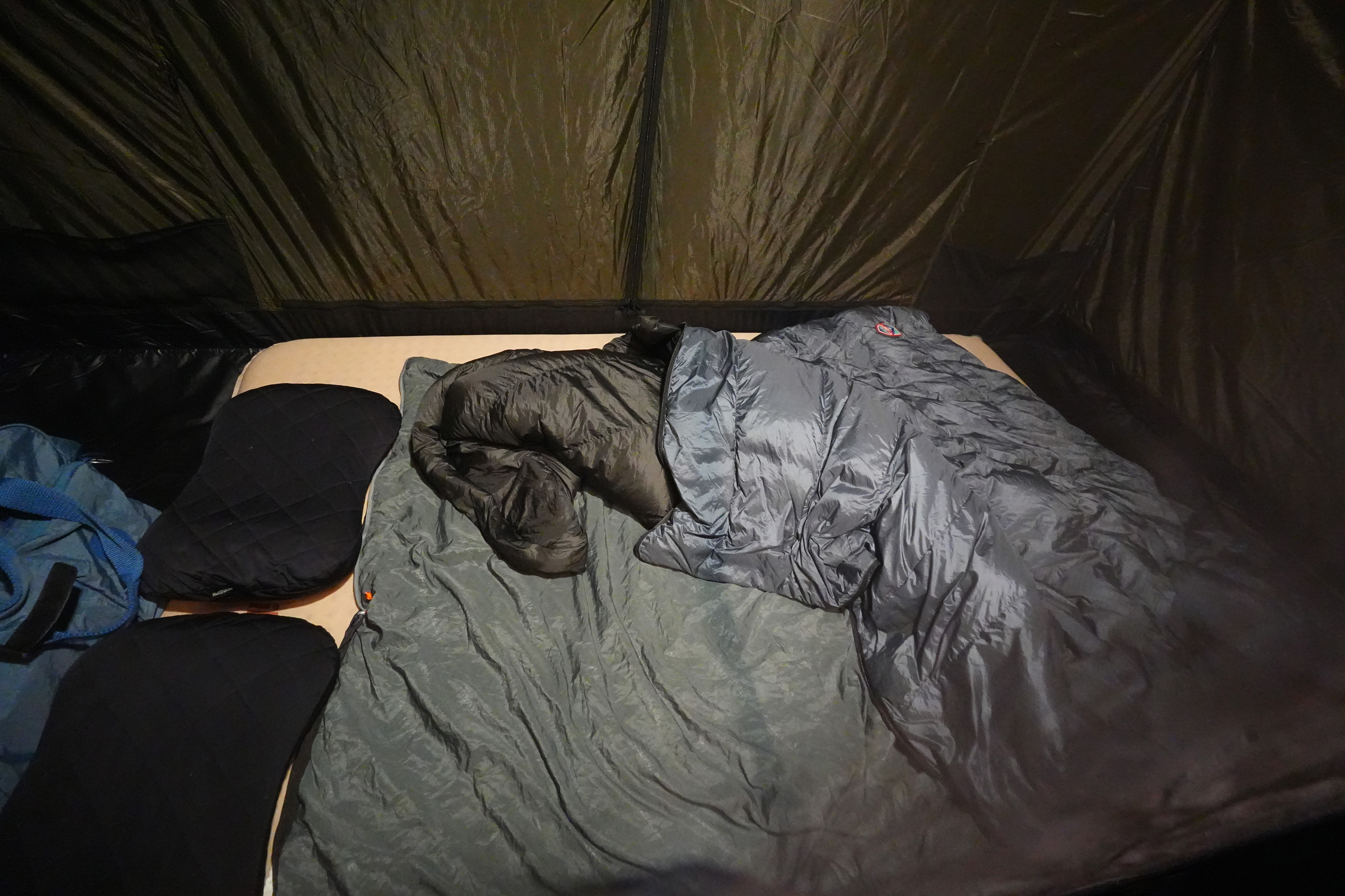 이너텐트 안. 성인 3명이 자기엔 좀 좁고, 2인이 자기에 딱 좋다.