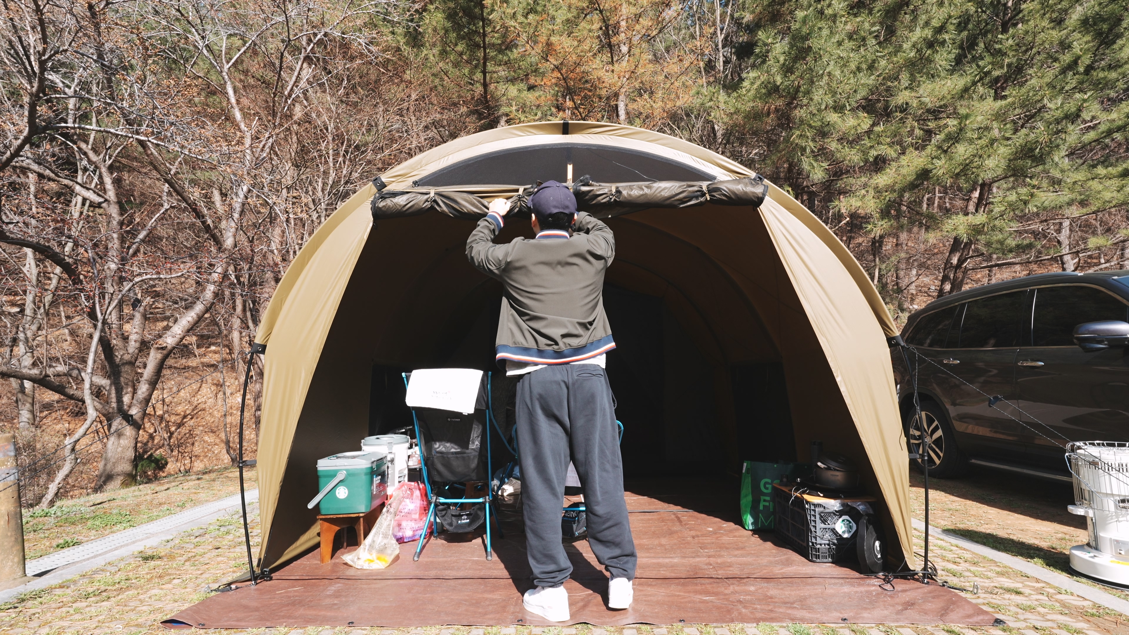 쉘터와 고리를 거는 것으로 설치가 되는 이너텐트라, 설치가 1-2분이면 된다.