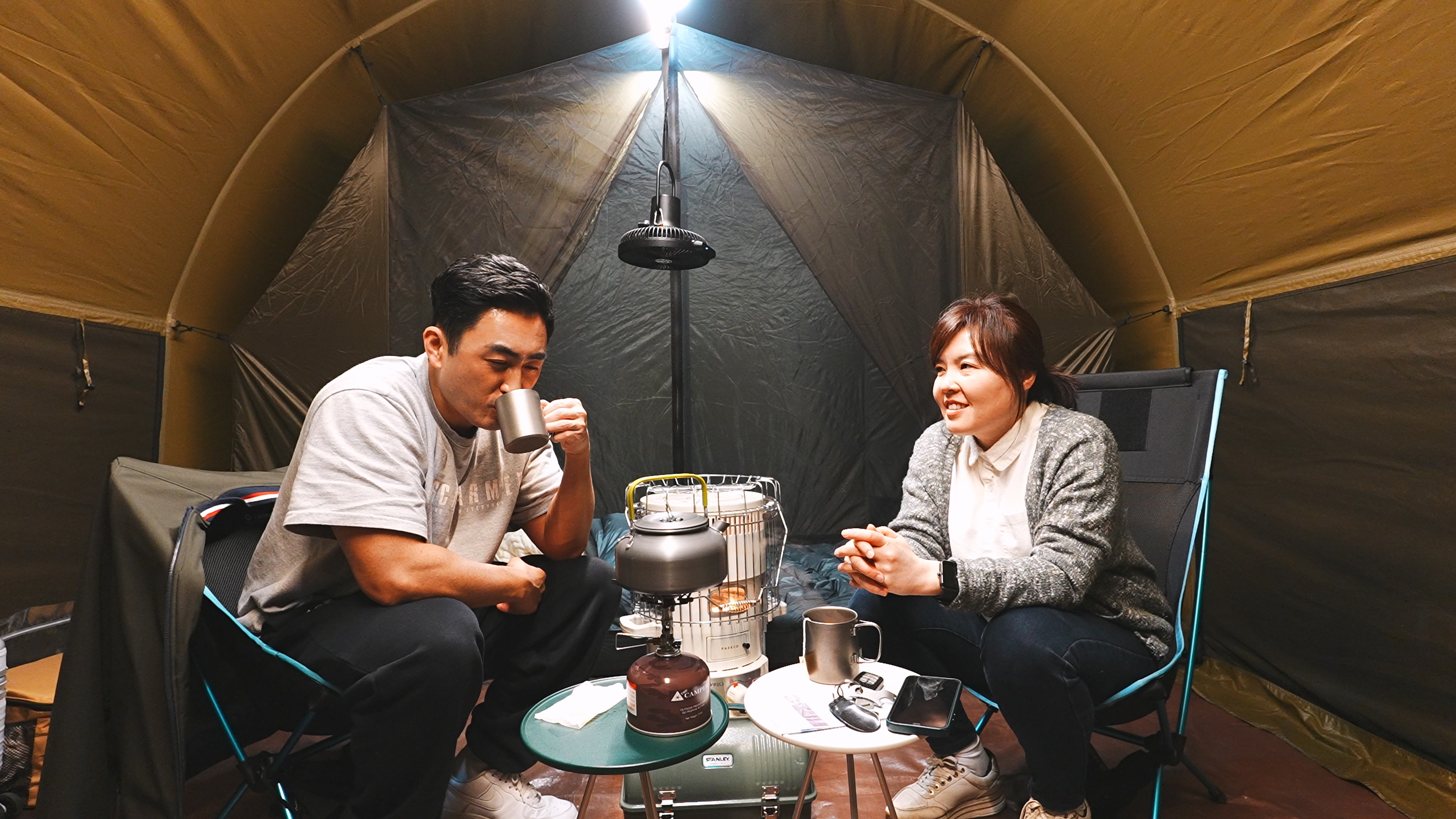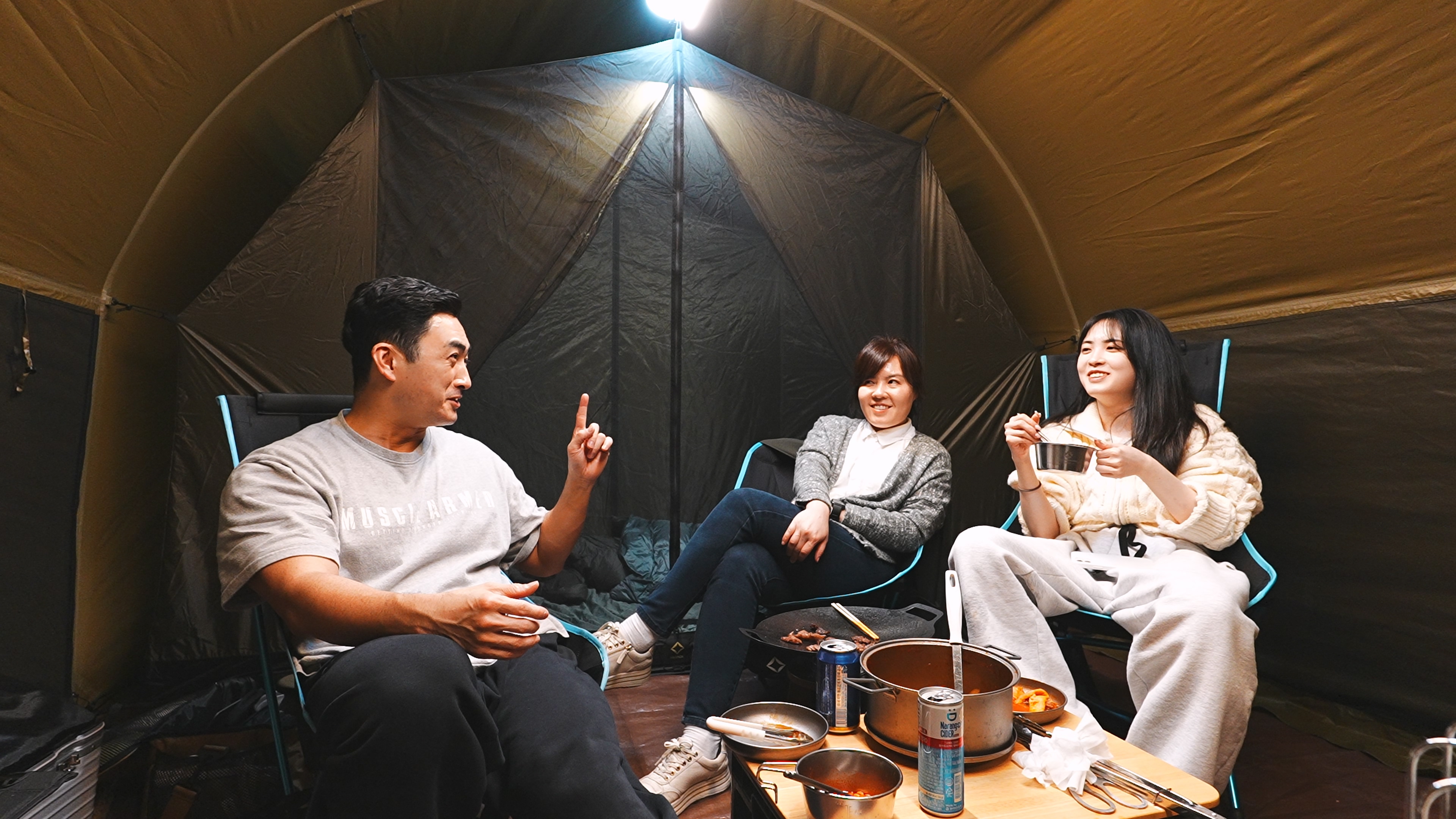 딸의 한 달동안의 대학생활 얘기도 듣고, 지방살이 하면서 겪는 여러가지 고충도 들으면서 캠핑 첫날을 보낸다.