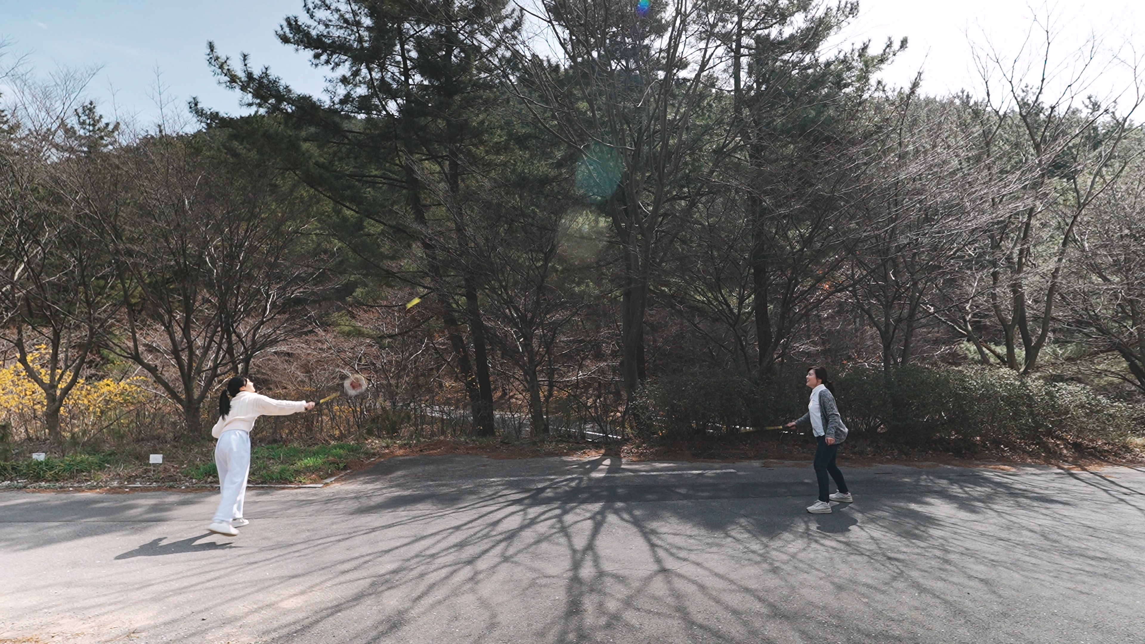 딸와 와이프는 가져온 배드민턴을 치는 사이에 텐트 설치를 시작한다.