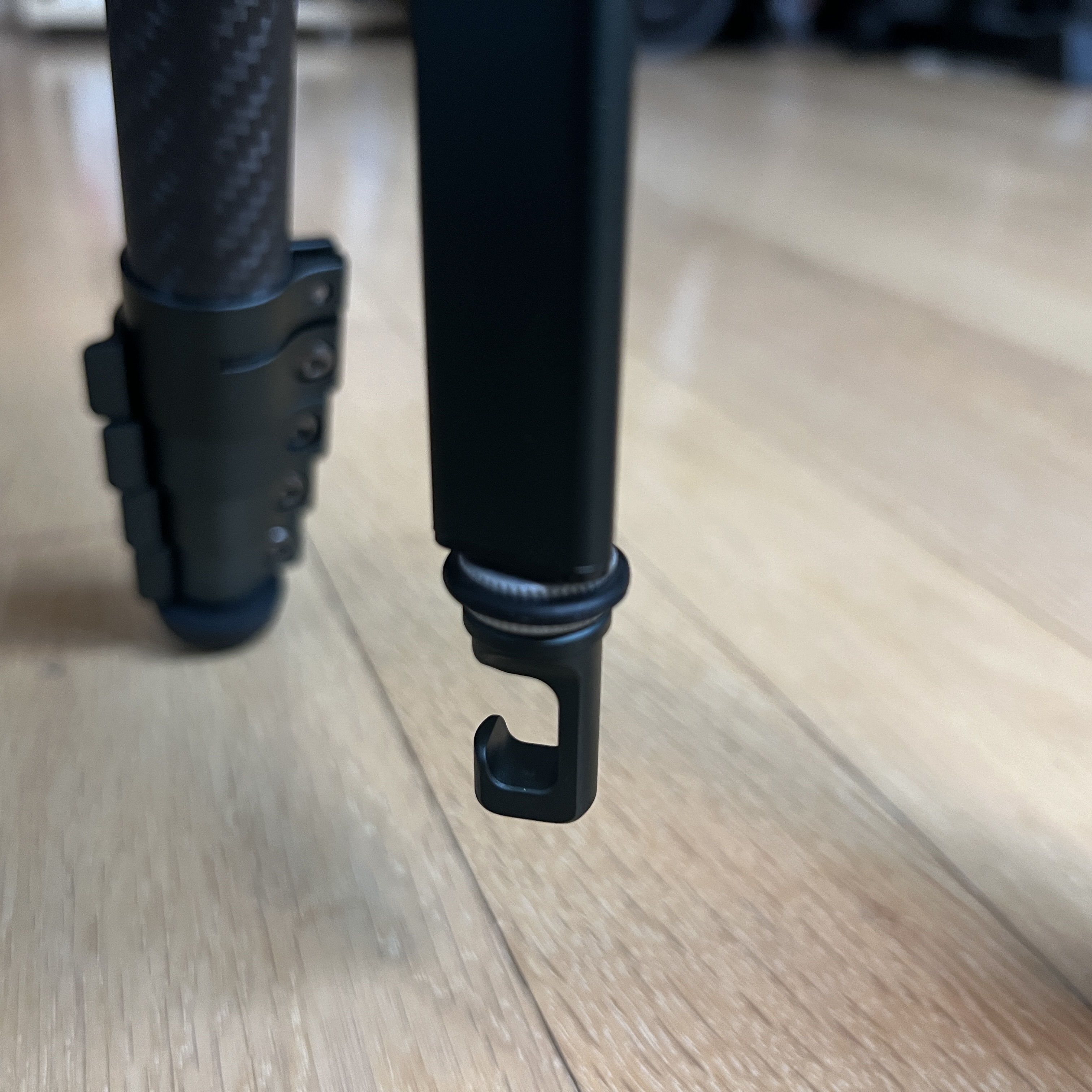 센터폴 하단의 고리. 물건을 걸어둘 수 있는 고리로서, 돌려 풀면 렌치가 있어 해당 렌치로 삼각대 유격을 조절할 수 있다.