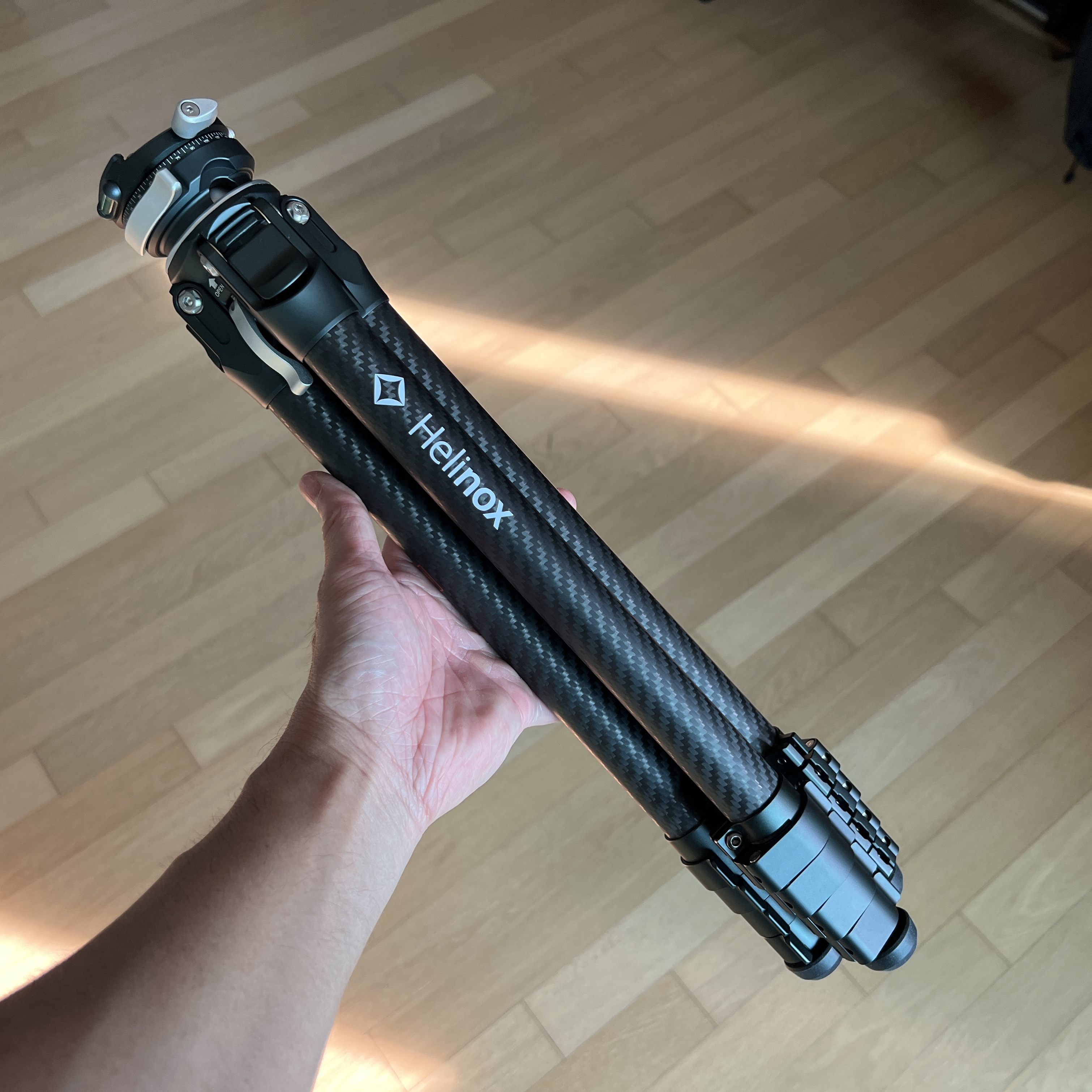벤로 사이언버드(알루미늄모델) 삼각대와의 비교. 스펙상 코만제로 F38 이 42.5cm, 사이언버드(알루) 모델이 43.5cm 라서 1cm 차이인데, 사이언버드는 F38 플레이트를 장착해서 그런지 실측은 더 차이가 나 보인다.