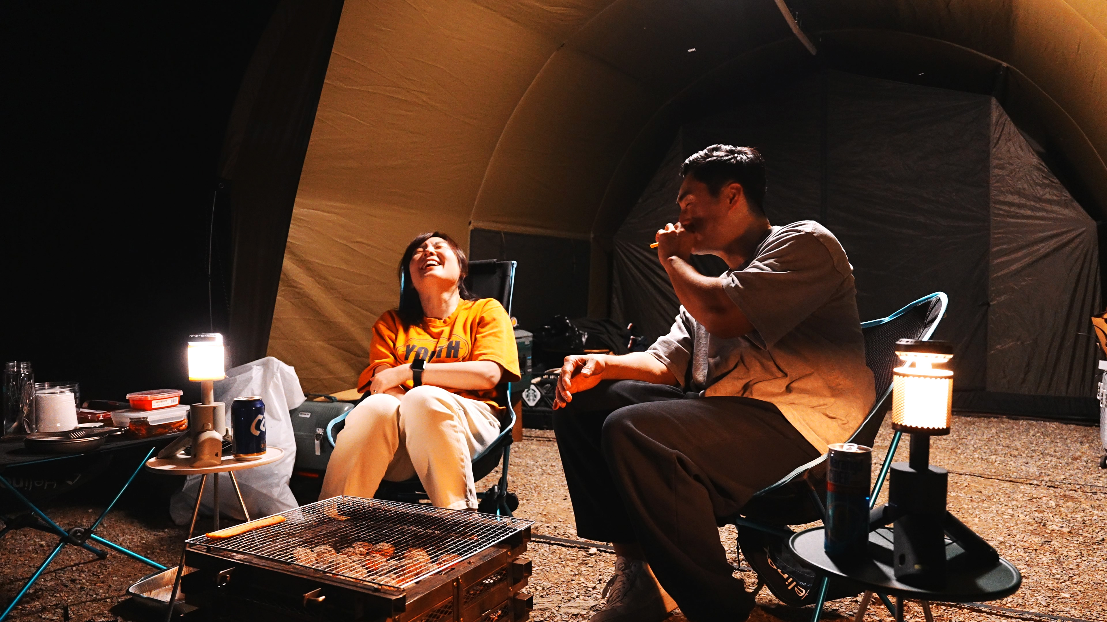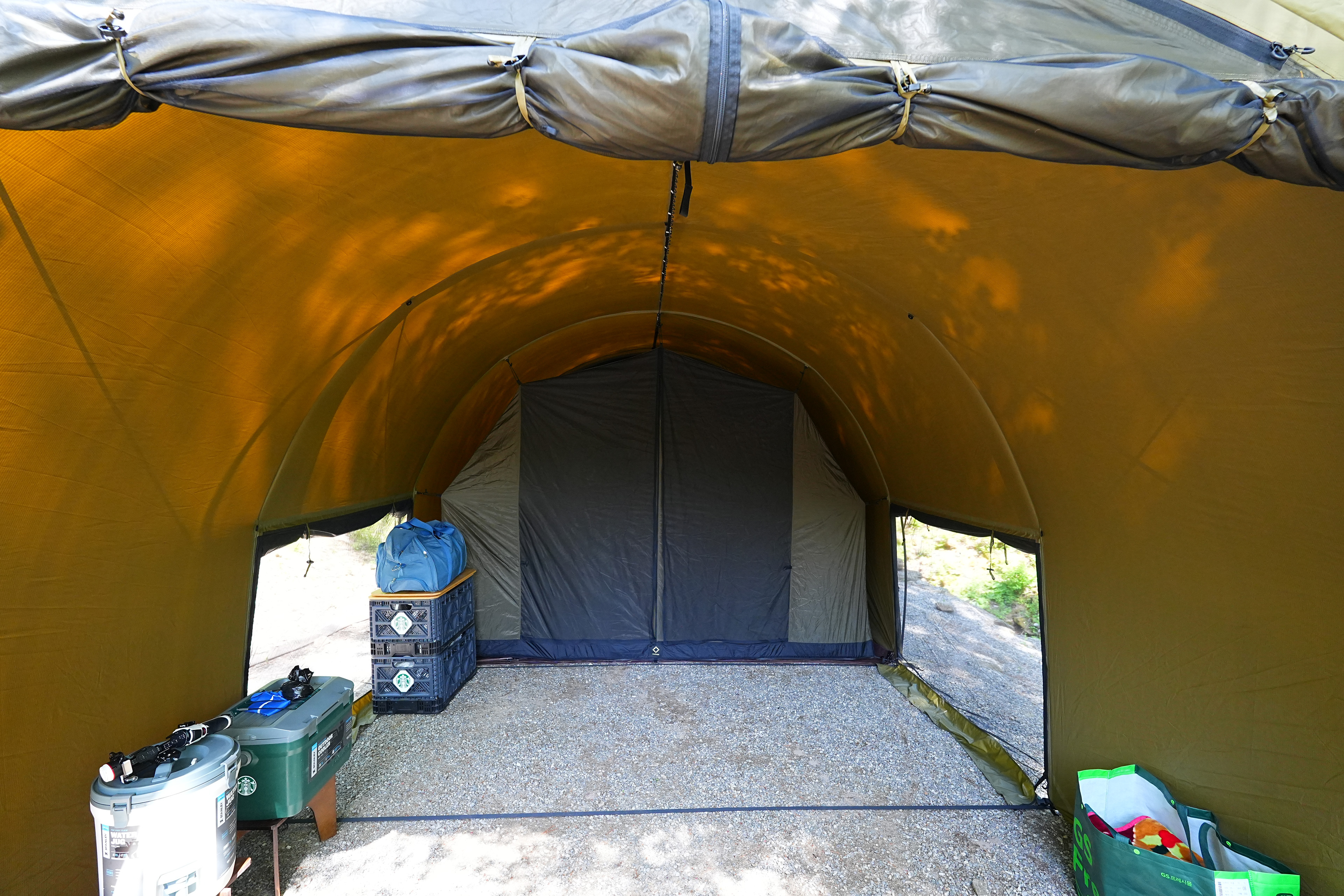 2P 이너텐트 설치한 뒤 모습. 이너텐트 공간을 제외하면 약 3M * 3M의 공간이 나와서 2인 캠핑하기 딱 좋은 공간이다.