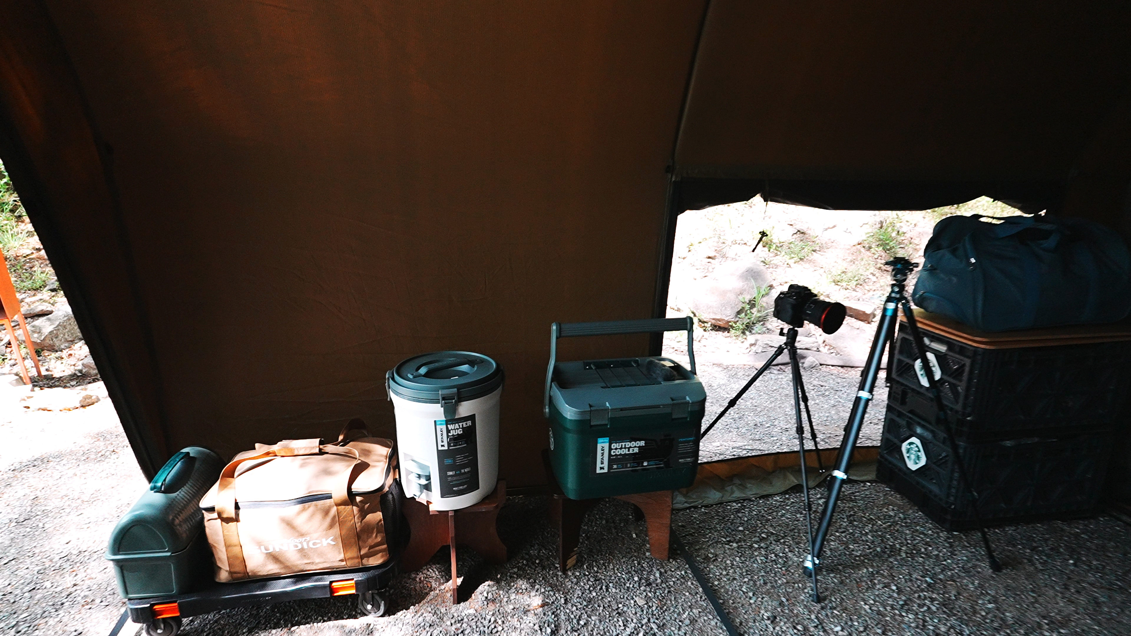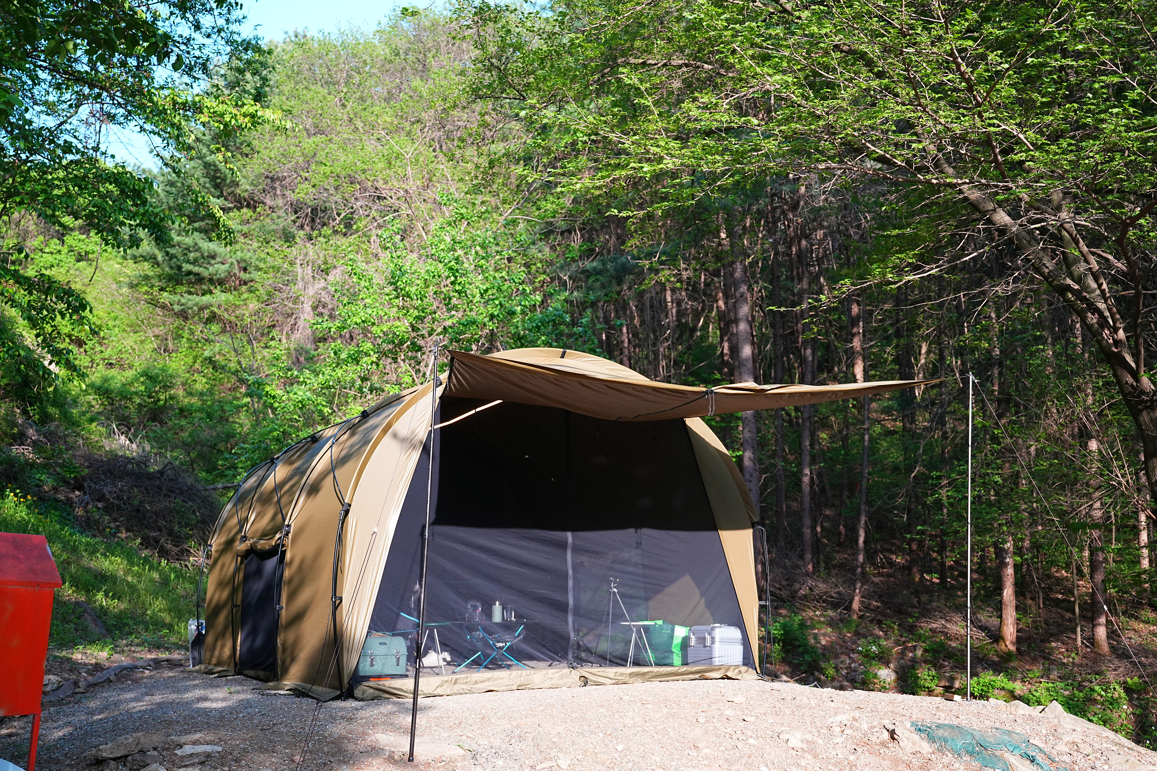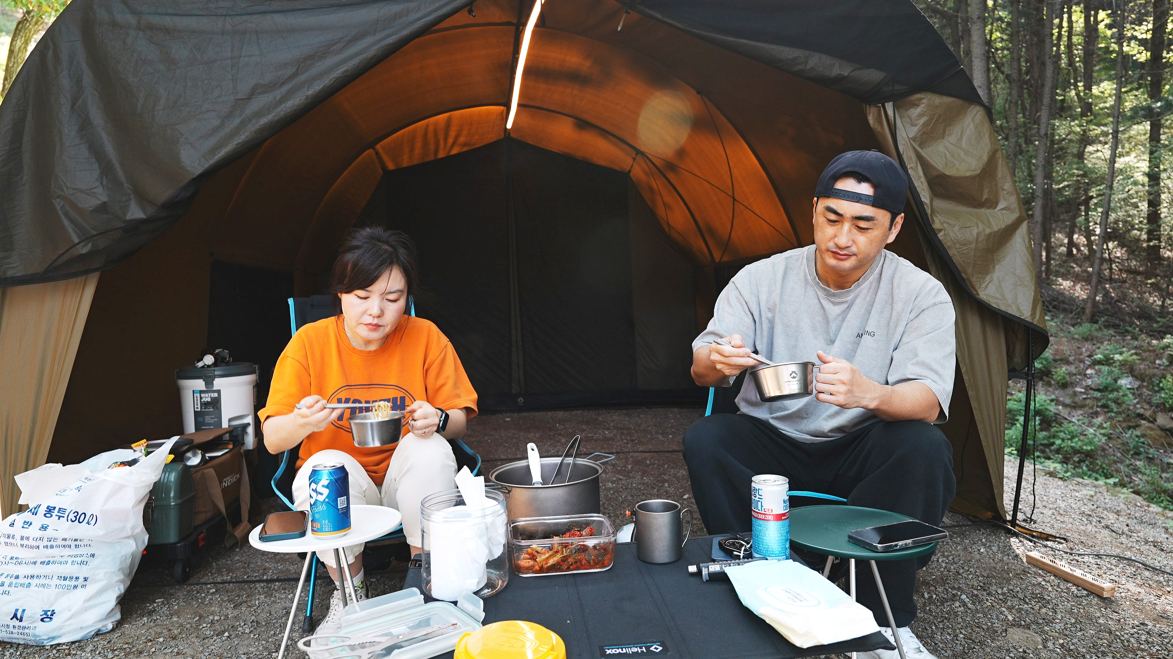 여기에 식기수납가방, 워터저그, 쿨러, 캠핑박스 2개, 옷 가방 정도면 캠핑장비 세팅 끝