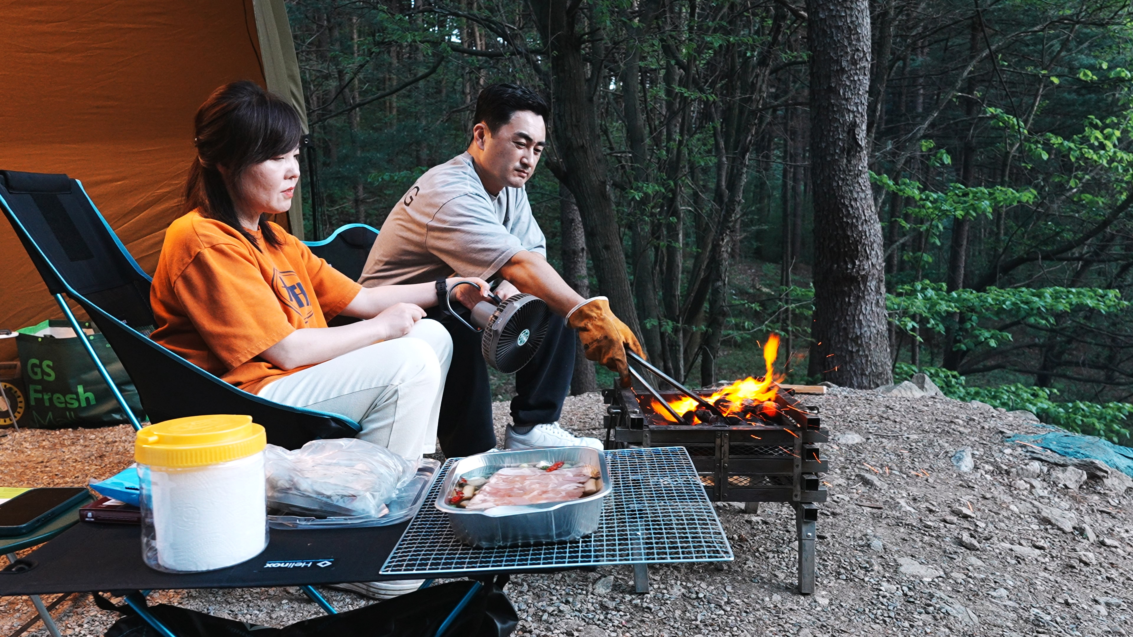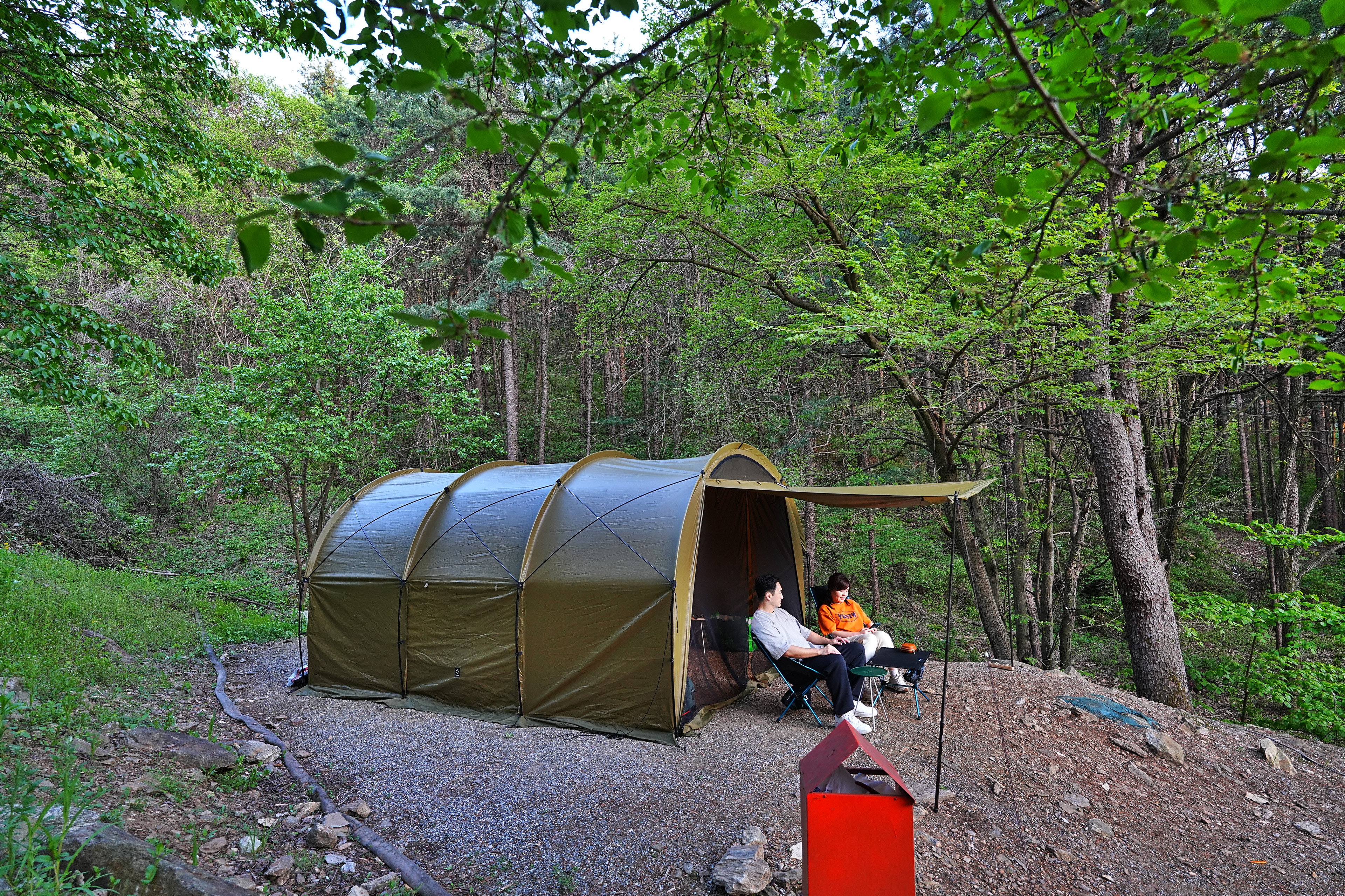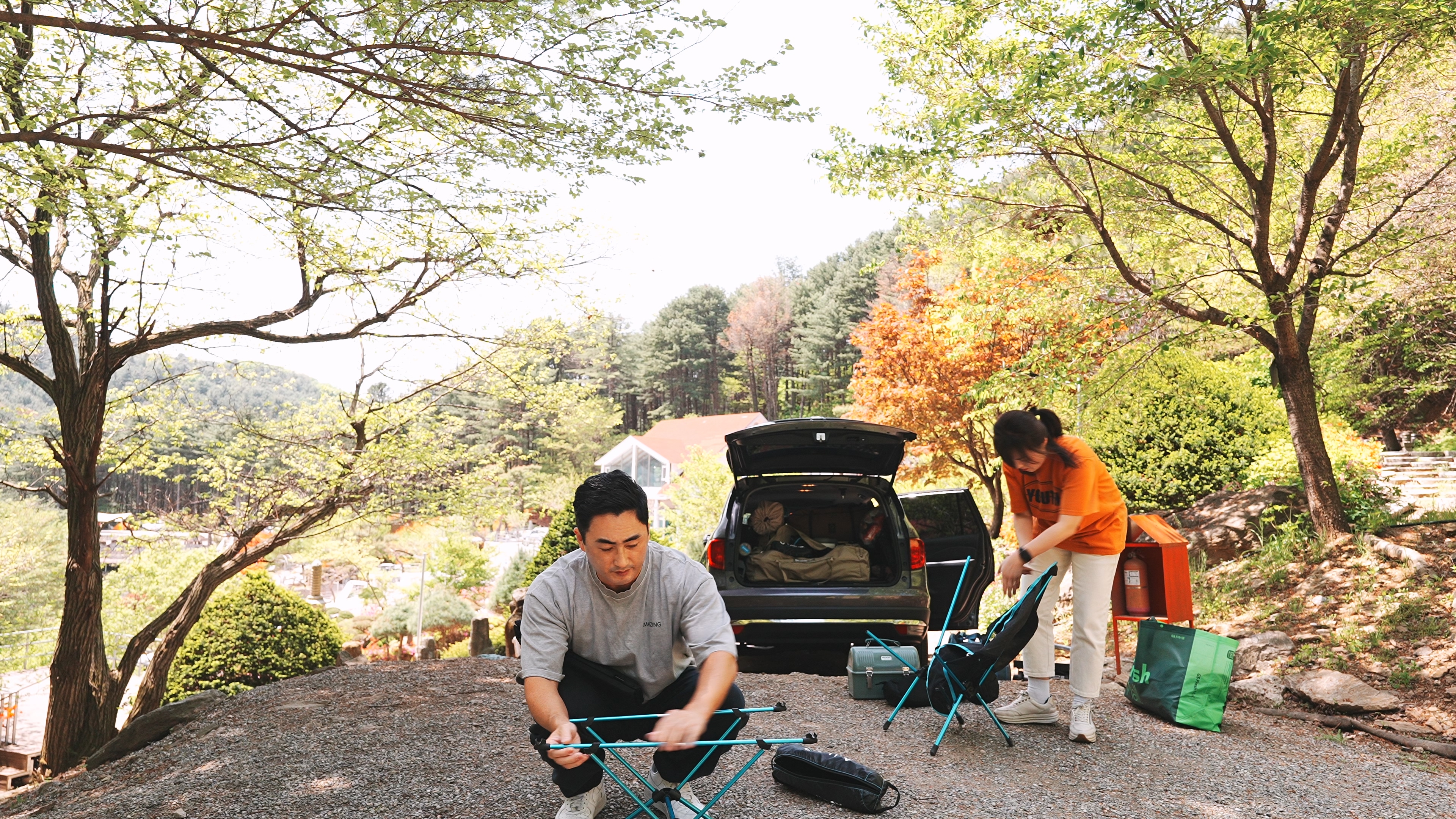 여기에 식기수납가방, 워터저그, 쿨러, 캠핑박스 2개, 옷 가방 정도면 캠핑장비 세팅 끝
