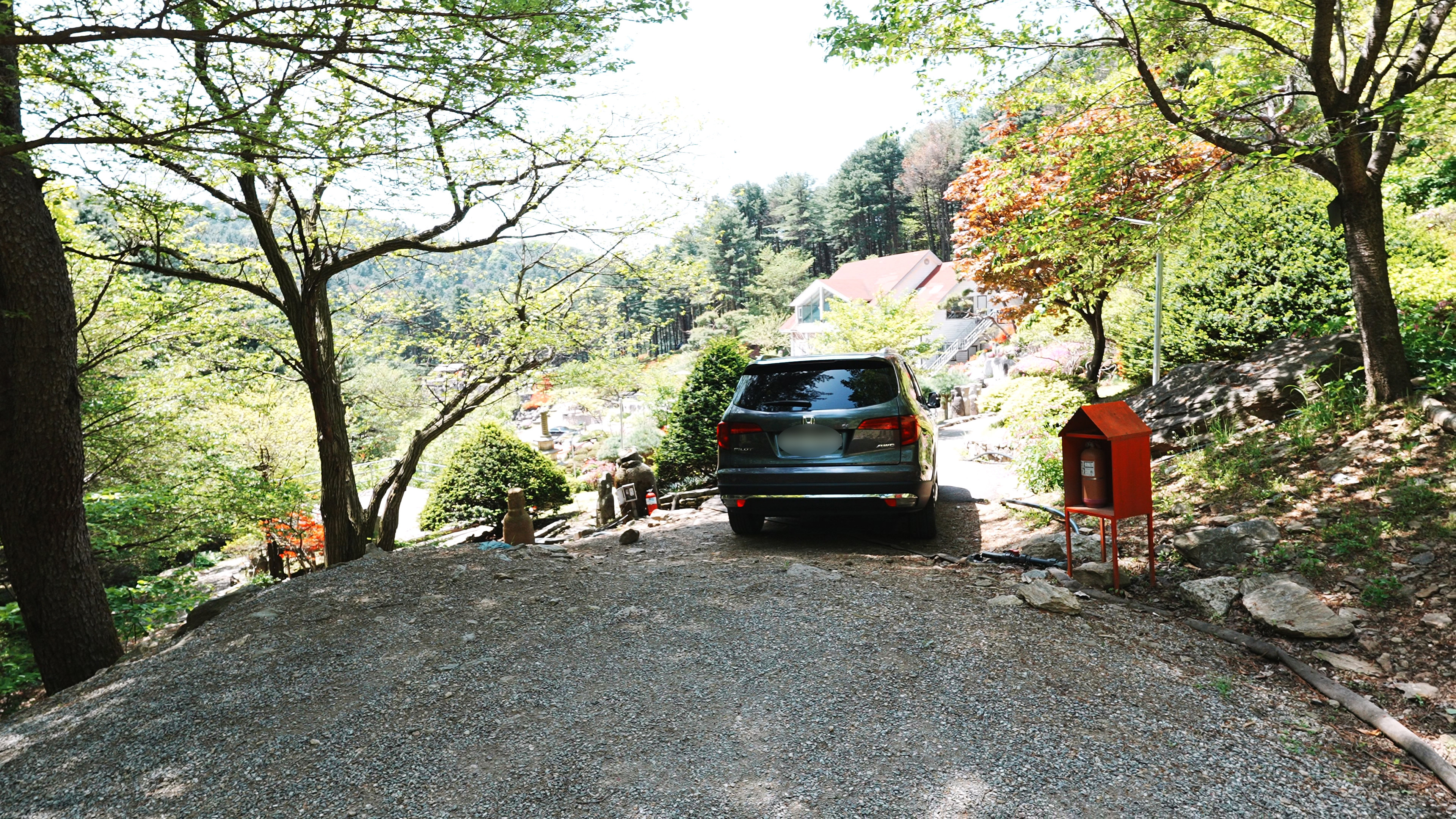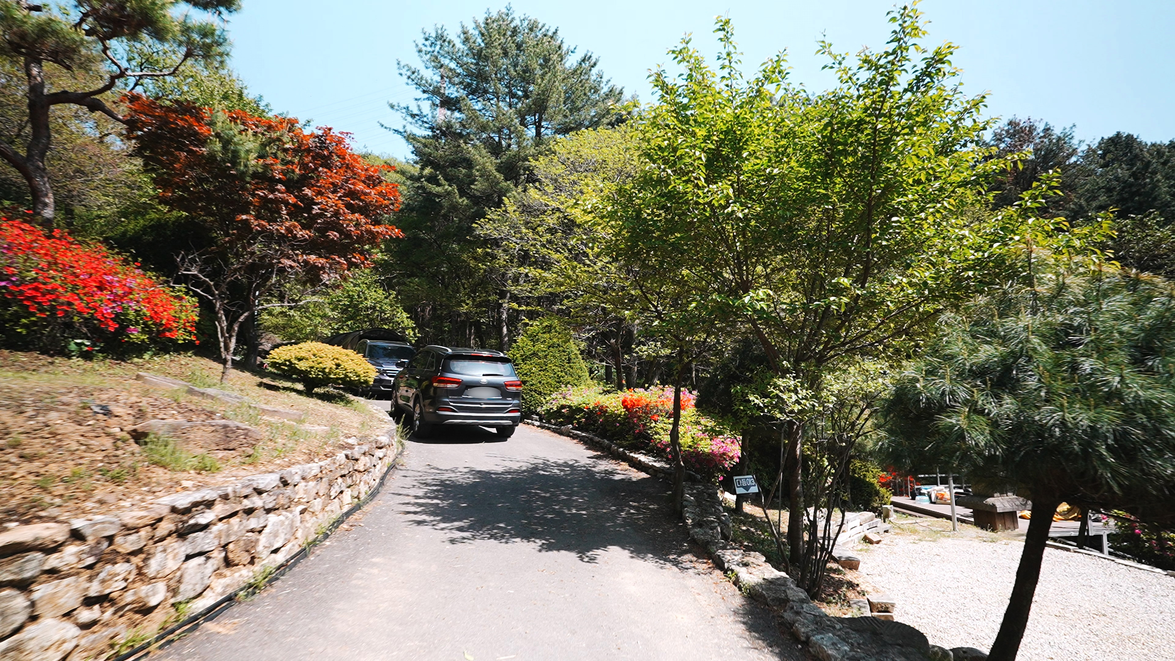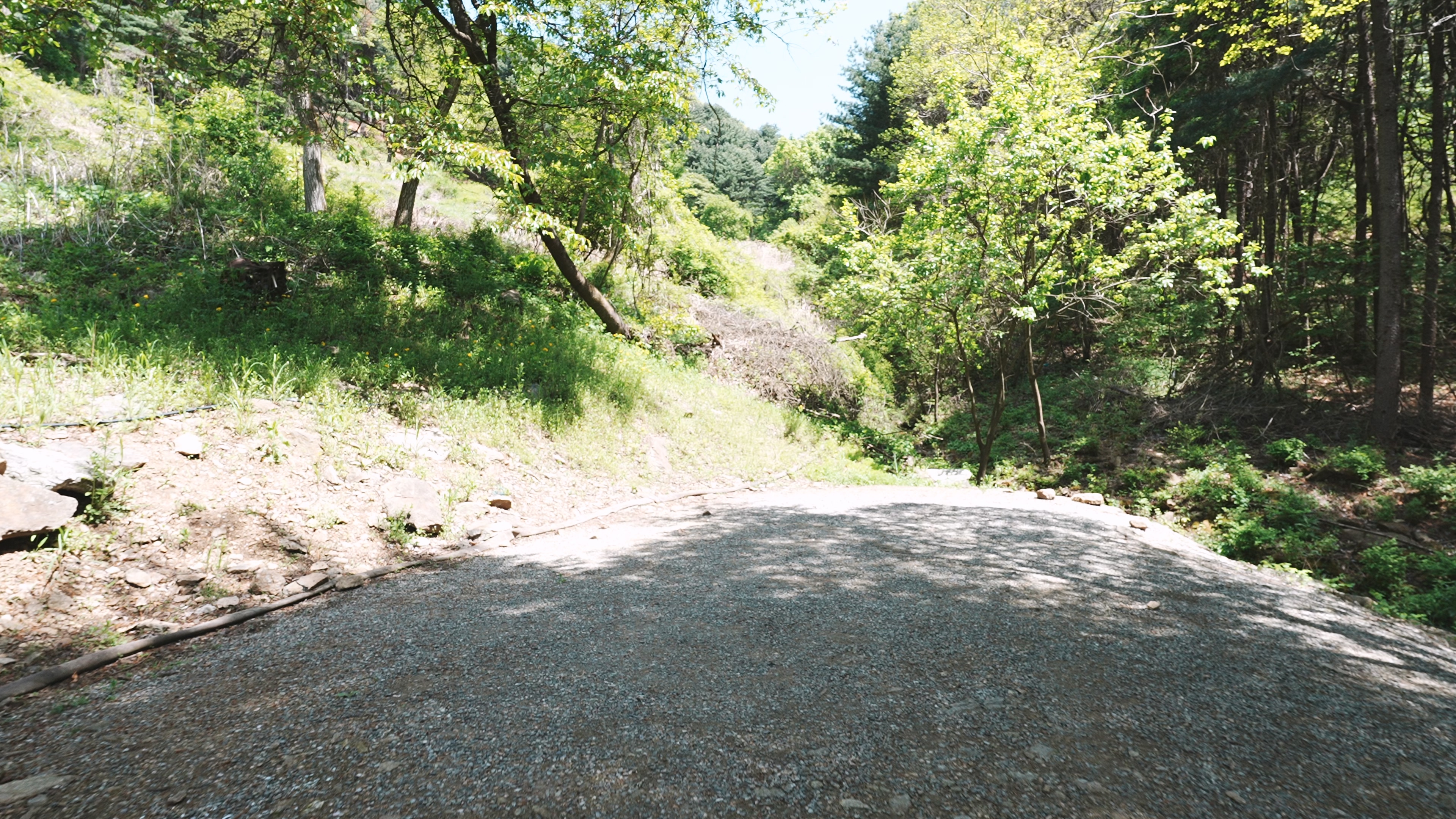 39번 사이트로 올라오는 진입로. 차 한대가 겨우 들어올 수 있는 길인데, 왼쪽 사이트의 차량이 이 곳에 주차할 수 도 있어서 이 경우 차를 뺄 때 불편할 수도 있을 듯 하다.