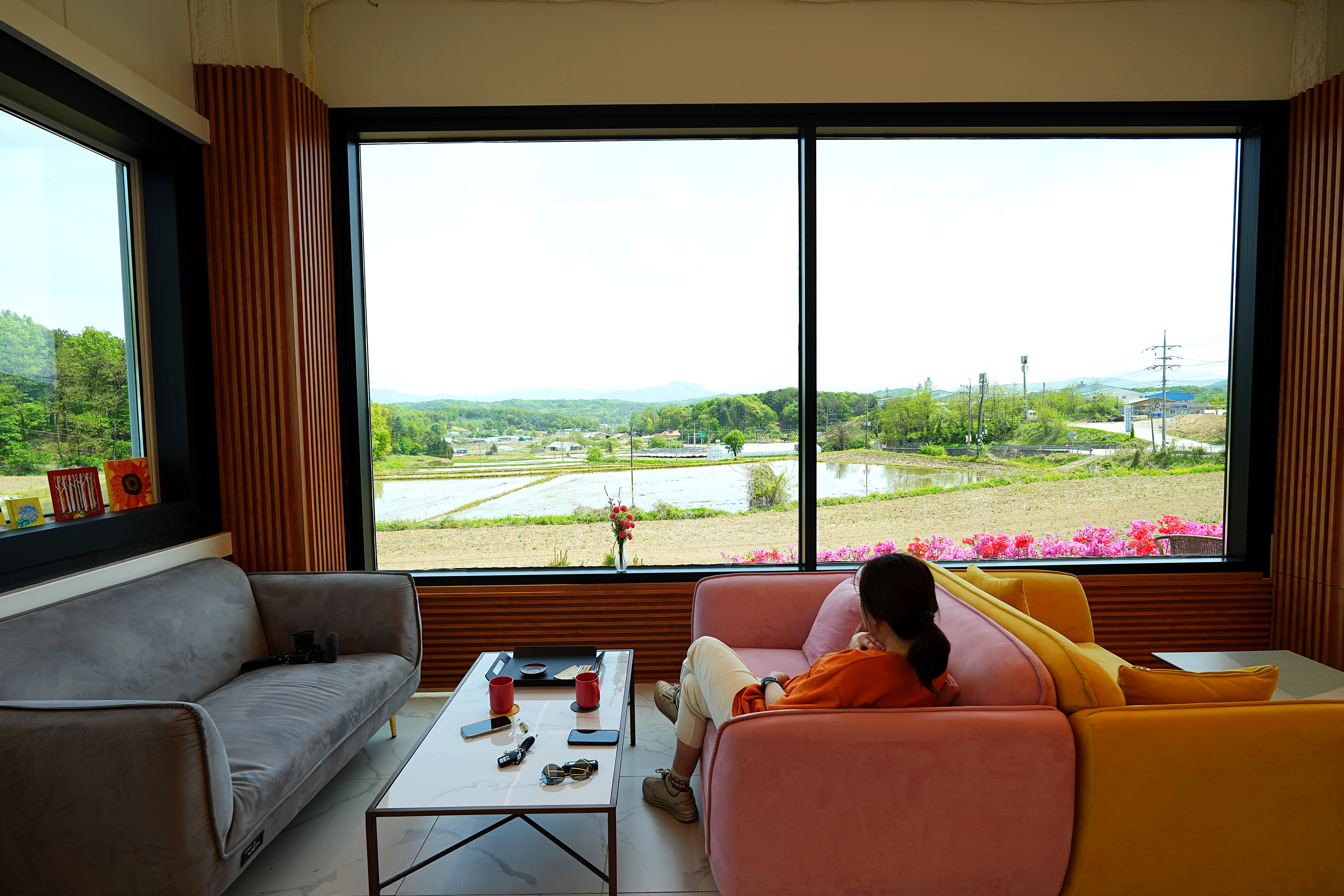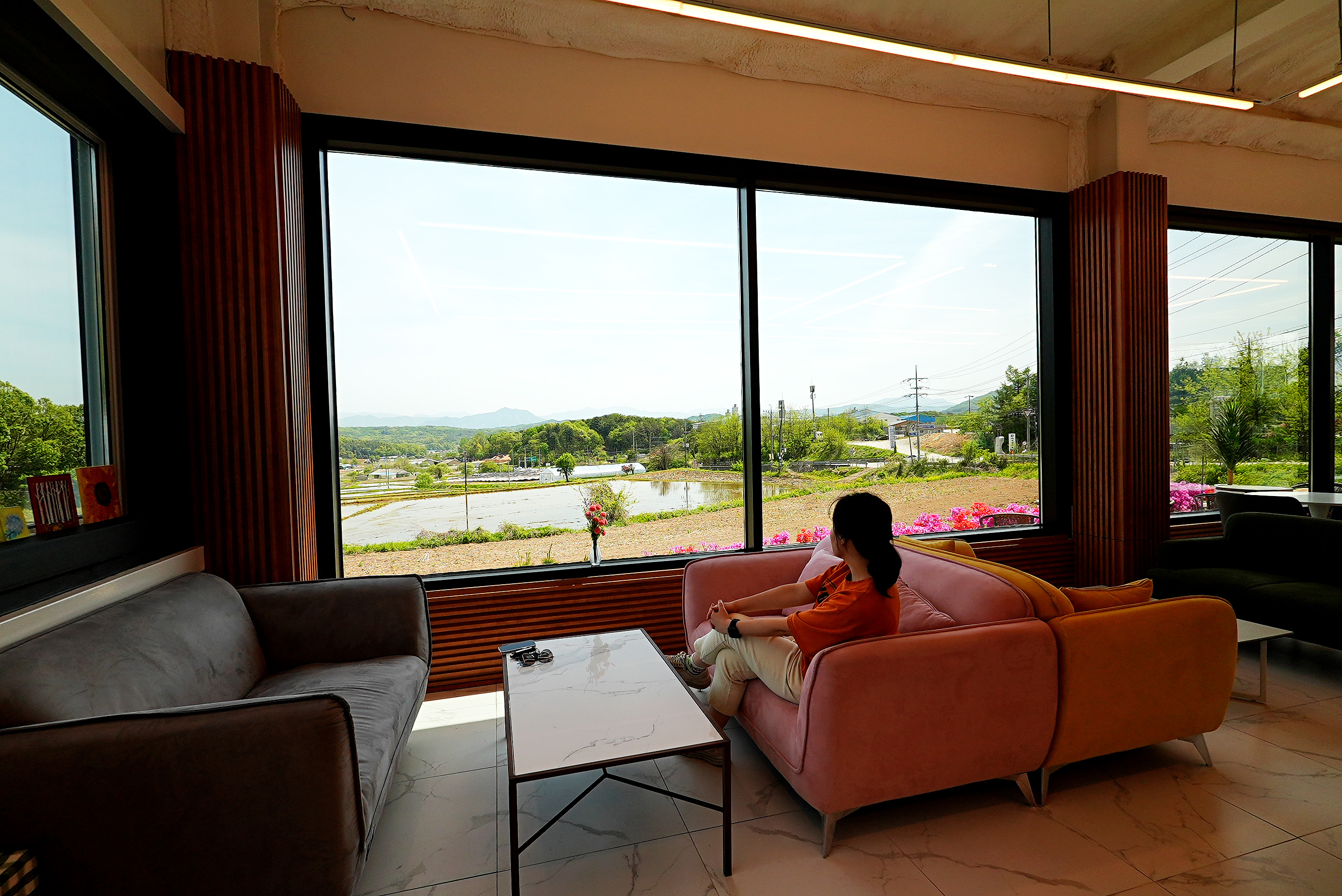 유명한 곳은 아니어서 그런지 사람들이 많이 찾진 않는 것 같은데, 논을 바라보는 뷰가 멋져서 시각적으로 힐링하기 좋았다.