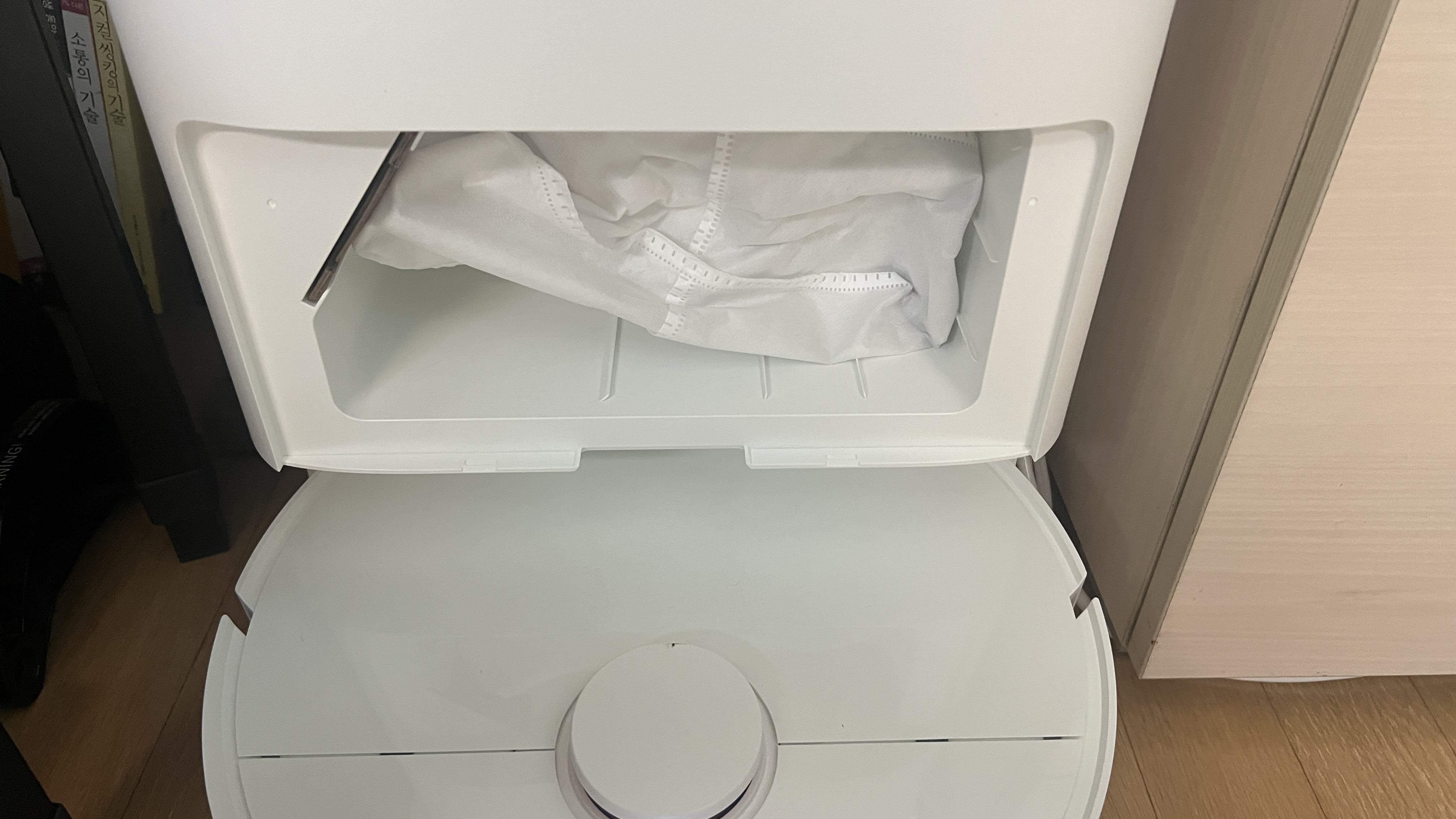 - 물통이 4L 라는데, 생각보다 물을 많이 잡아 먹는다. 느낌상 집 청소 3-4번 돌리면 채워줘야 할 것 같은 느낌. 설치시 직배수 키트로 연결하지 않는다면 충전스테이션은 물통 갈아 끼우기 편한 위치로 자리를 잡는게 좋아 보인다. (가령 책상 밑에 두면 불편함)