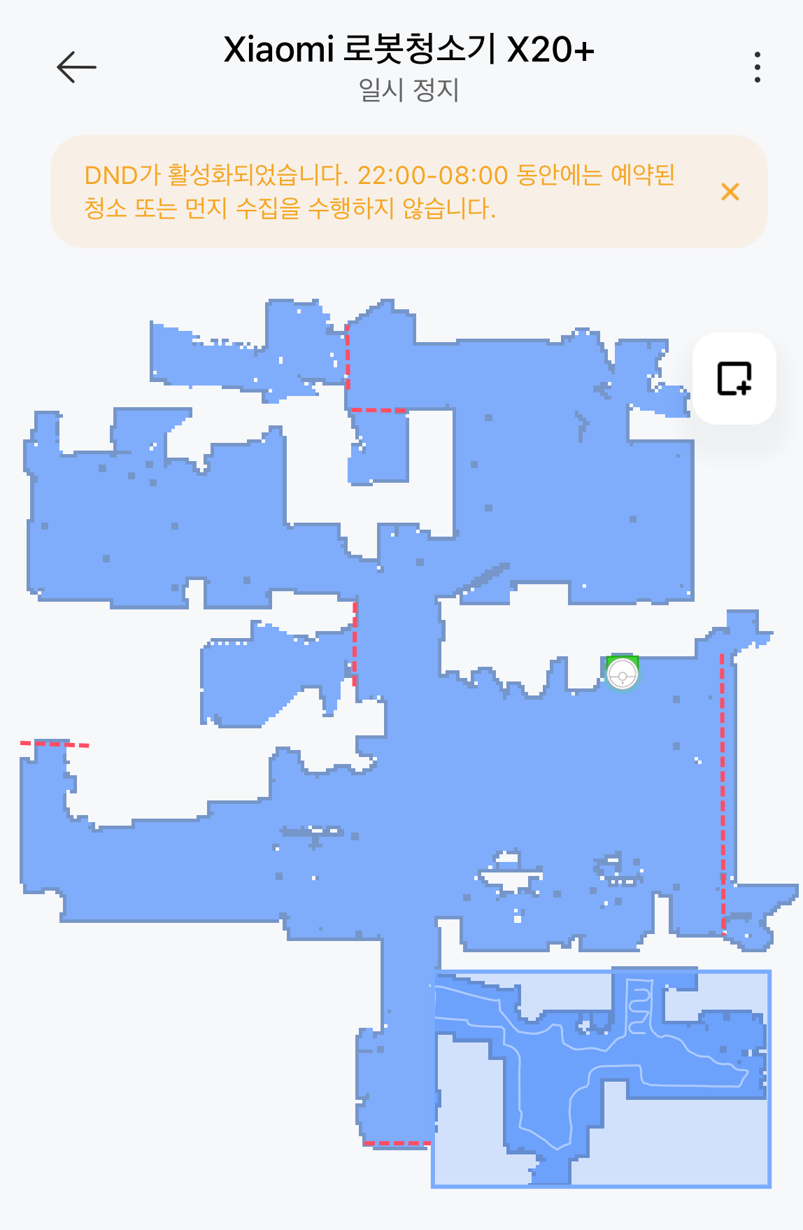 그리고 과거에 청소기 진입 하면 안되는 구역에는 마그네틱 테이프를 바닥에 붙여 두어야 했는데, X20+ 모델의 경우 앱 상에서 빨간 선으로 벽을 설정할수 이께 되어 편리하다. 은근히 마그네틱 테이프가 마루바닥에 자국을 남기거나 심지어 마그네틱 테잎을 뜯어내면 마루바닥 상판을 같이 뜯어 내는 경우도 있었던 터라, 너무 반가운 기능이다.