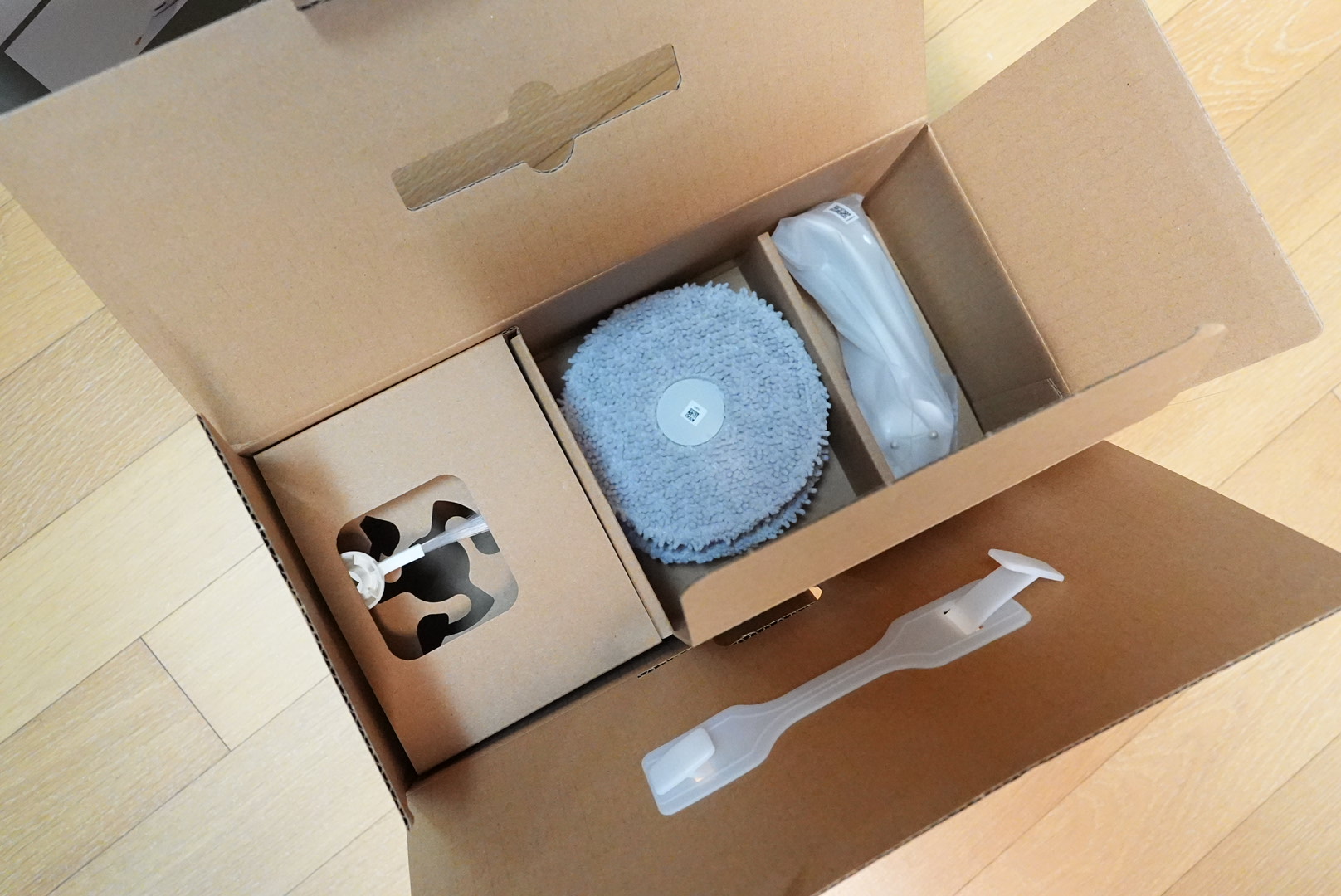 박스개봉하니 물걸레와 전기콘센트, 사이드 브러시가 있다. 여분의 부품인줄 알았으나, 장착해서 써야 하는 것
